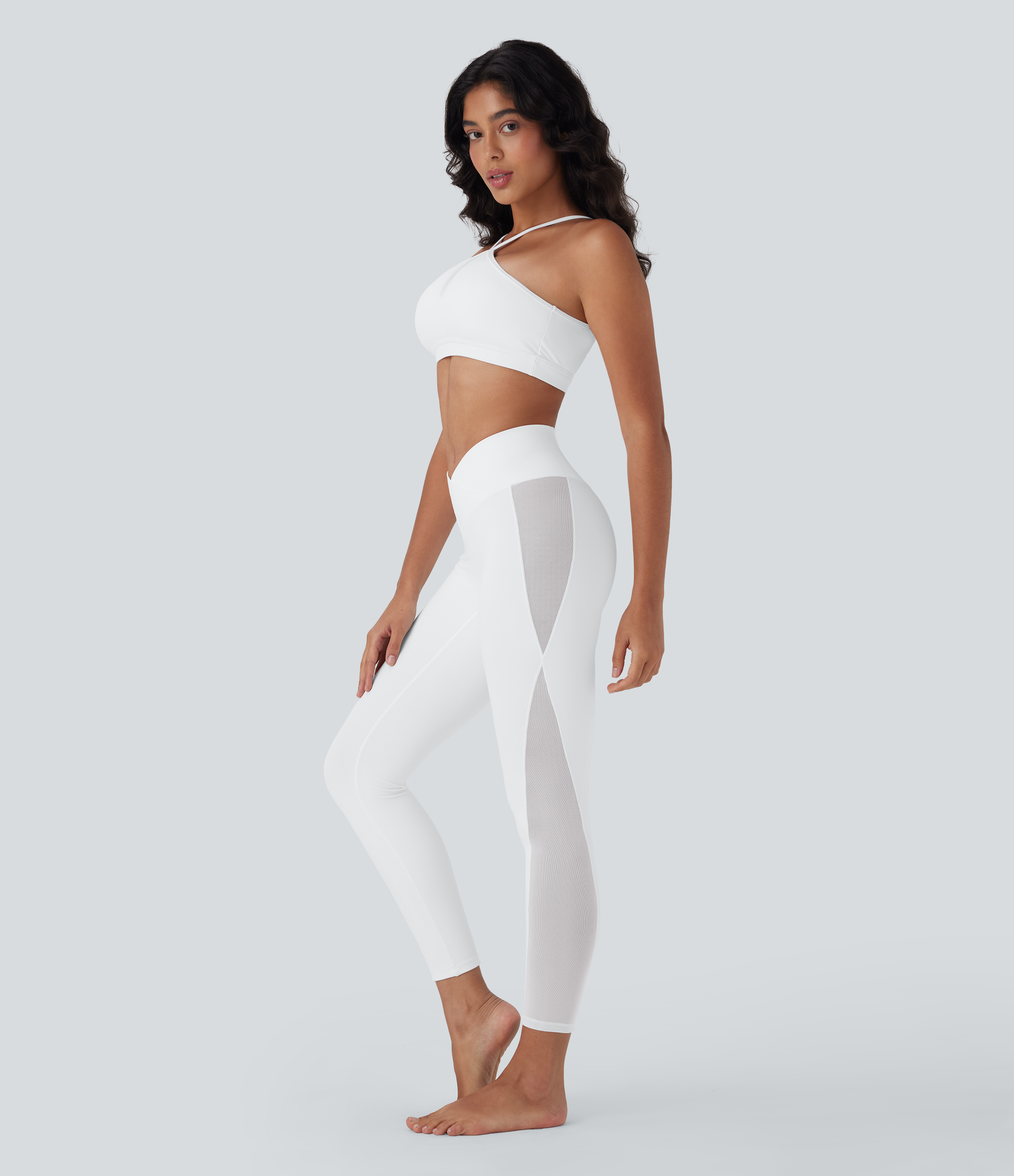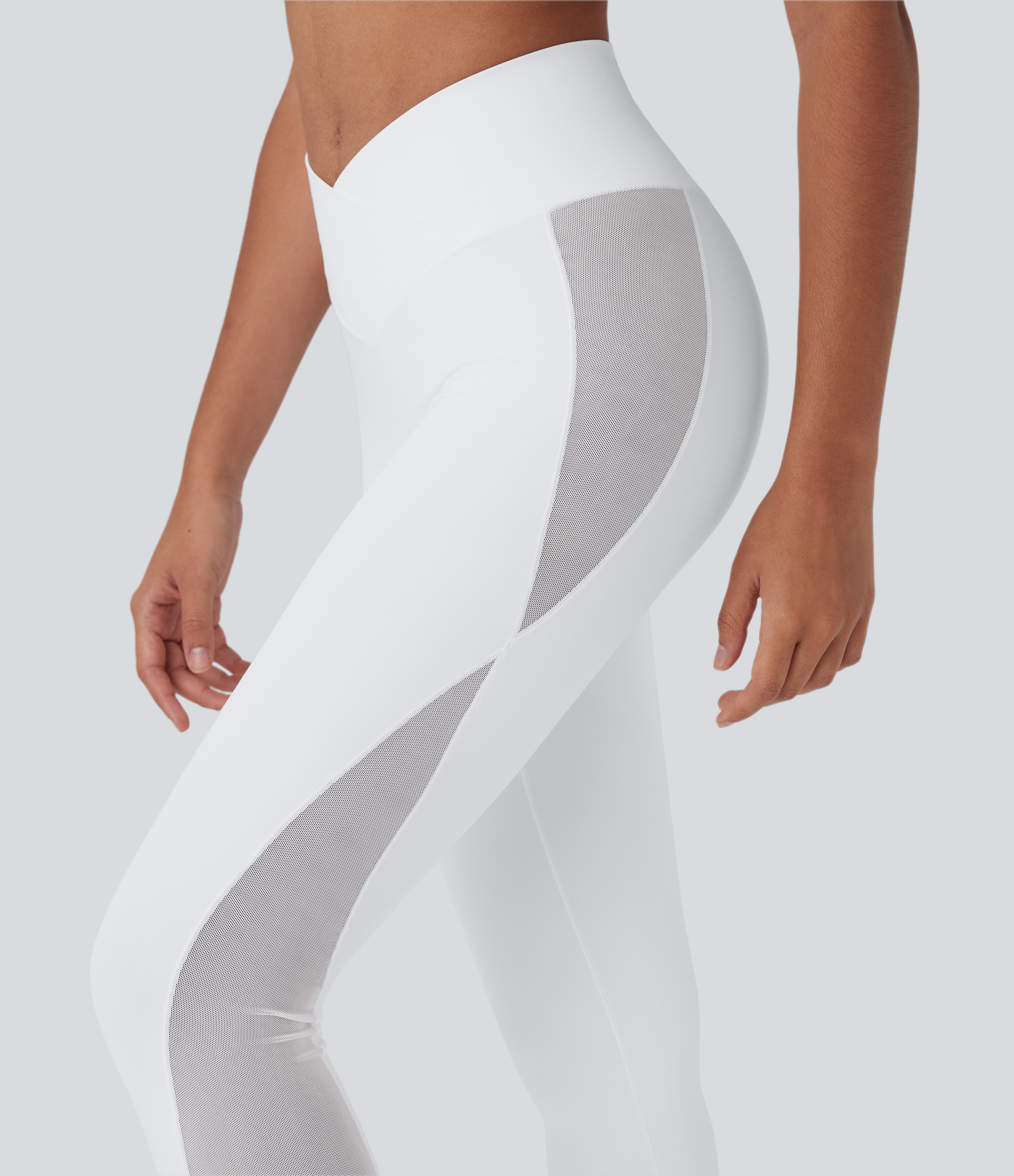 • SoftlyZeroTM Crossover High Waisted Contrast Mesh Yoga Leggings with Pocket-UPF50+