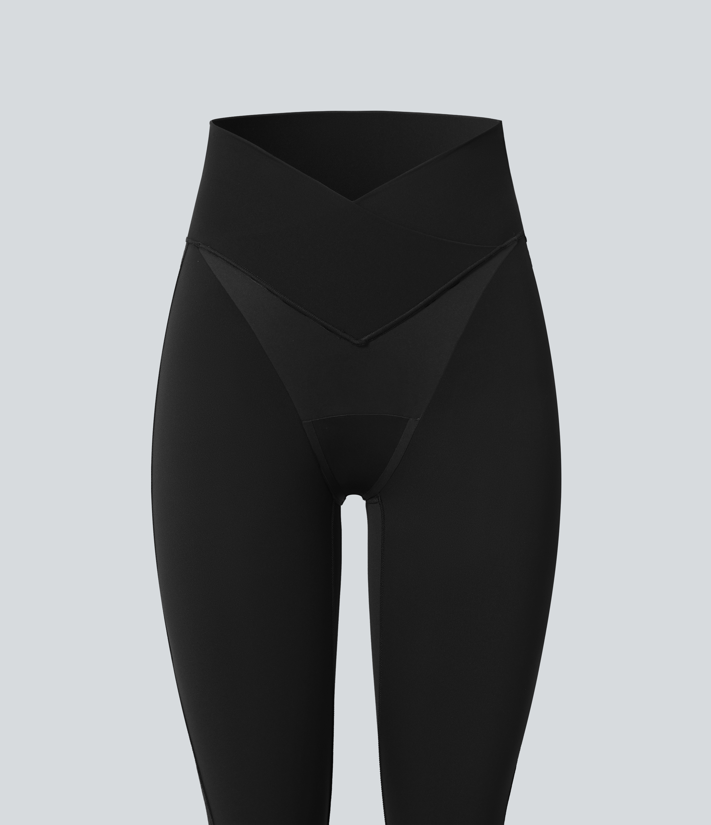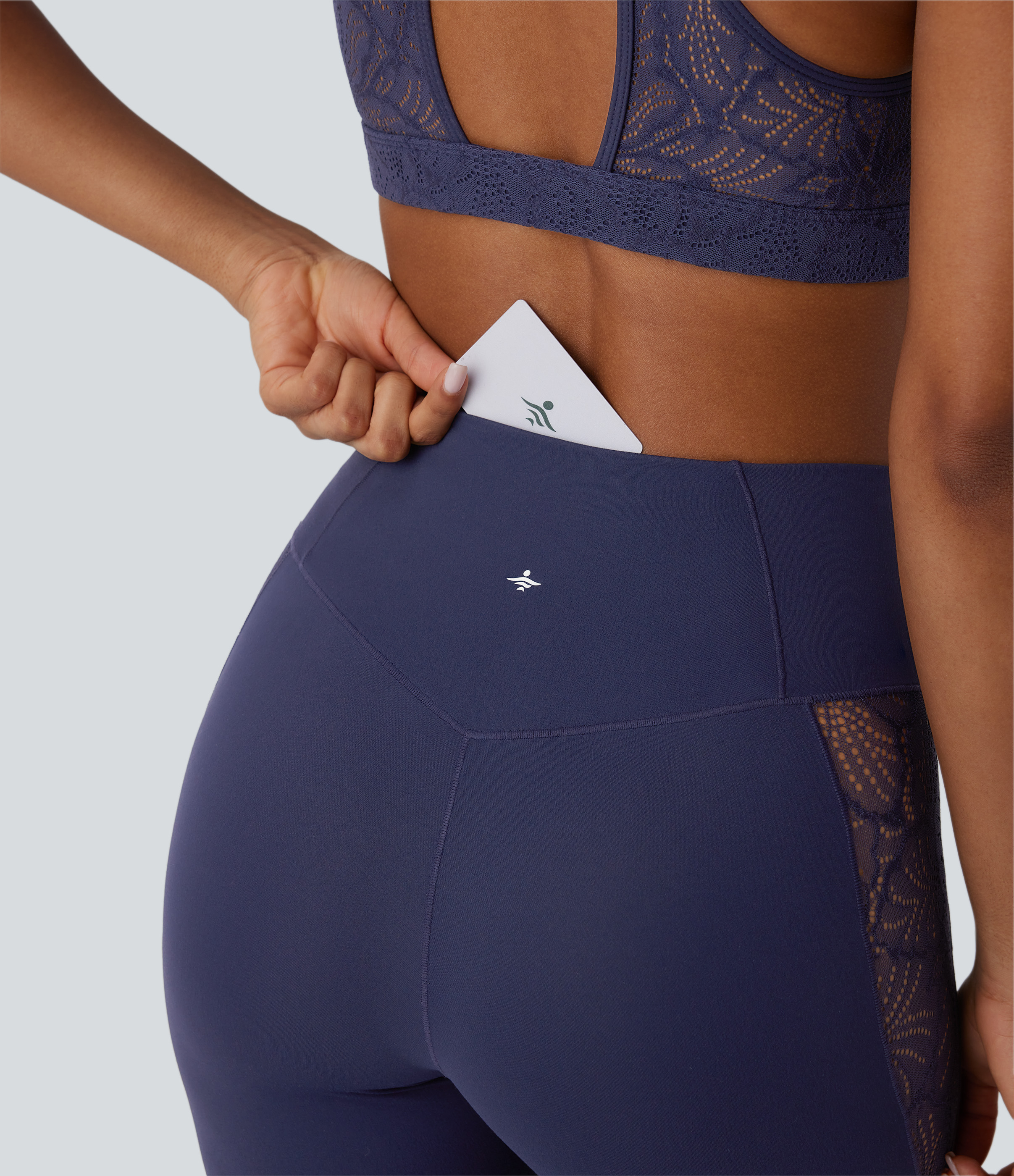 • SoftlyZeroTM High Waisted Crossover Contrast Lace Built-in Underwear Yoga Leggings with Pocket-UPF50+