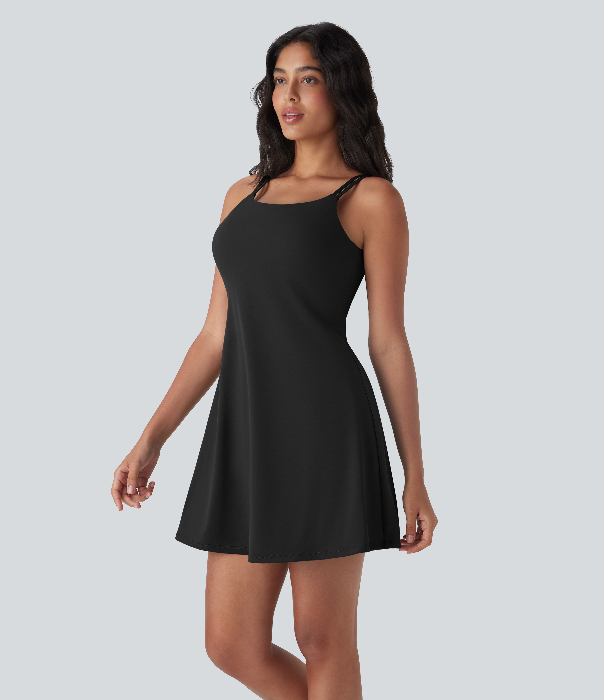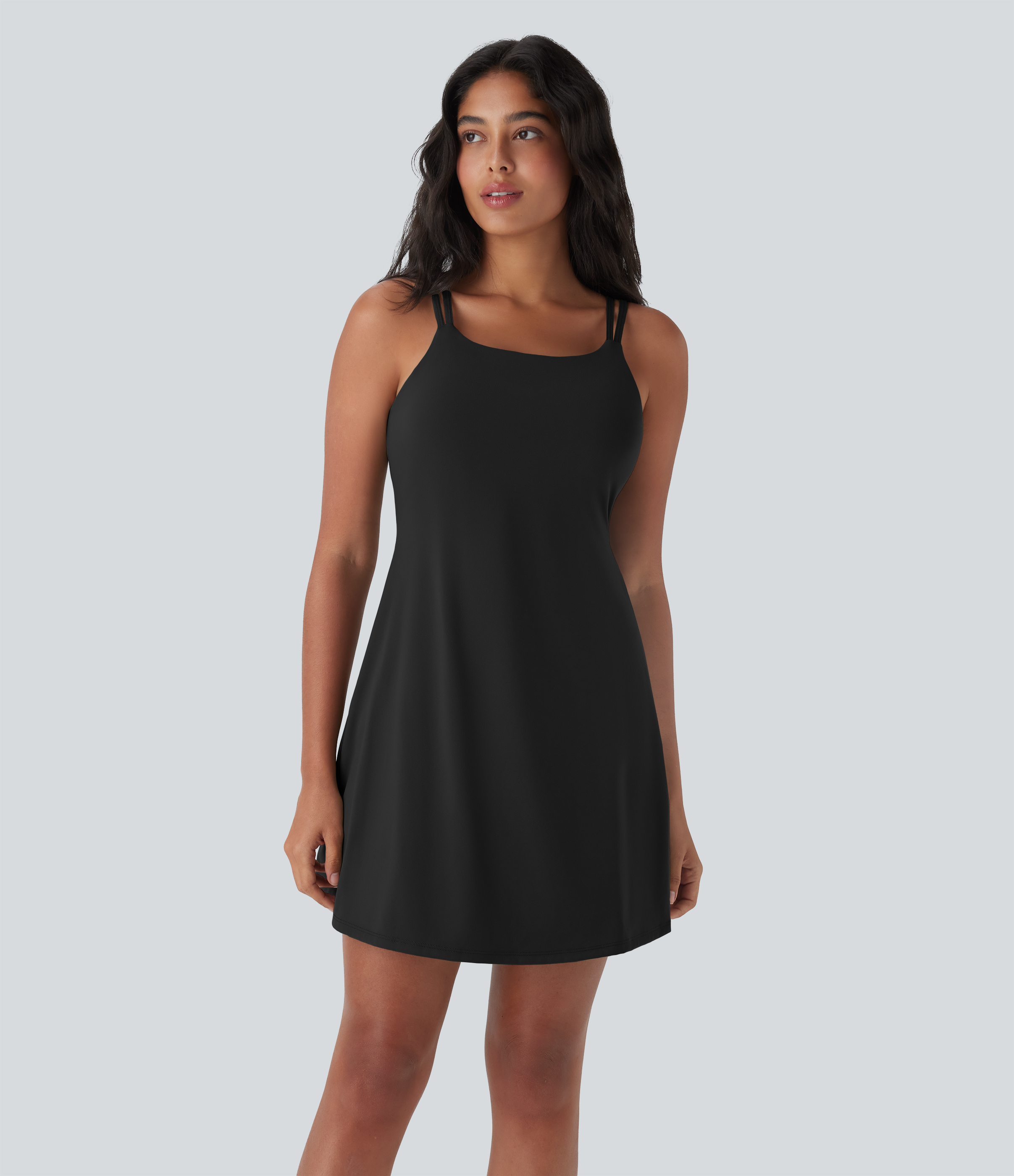 • SoftlyZeroTM Plush Double Straps 2-Piece Pockets Slip Dance Active Dress D/DD/DDD/F Cups