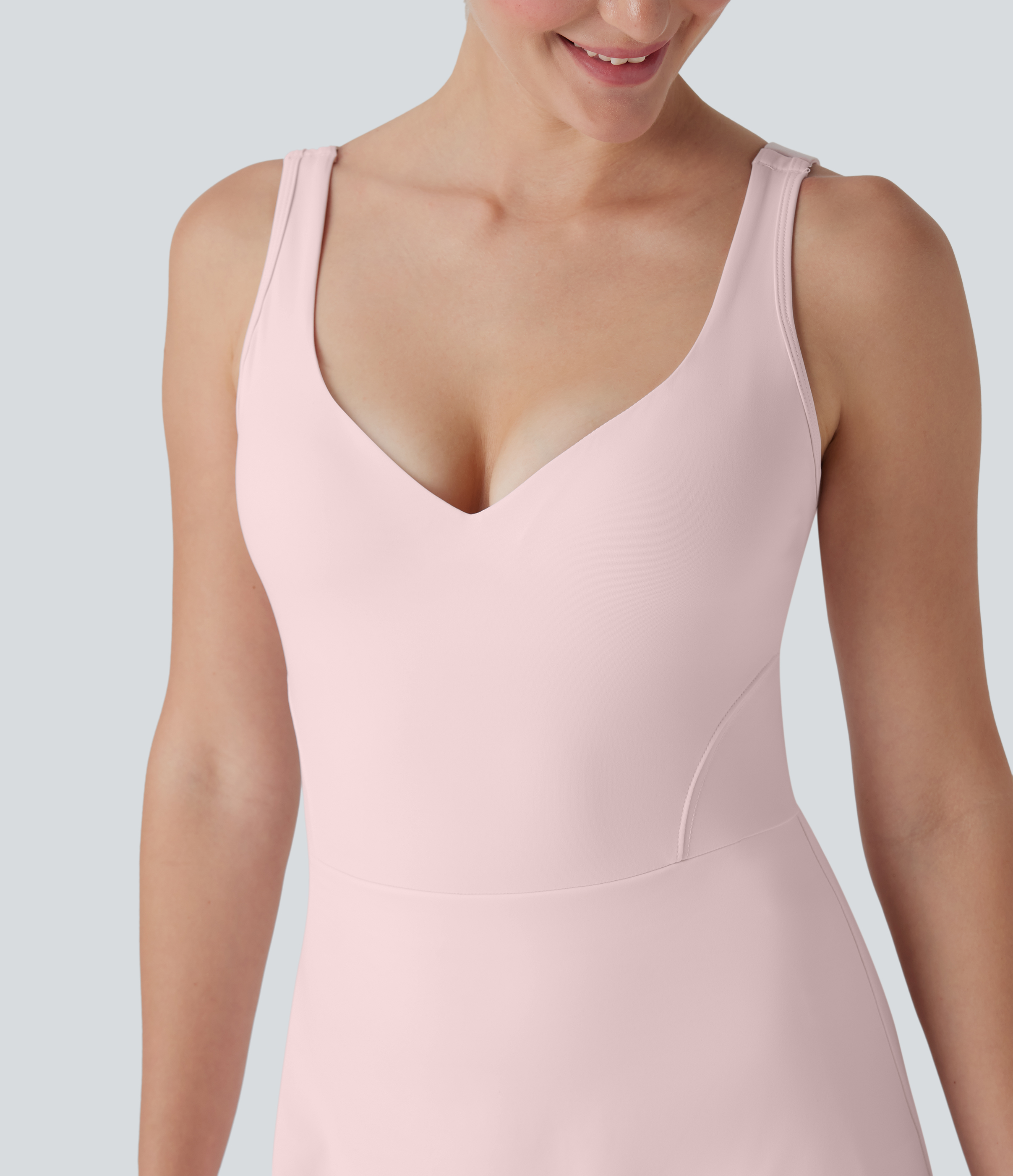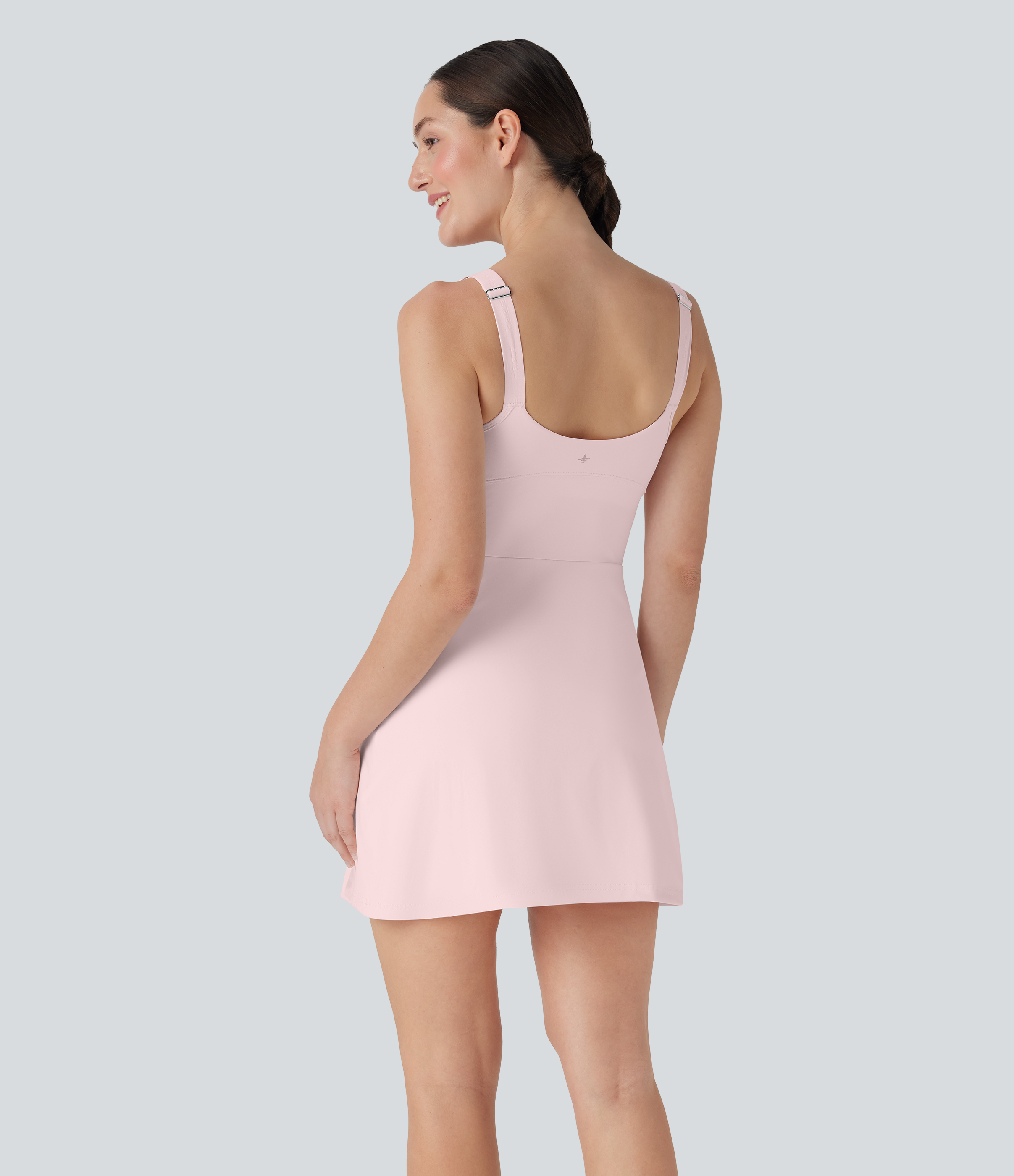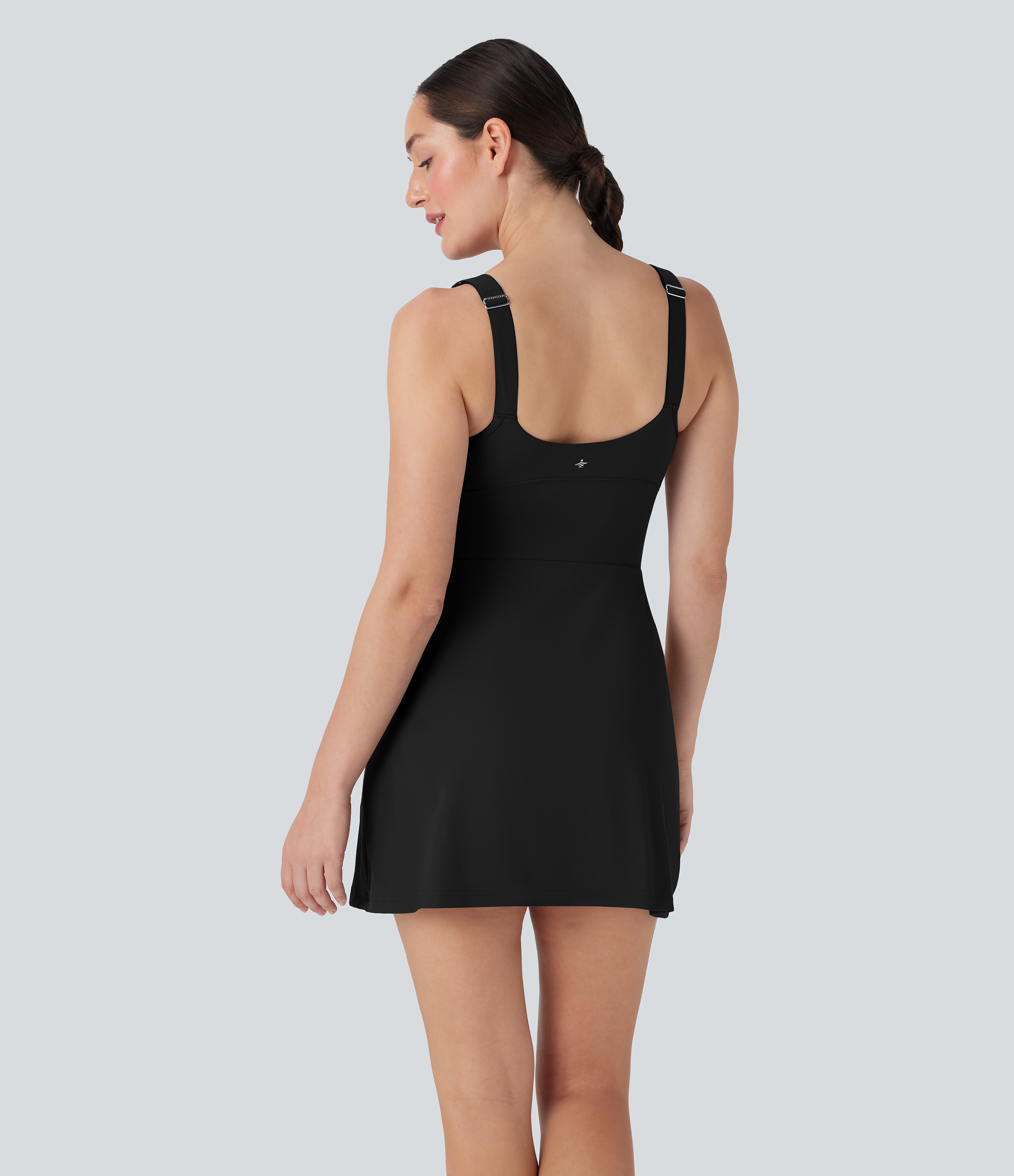 • SoftlyZeroTM Plush Push-Up Molded Cups 2-in-1 Yoga Active Dress with Pockets-Easy Peezy