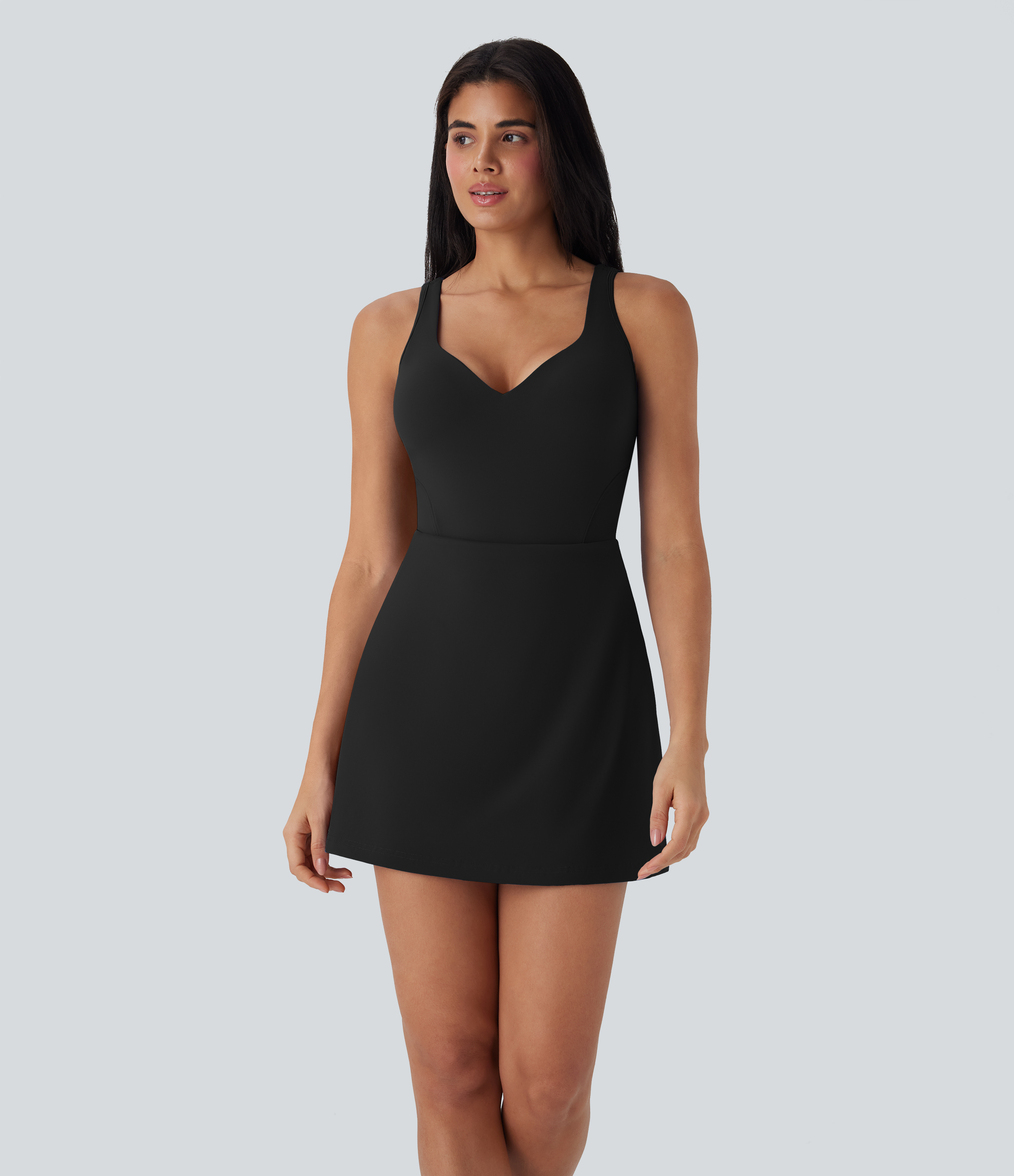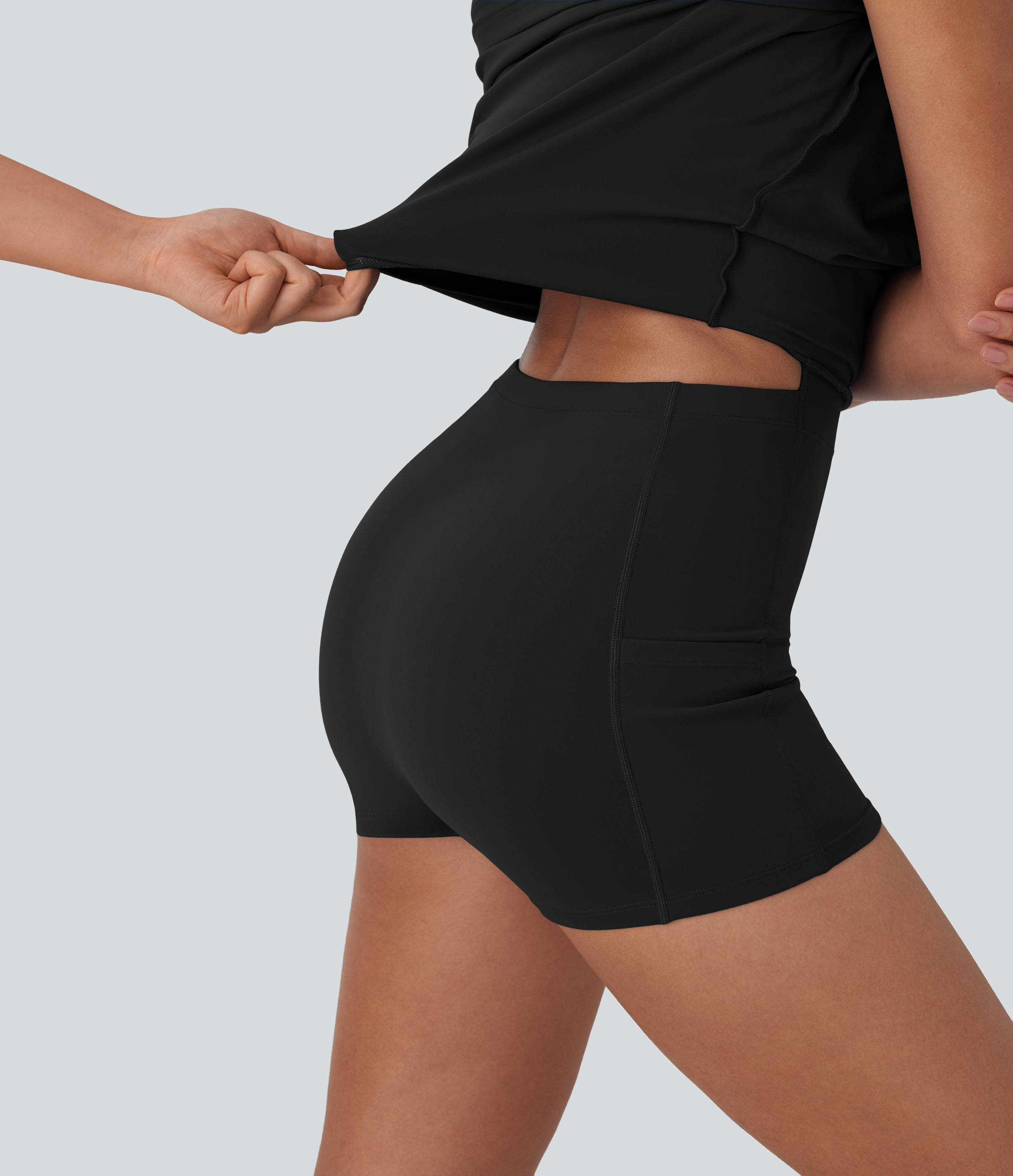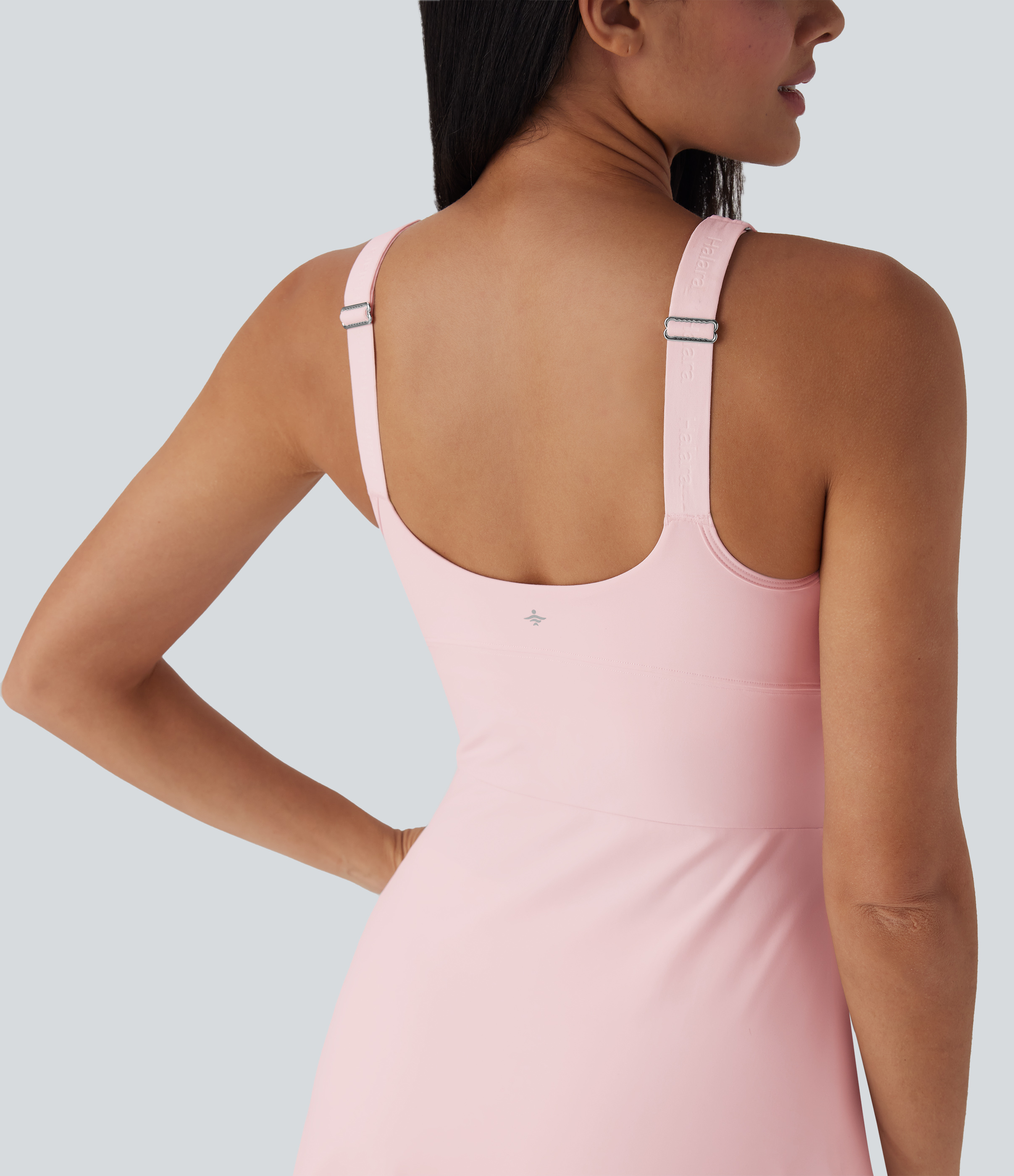- Built-in shorts with open back waistband for easy peezy bathroom breaks.