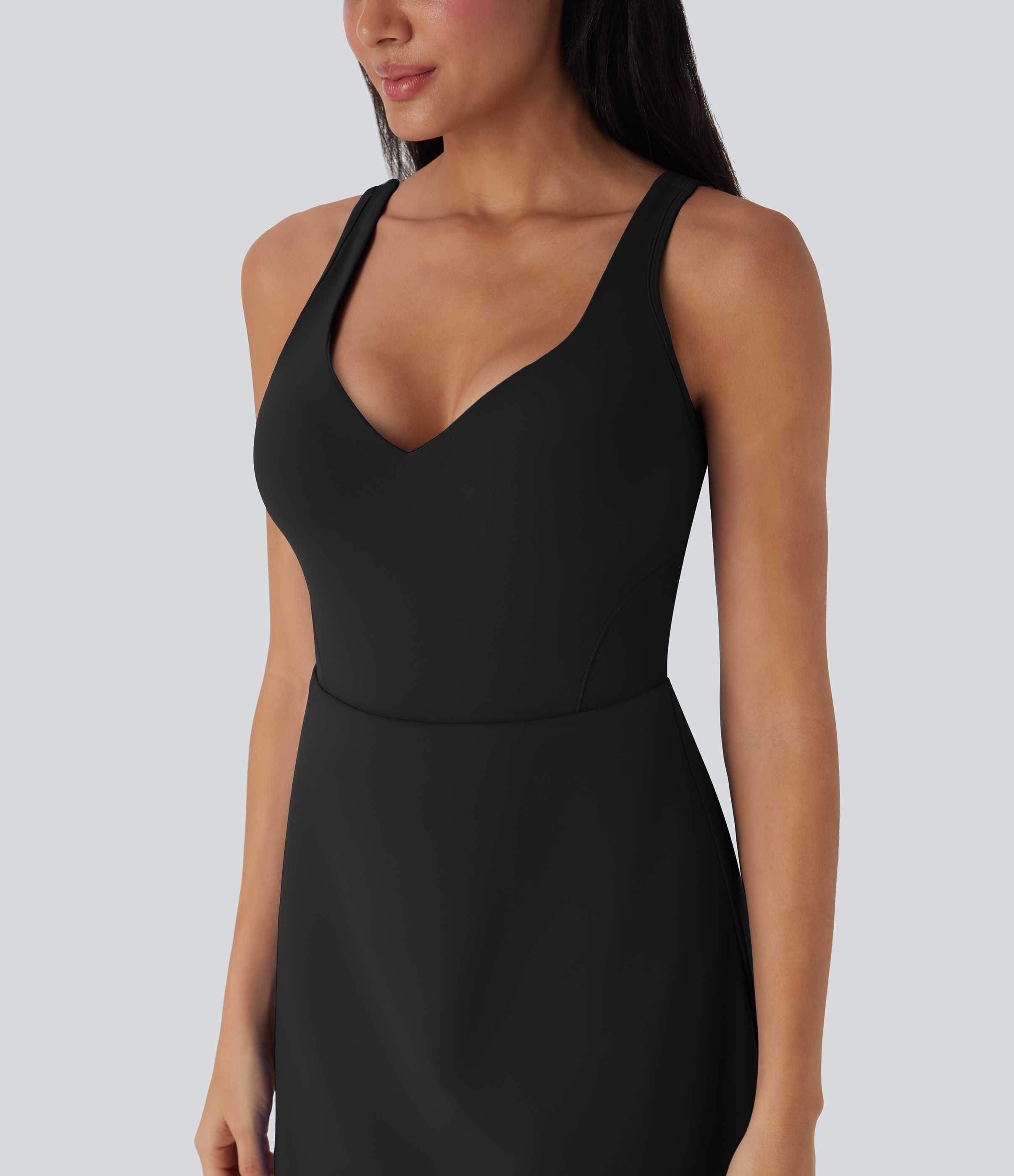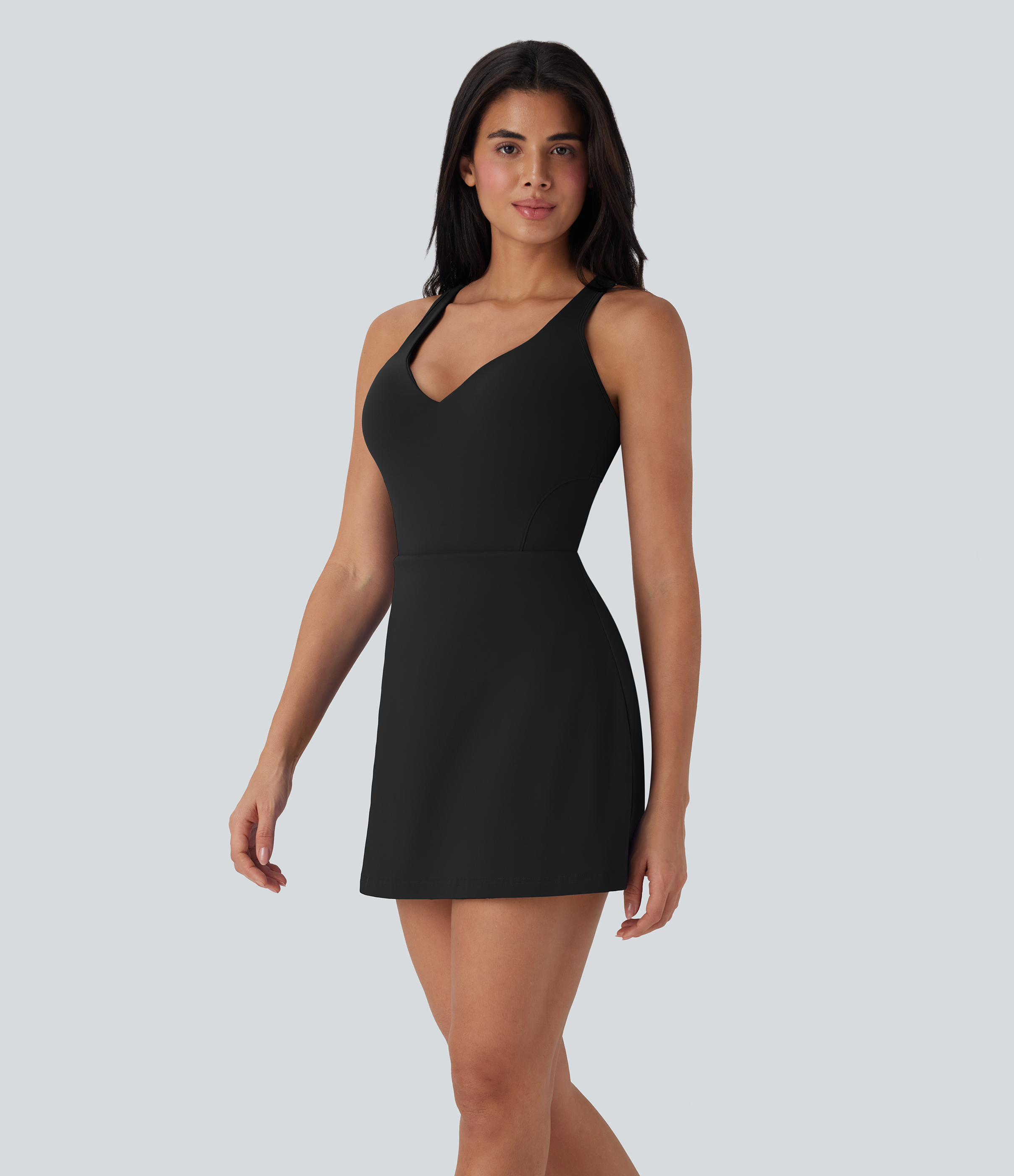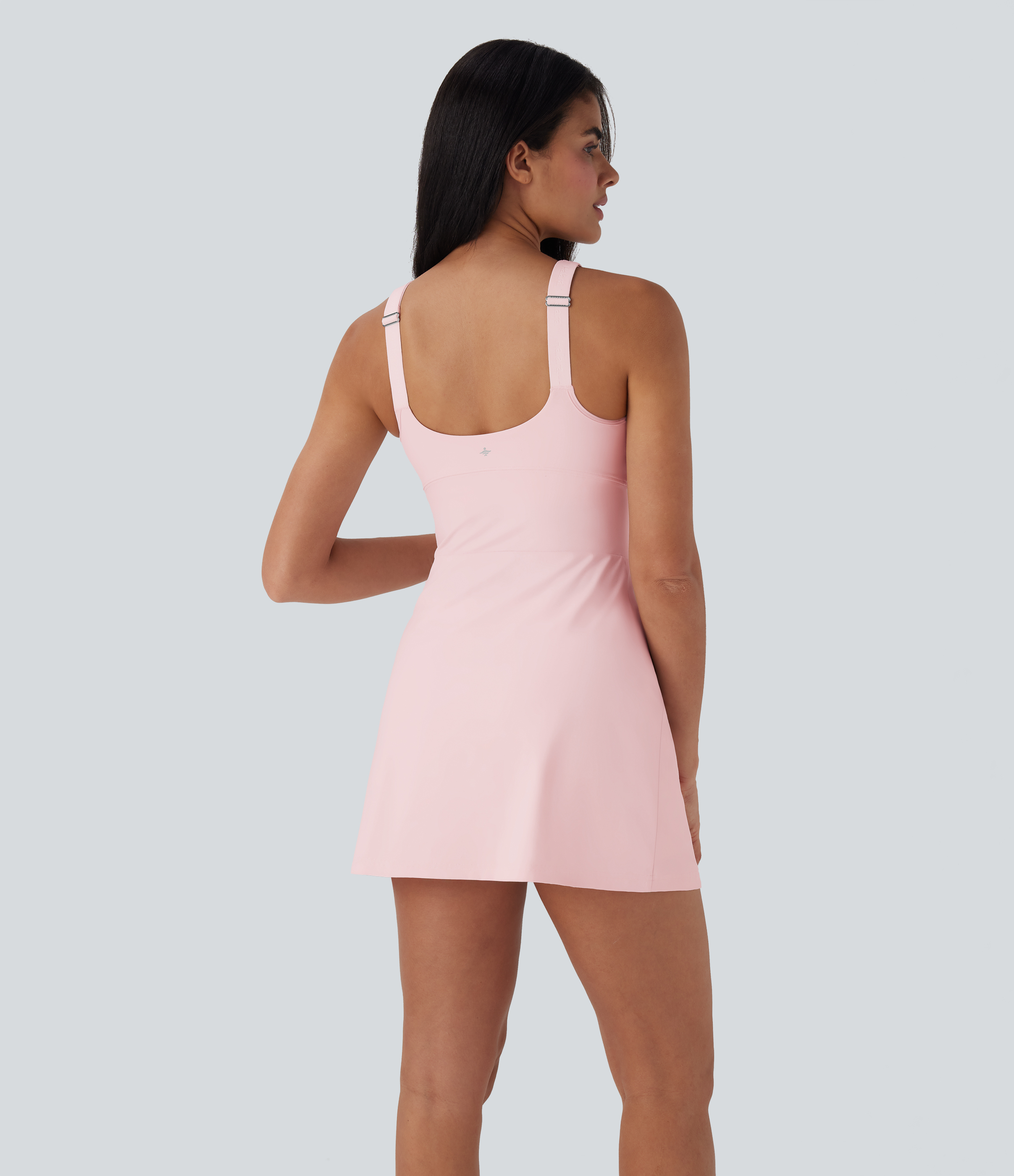 - Built-in shorts with open back waistband for easy peezy bathroom breaks.