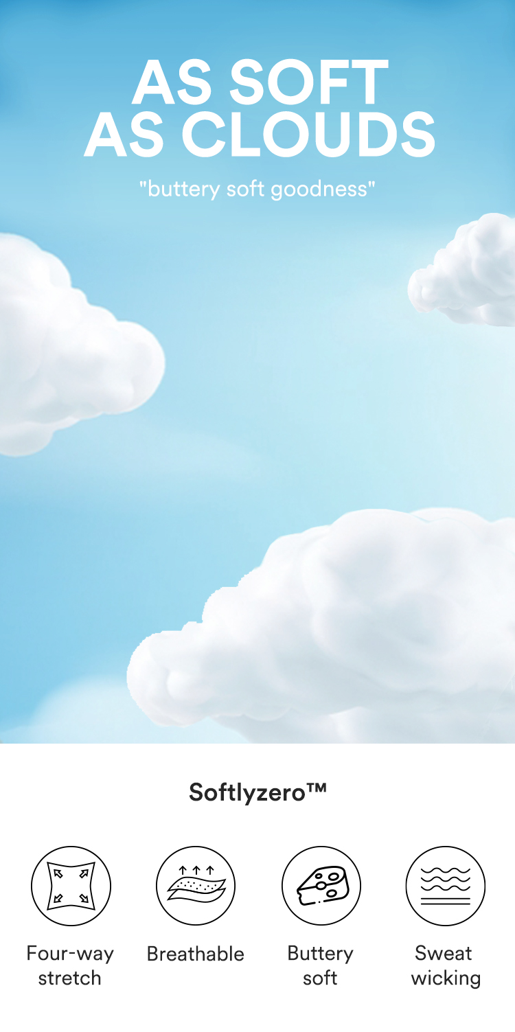 - Softlyzero™ Plush. It feels buttery soft like a cloud. Ideal for your daily activities, e.g. lounging, running errands, and yoga & studio.