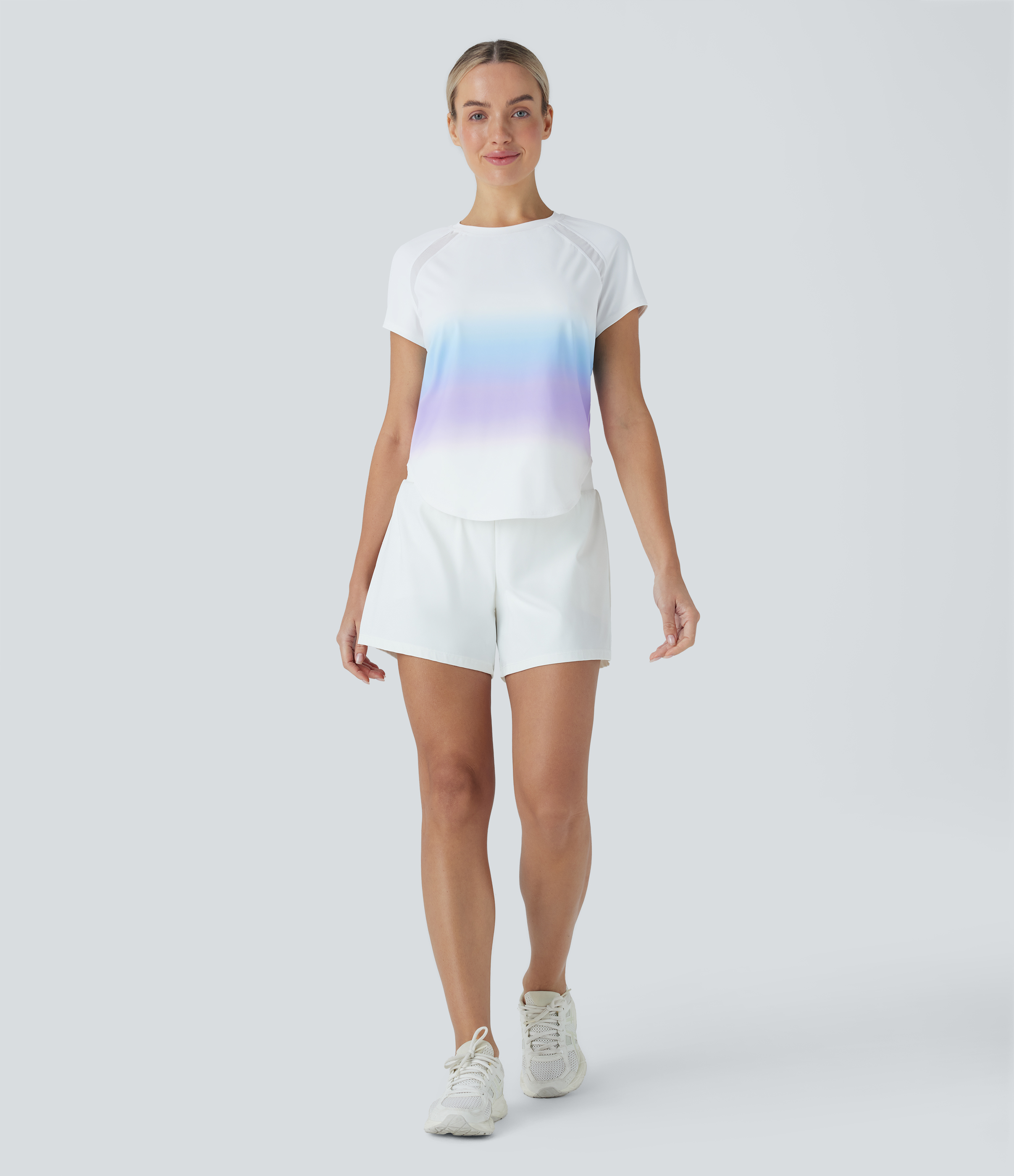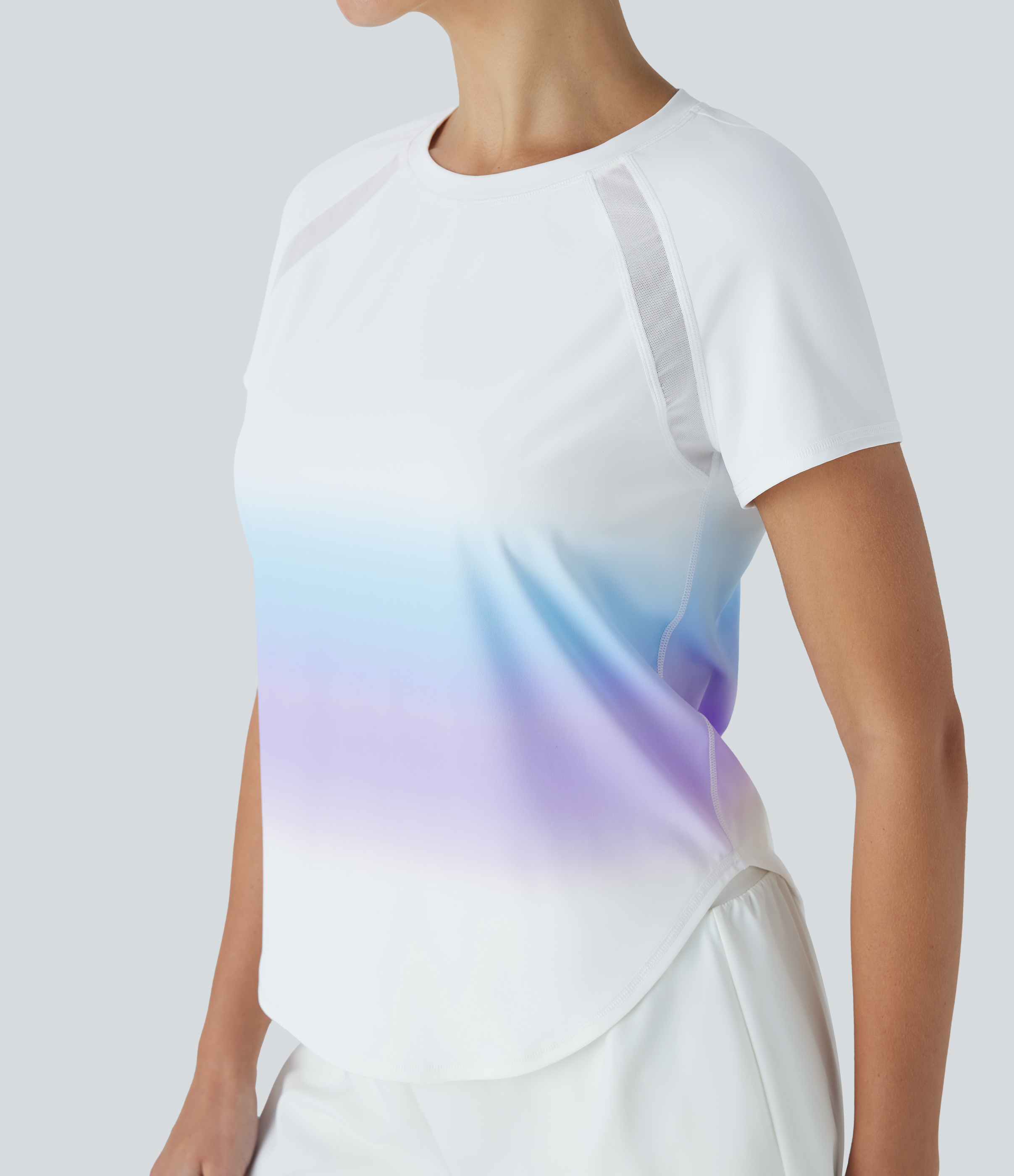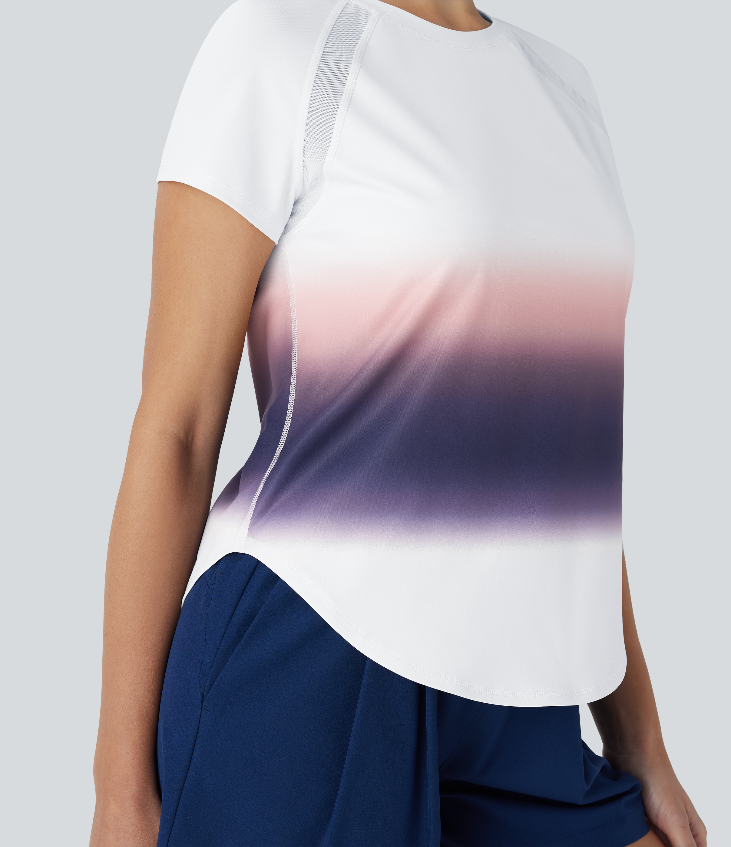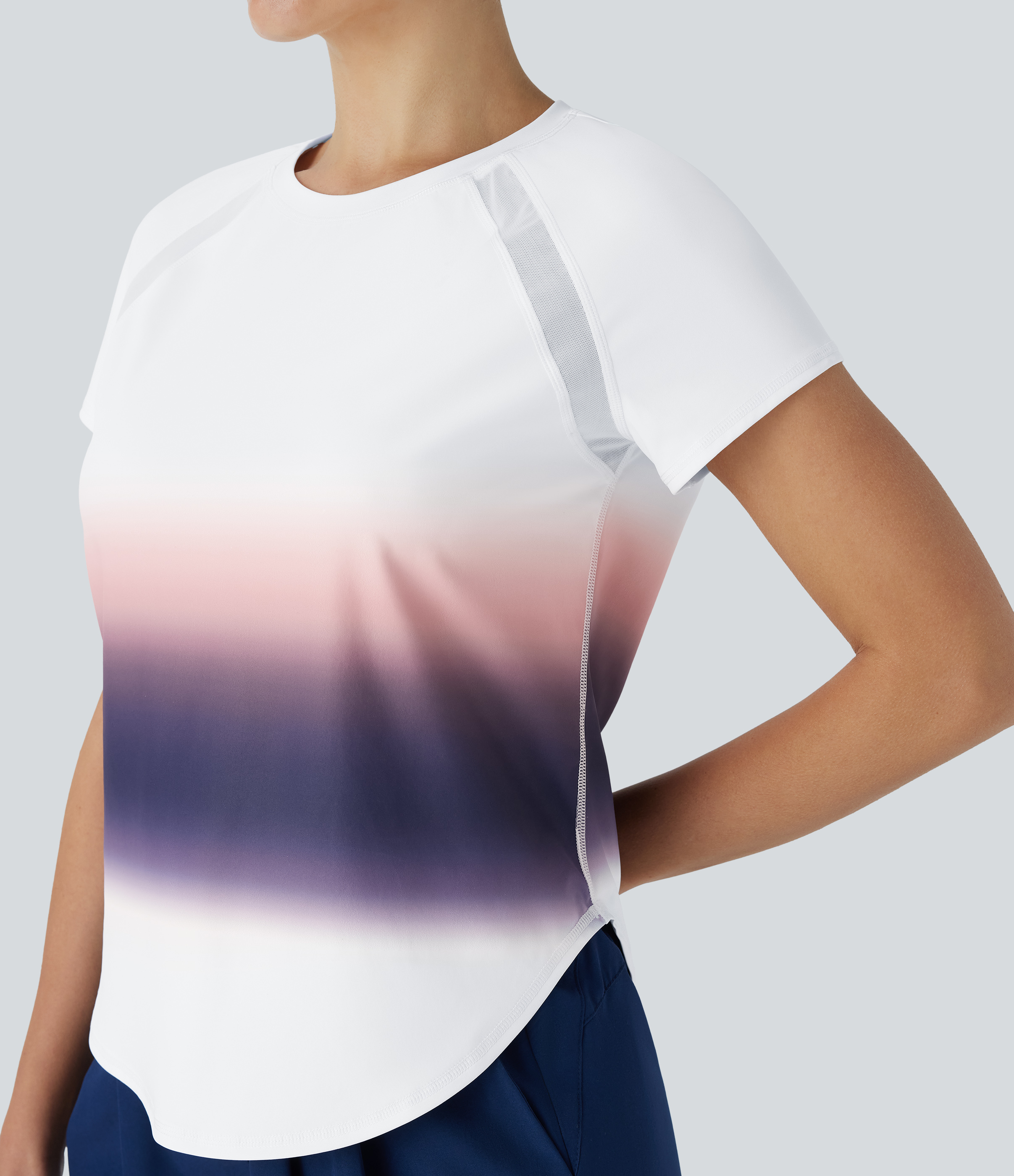 - The contrast mesh design creates a breezy feel.