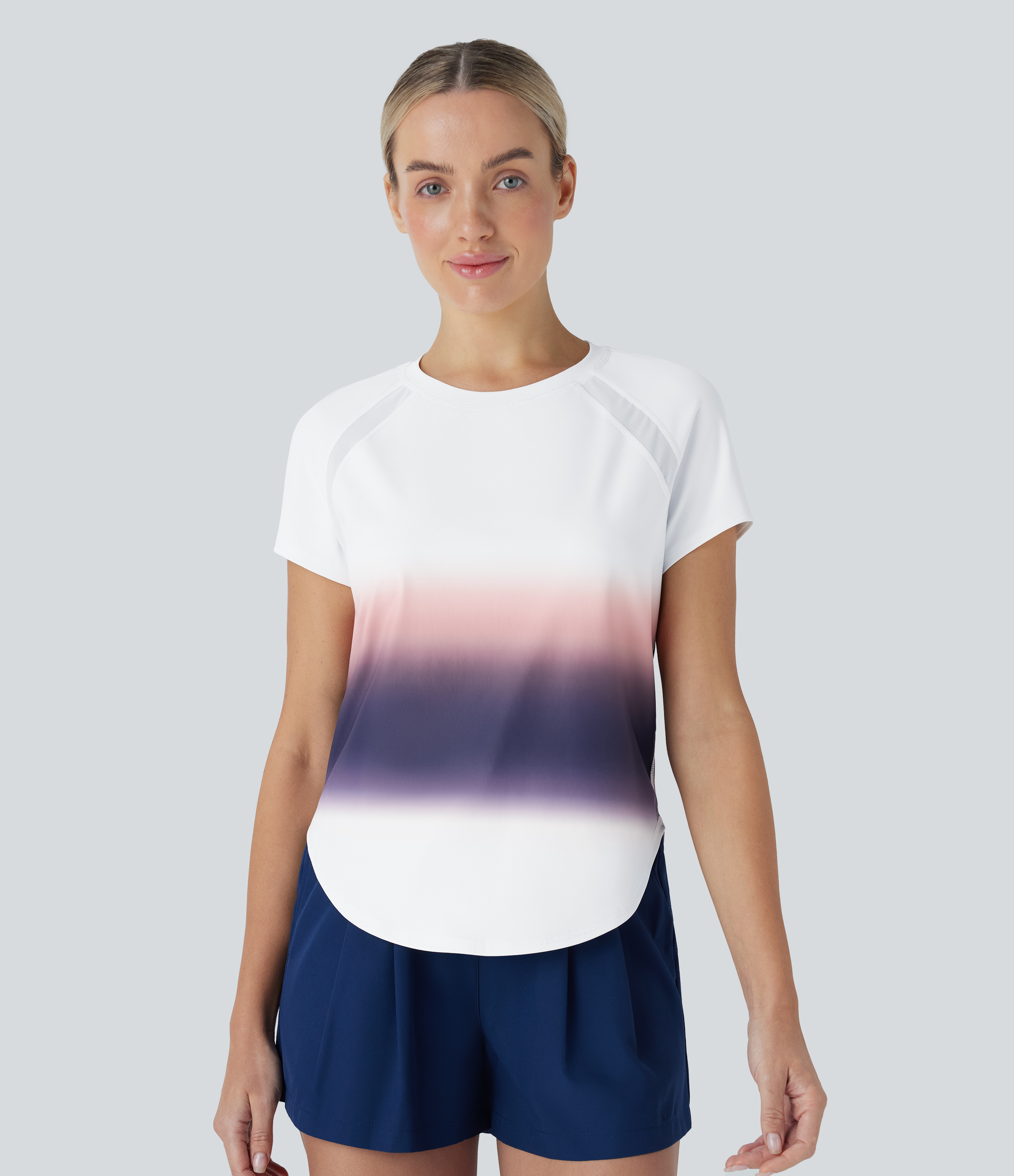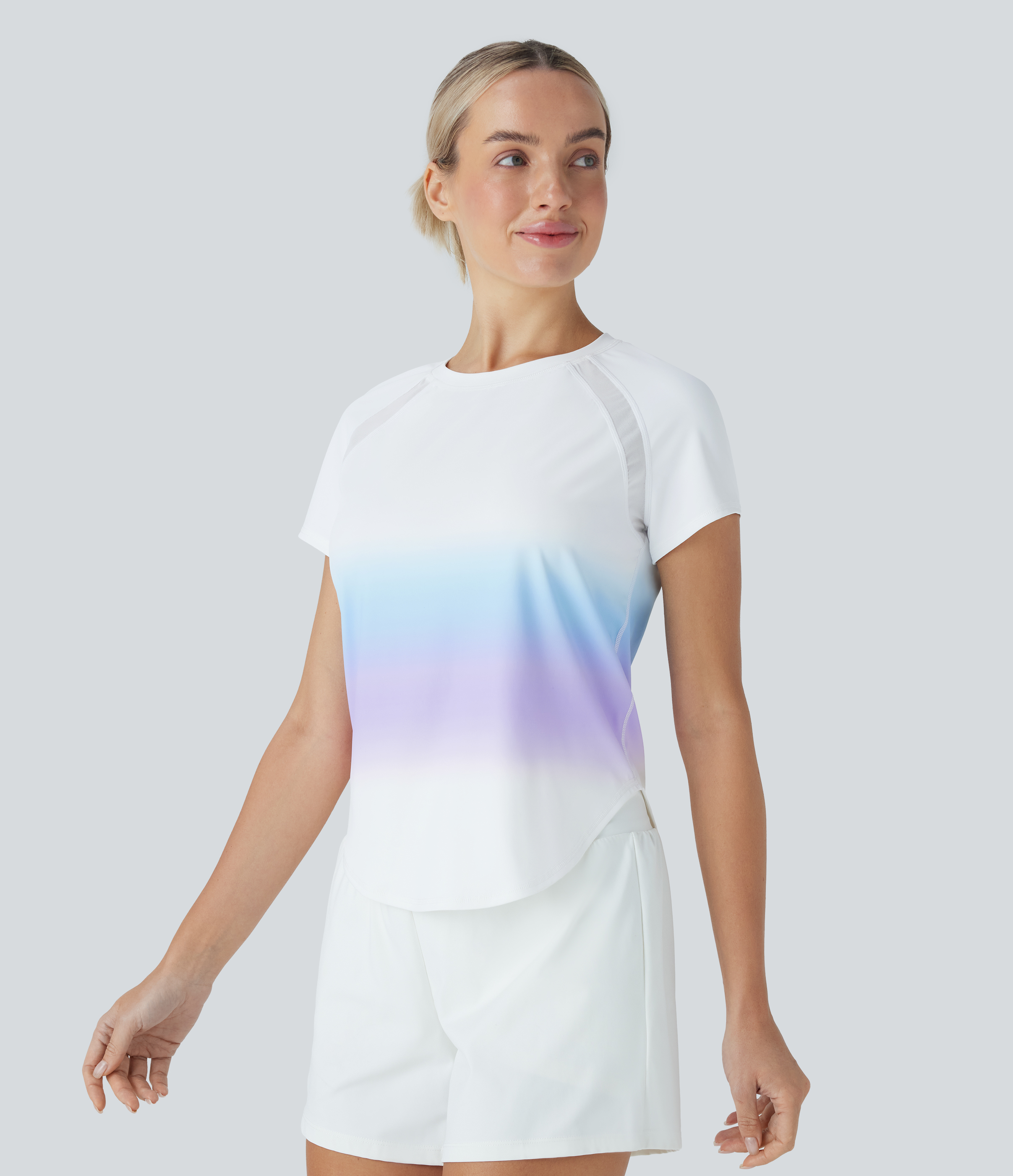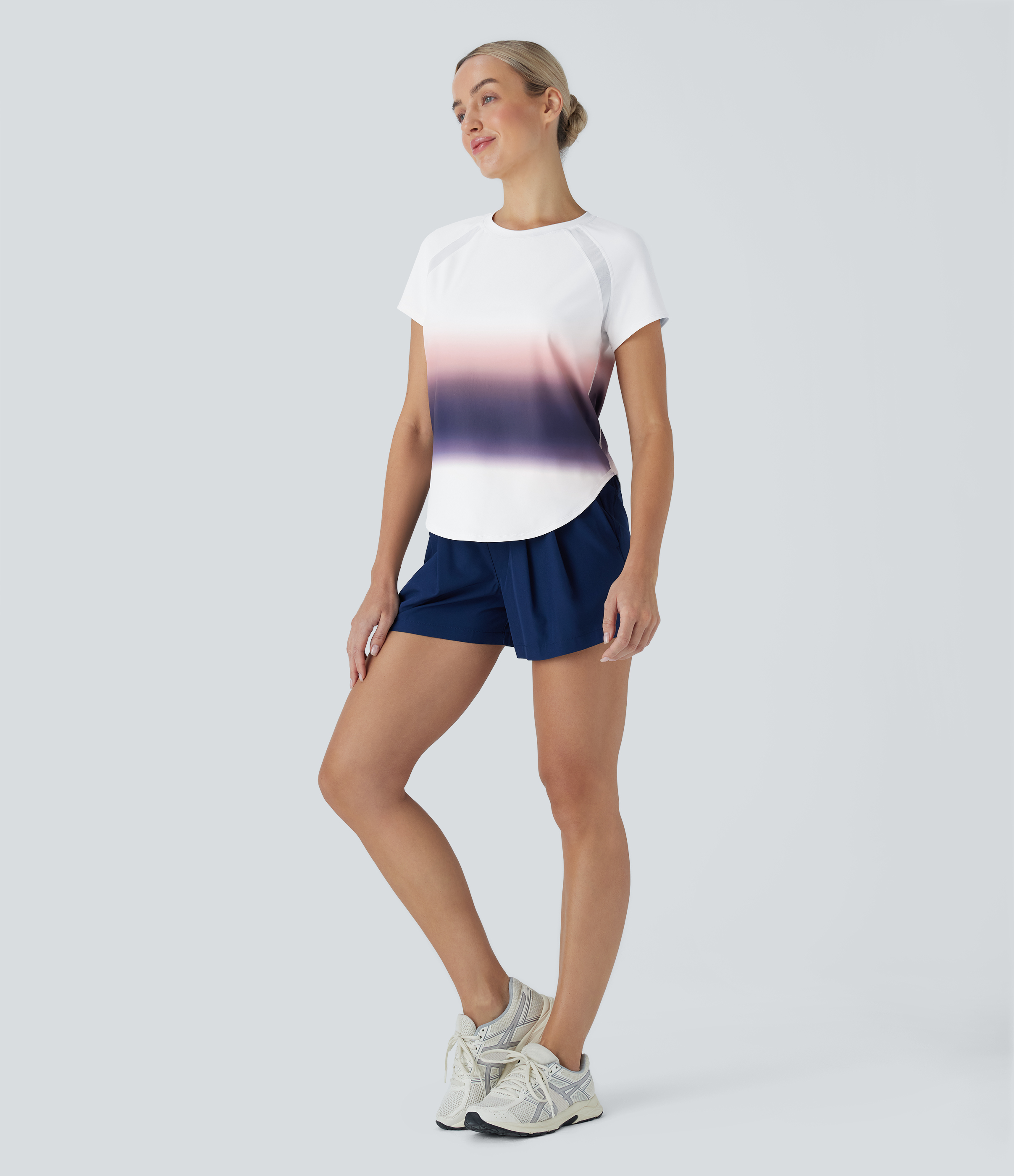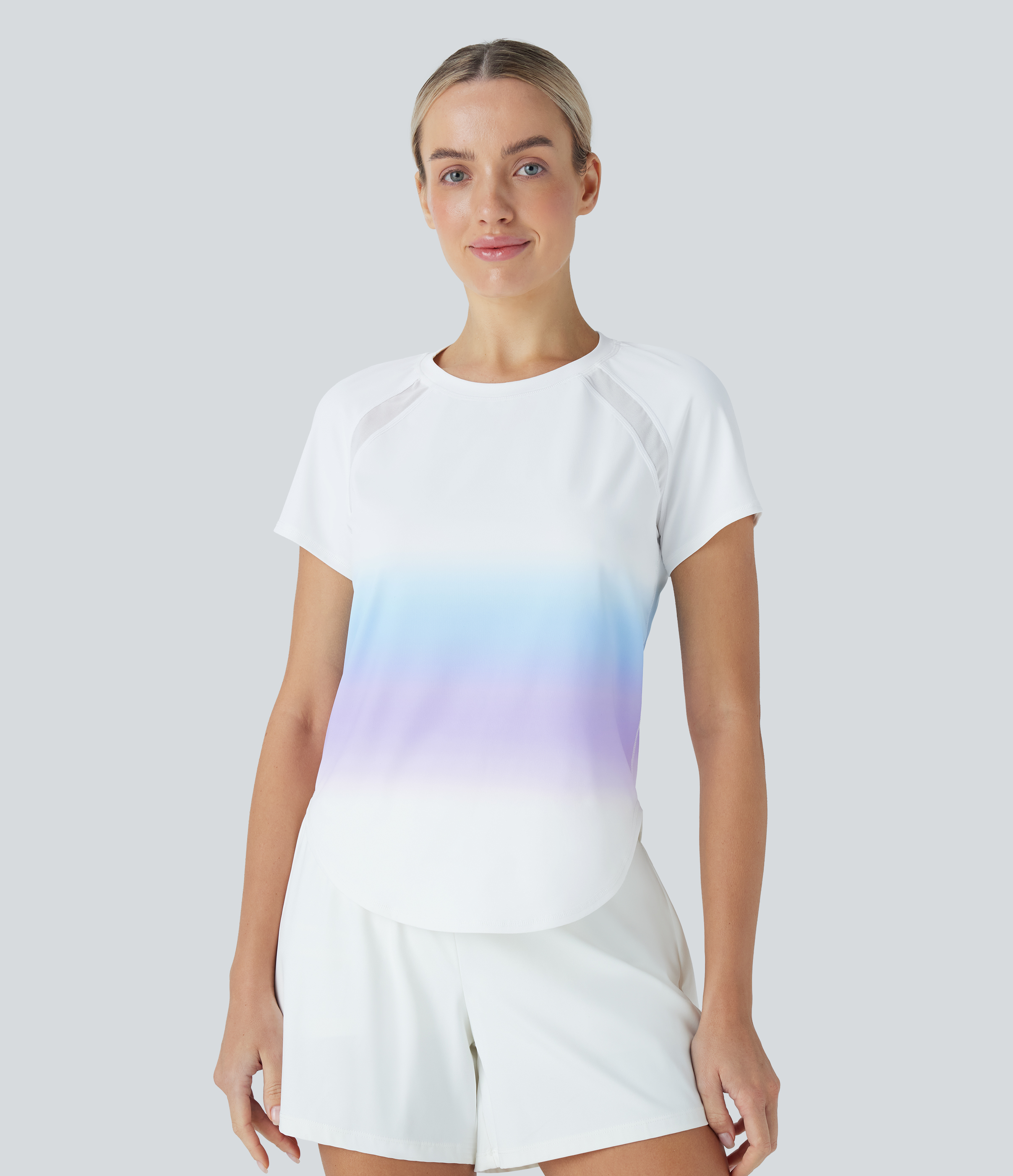 - The contrast mesh design creates a breezy feel.