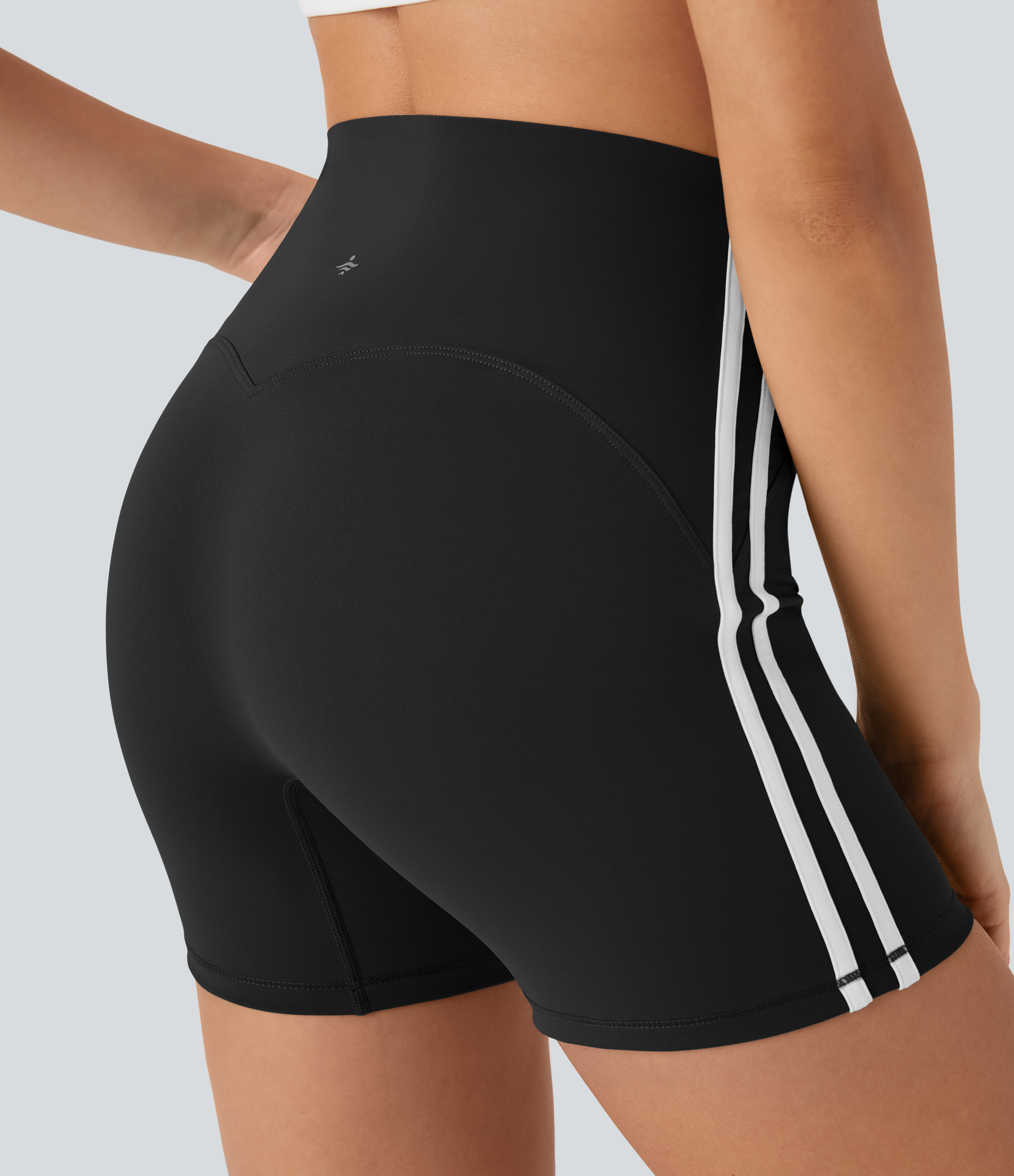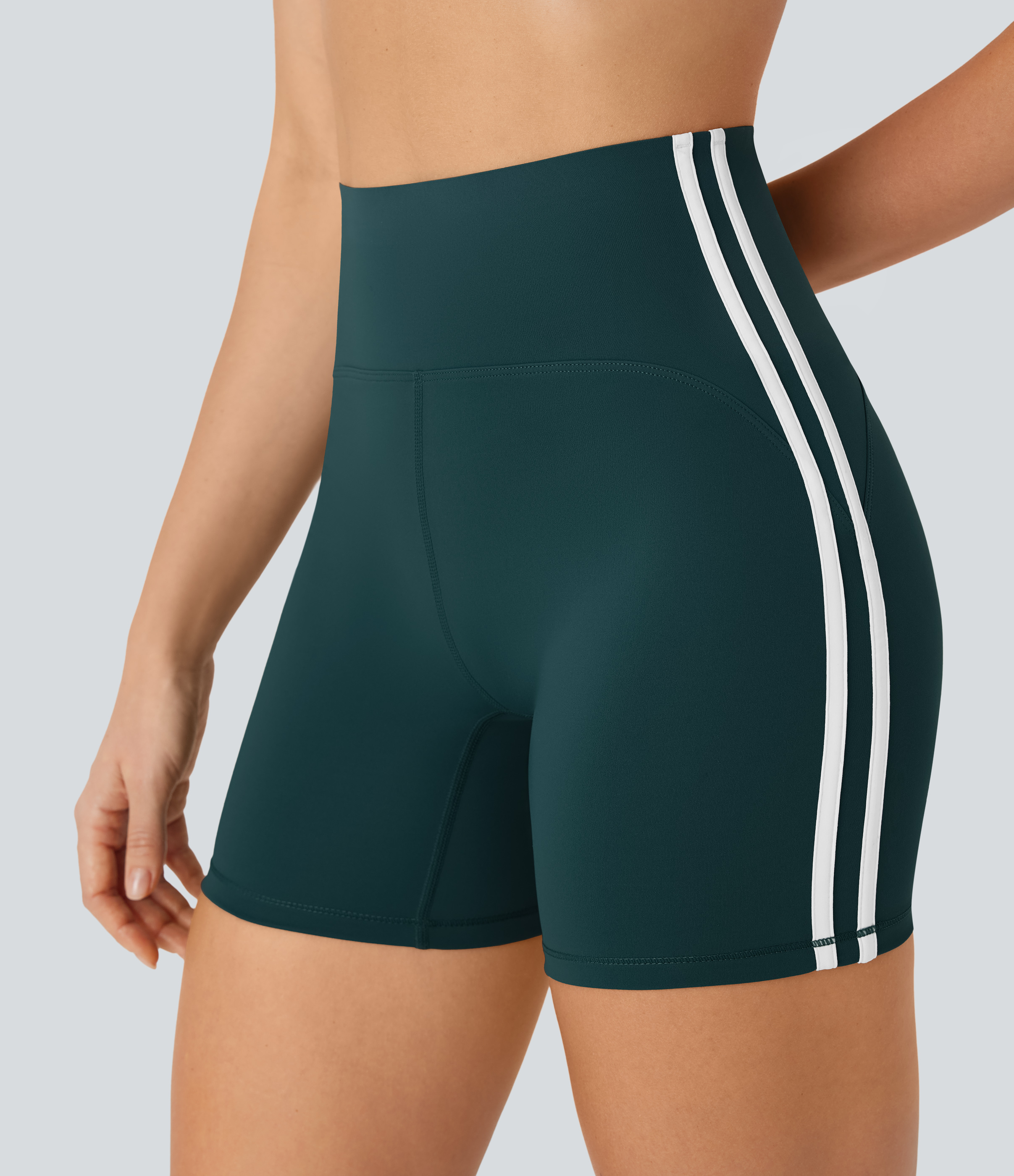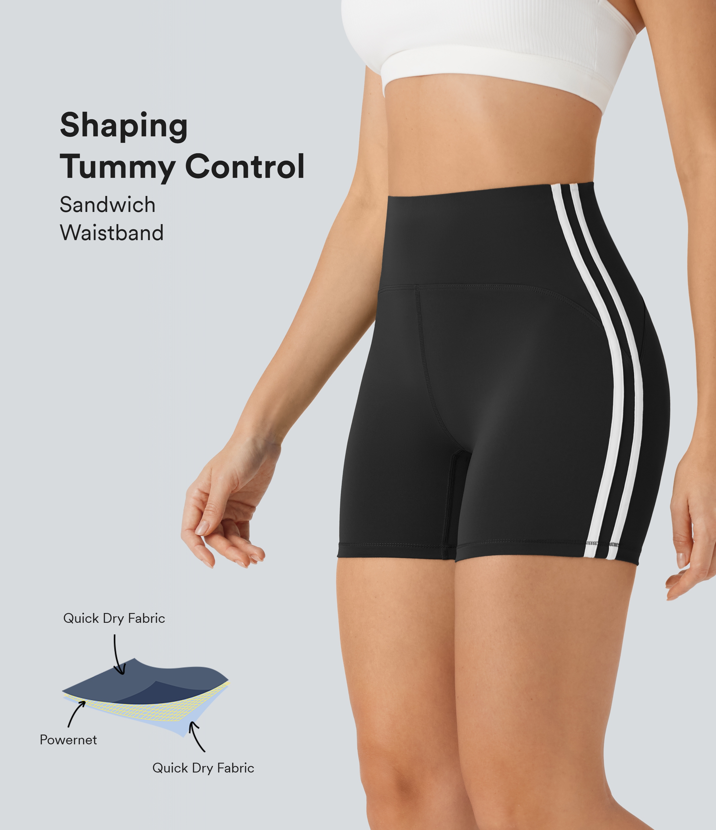 SoftlyZeroTM QuickDry SoCinched High Waisted Tummy Control Color Block Yoga Biker Shorts 5''