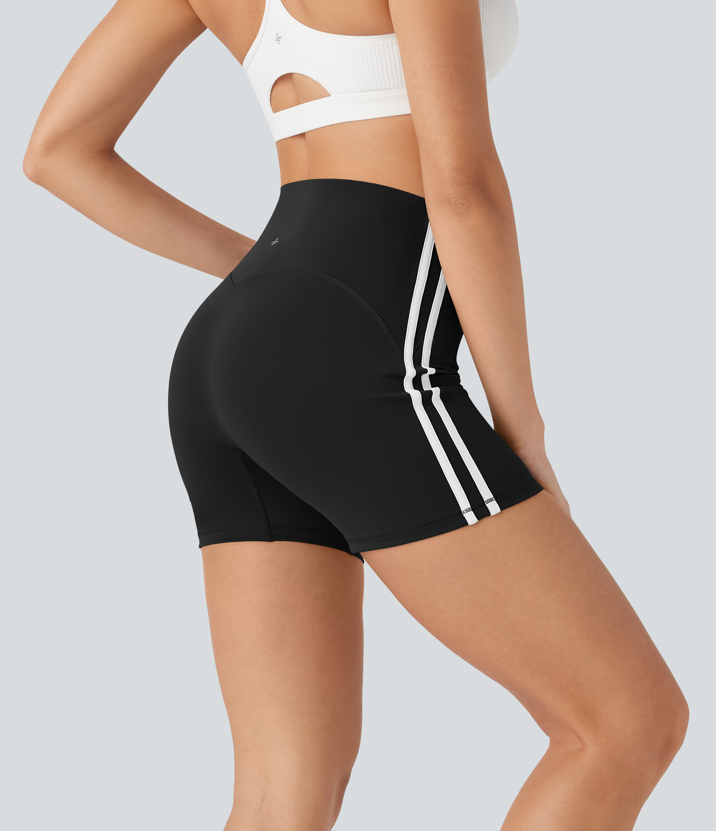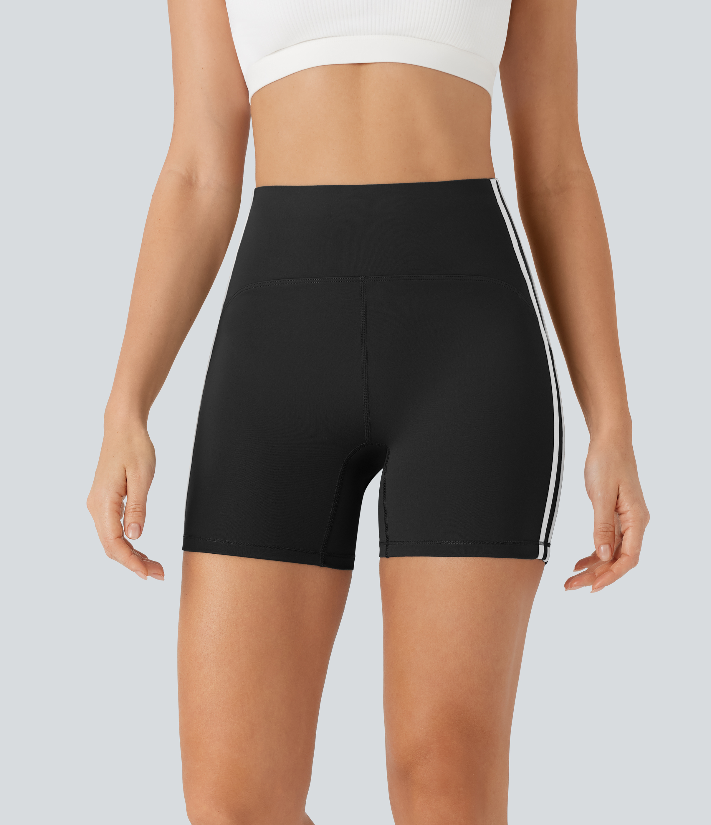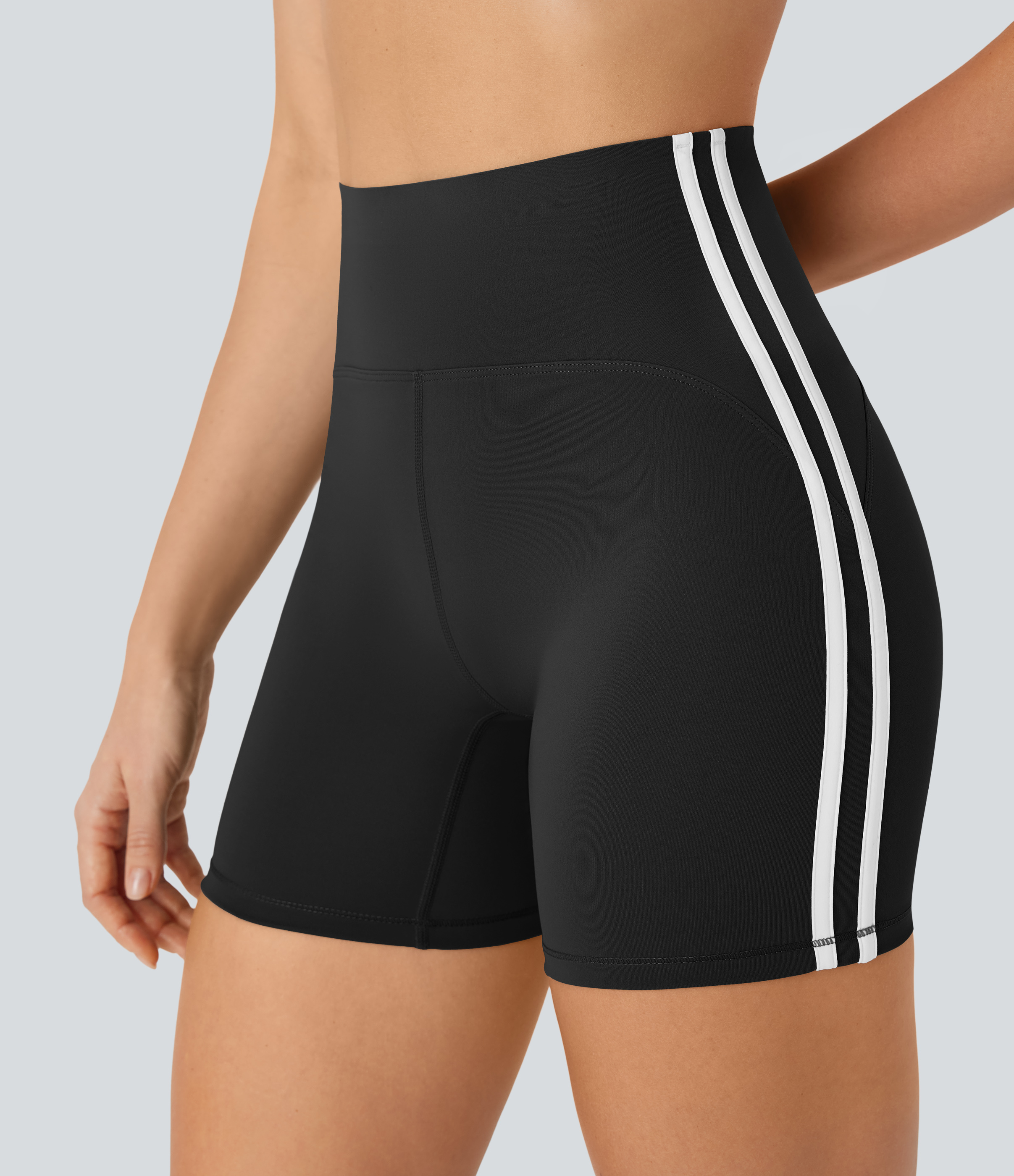 • SoftlyZeroTM QuickDry SoCinched High Waisted Tummy Control Color Block Yoga Biker Shorts 5''