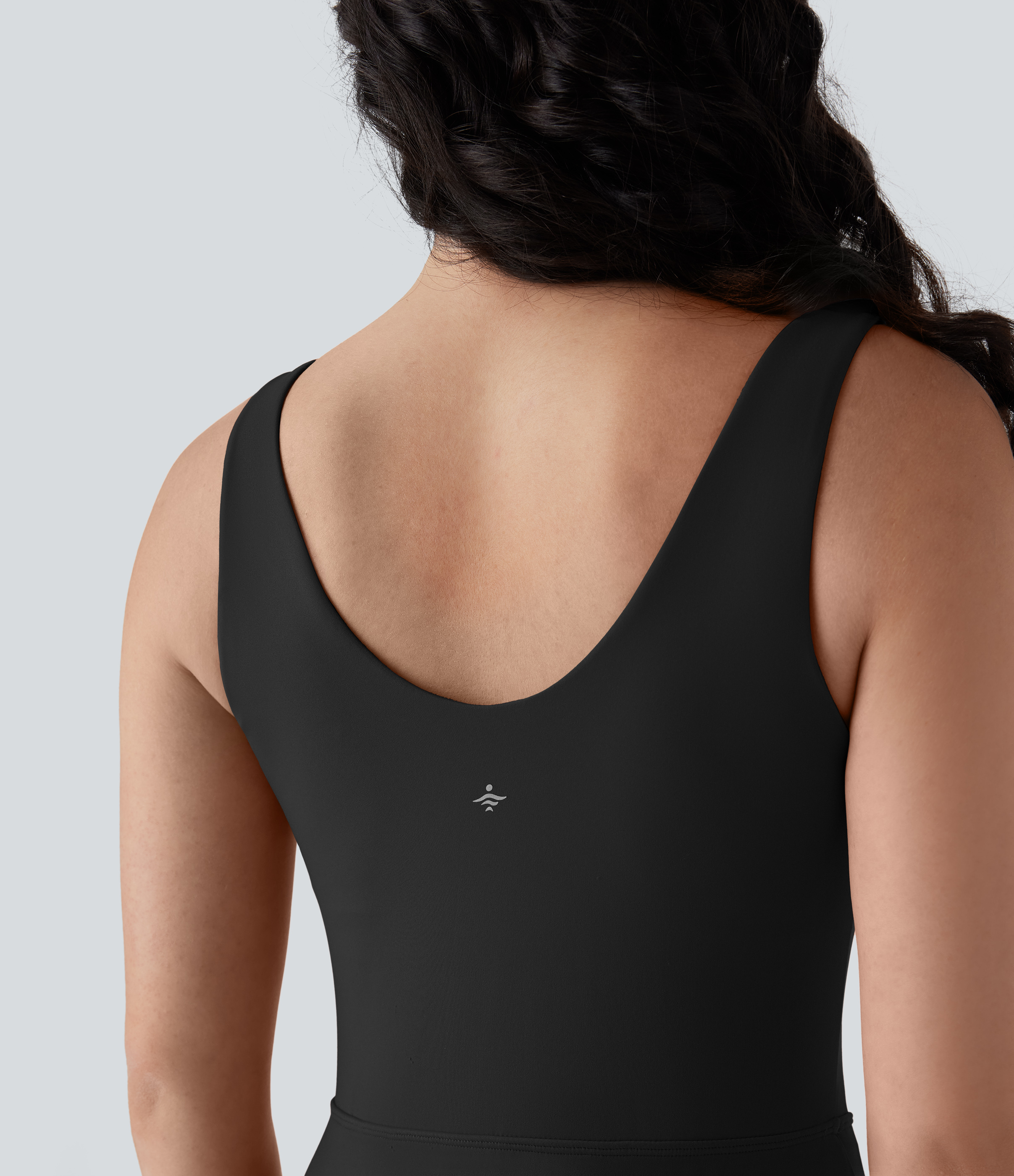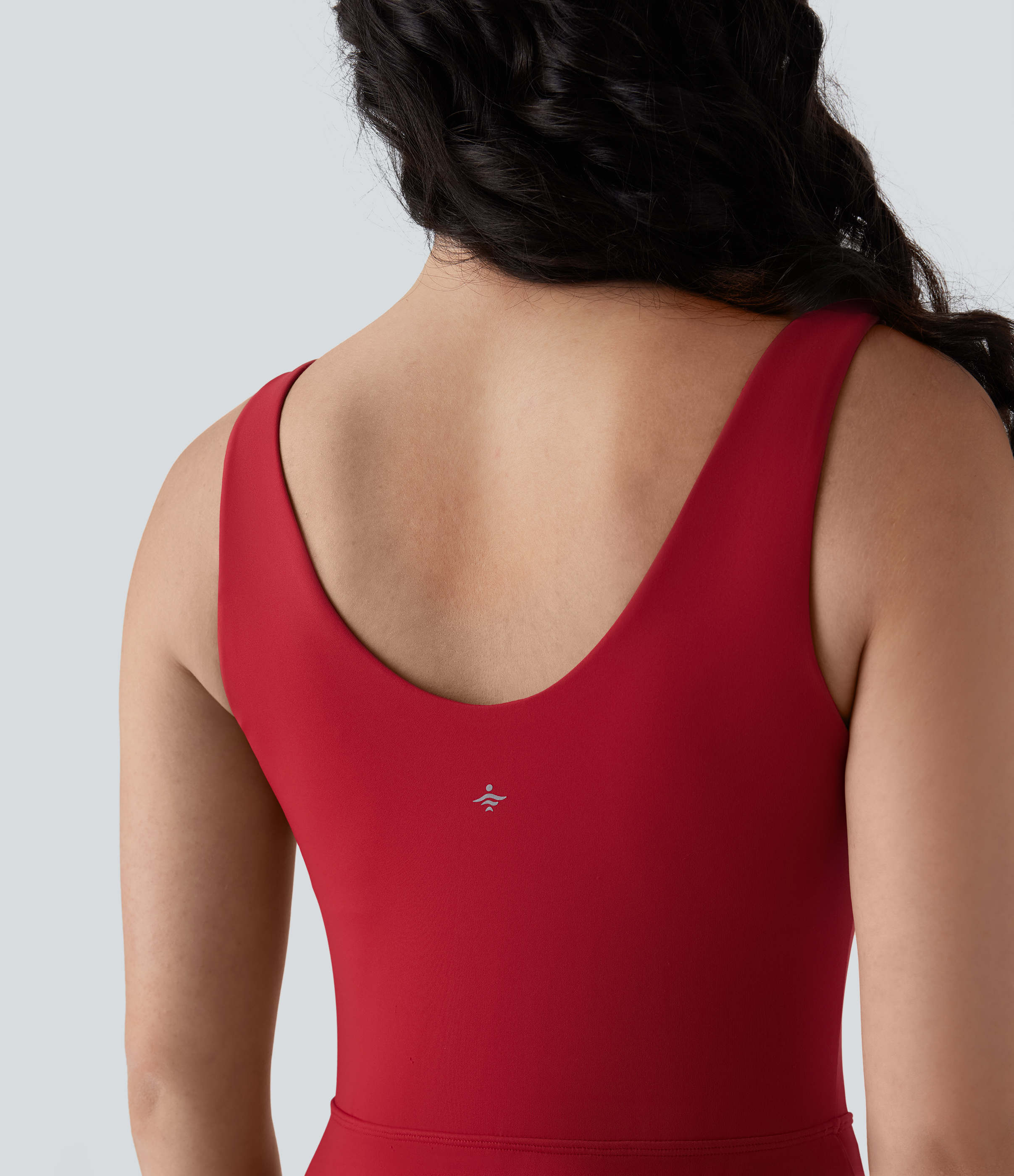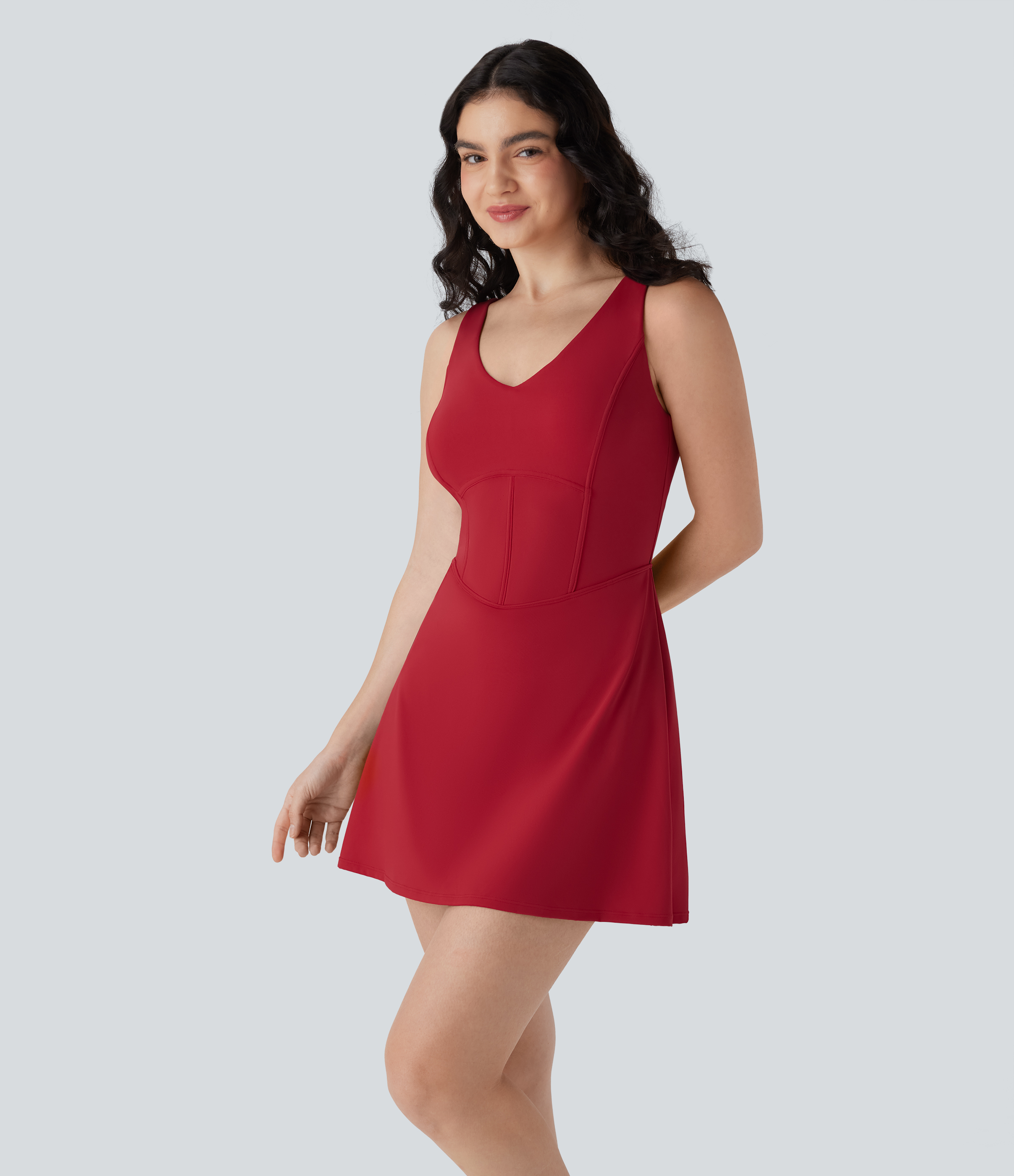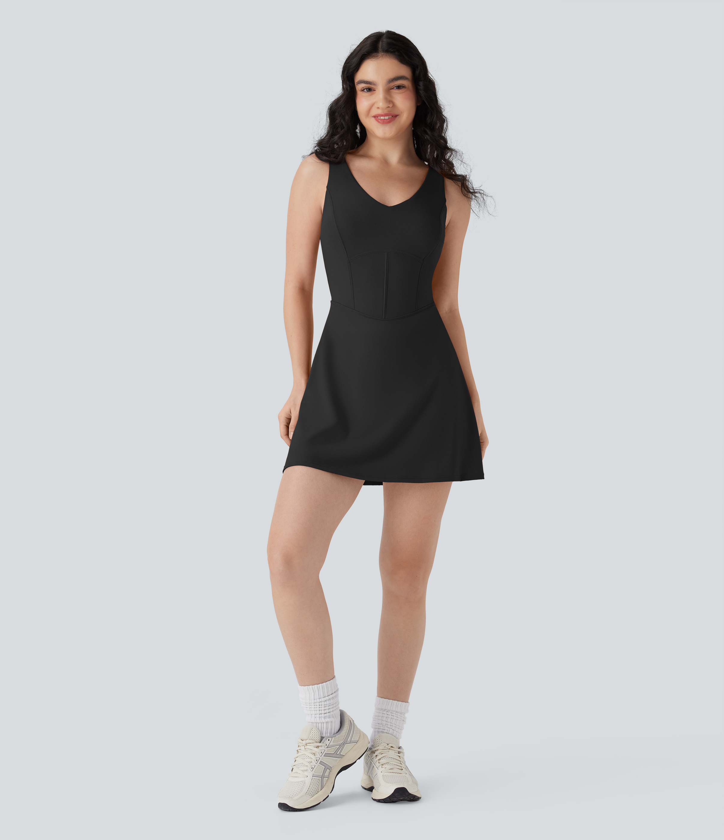 - Built-in shorts with open back waistband for easy peezy bathroom breaks.