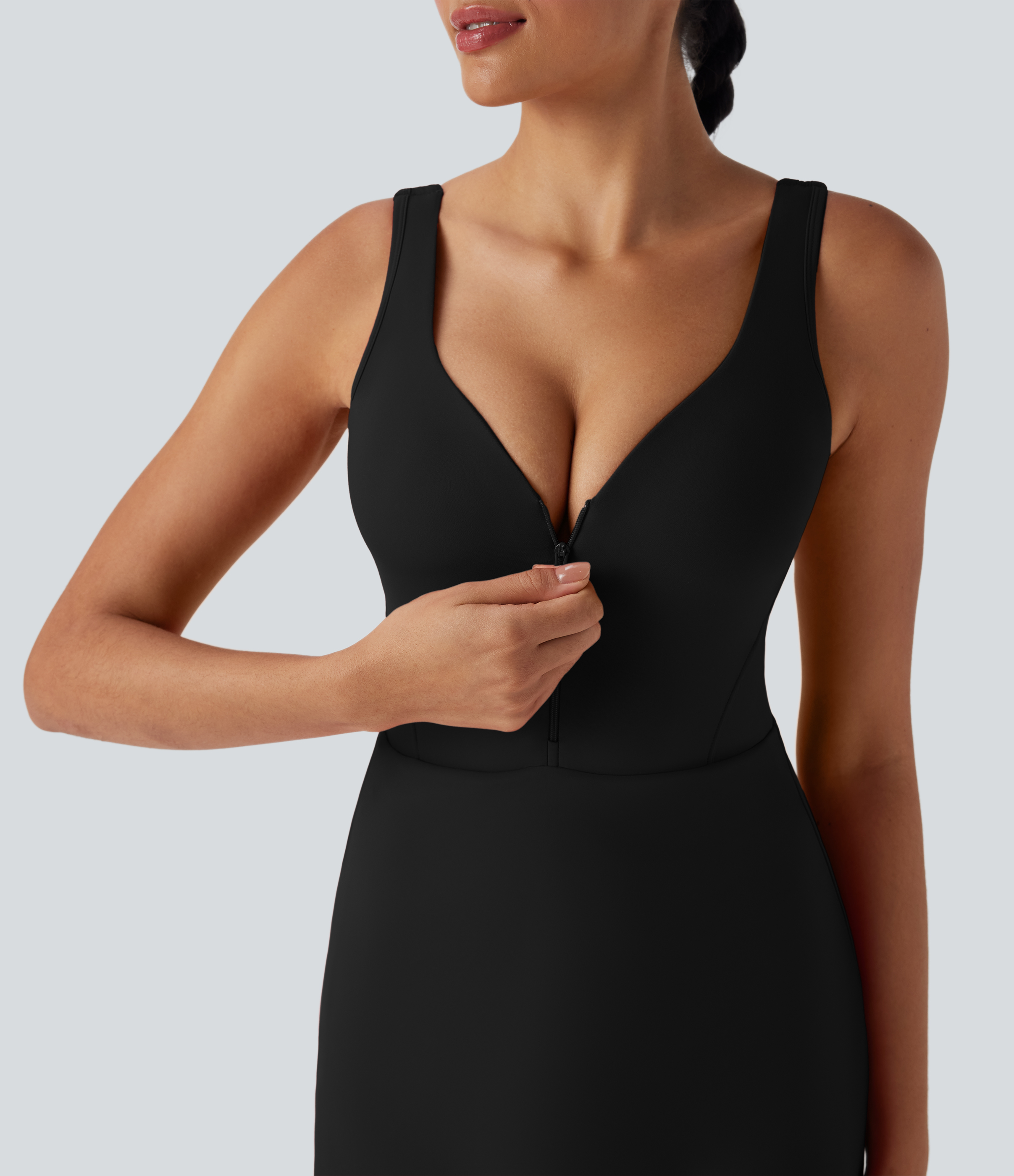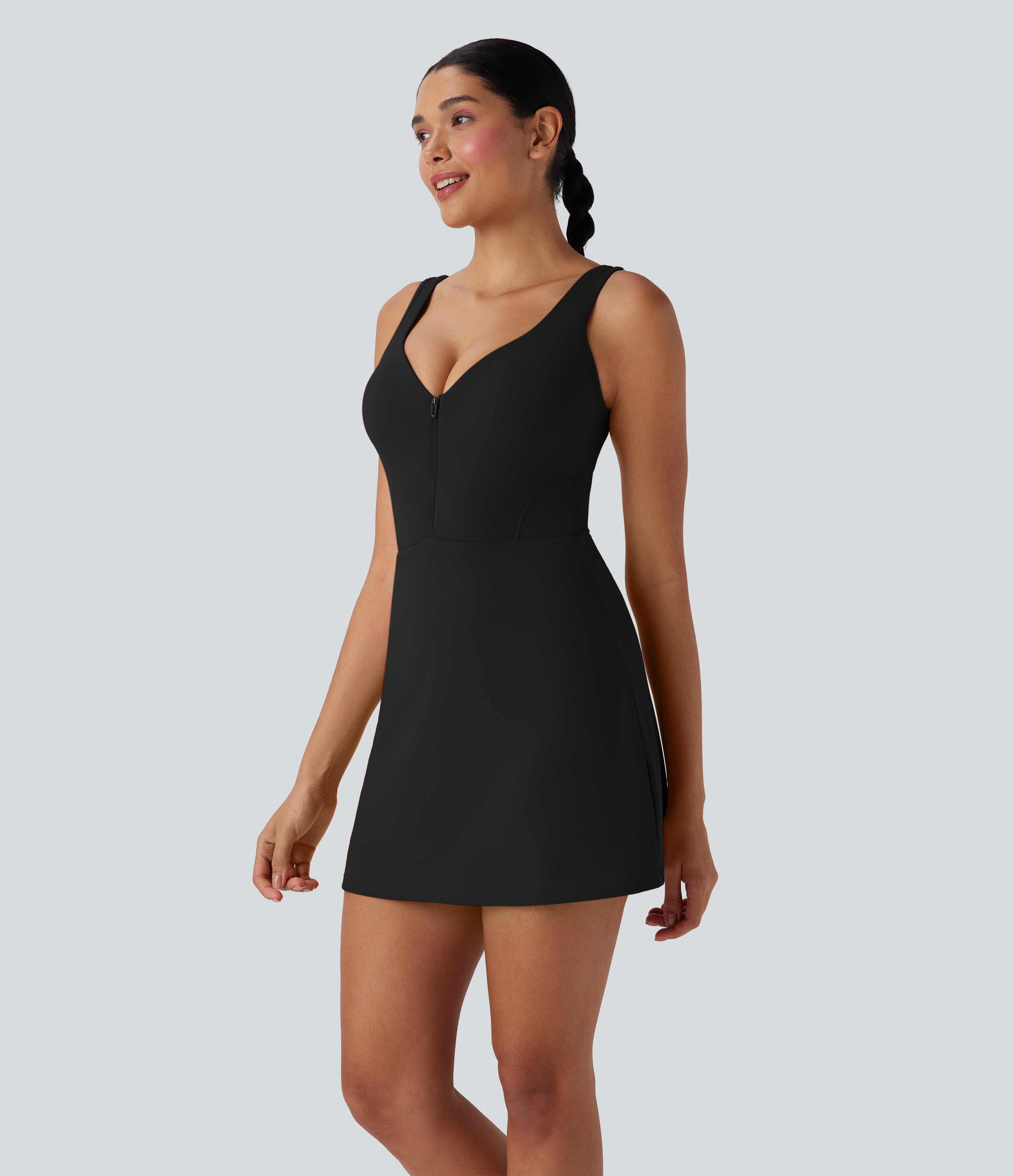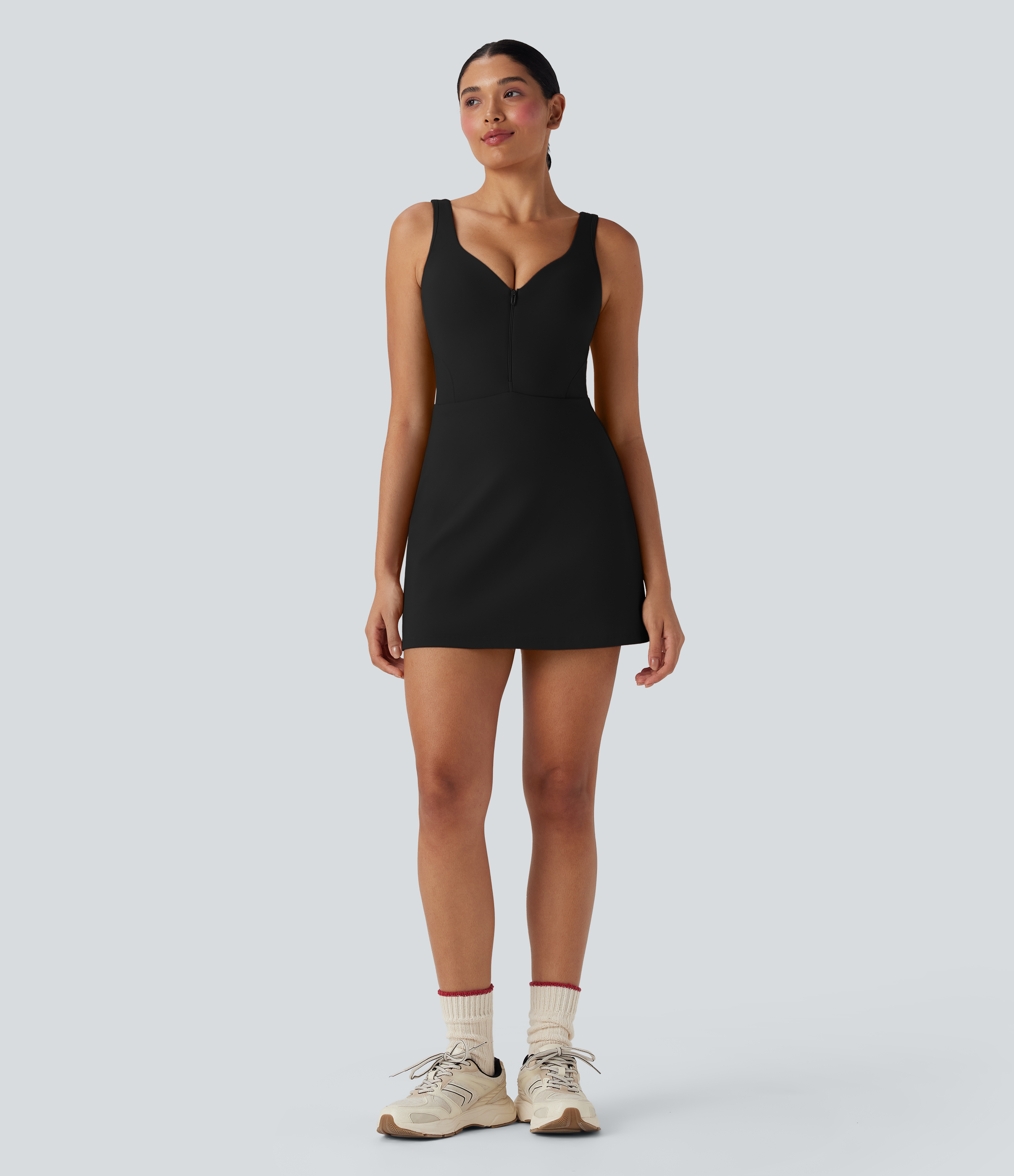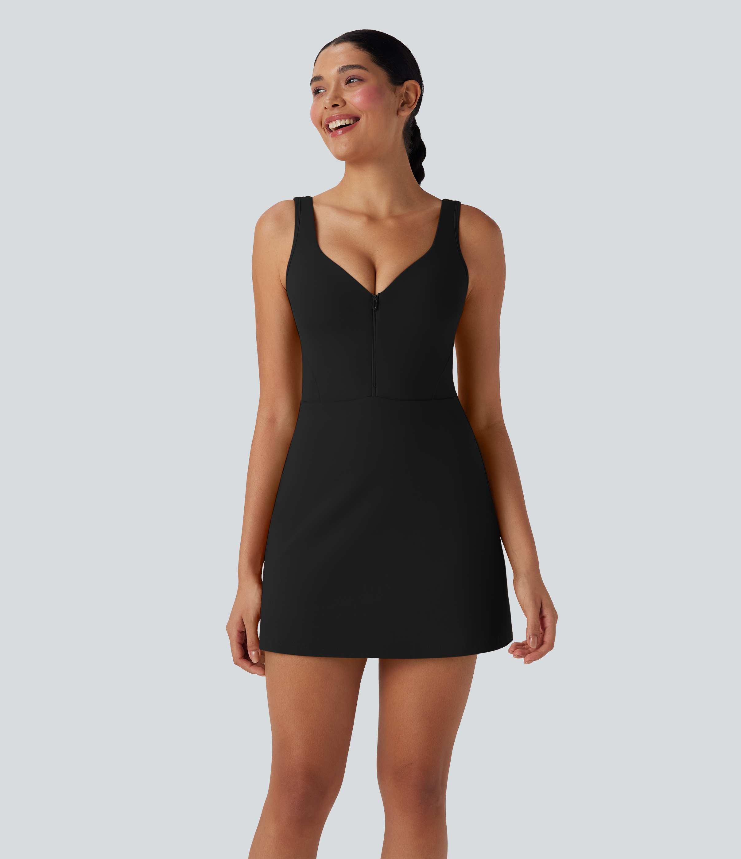• SoftlyZeroTM Plush Push-Up Molded Cups Zipper 2-in-1 Yoga Active Dress with Pockets-Easy Peezy