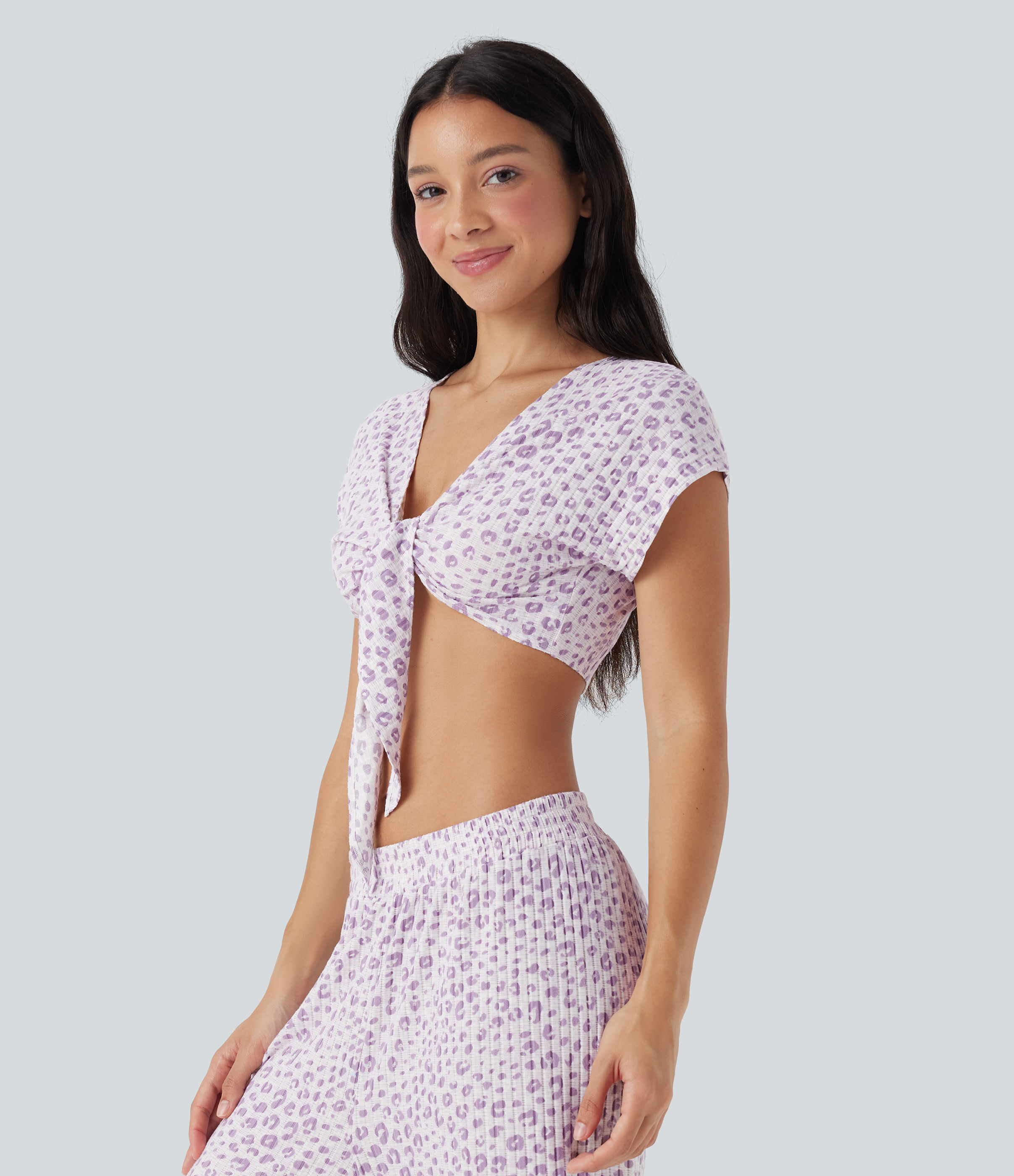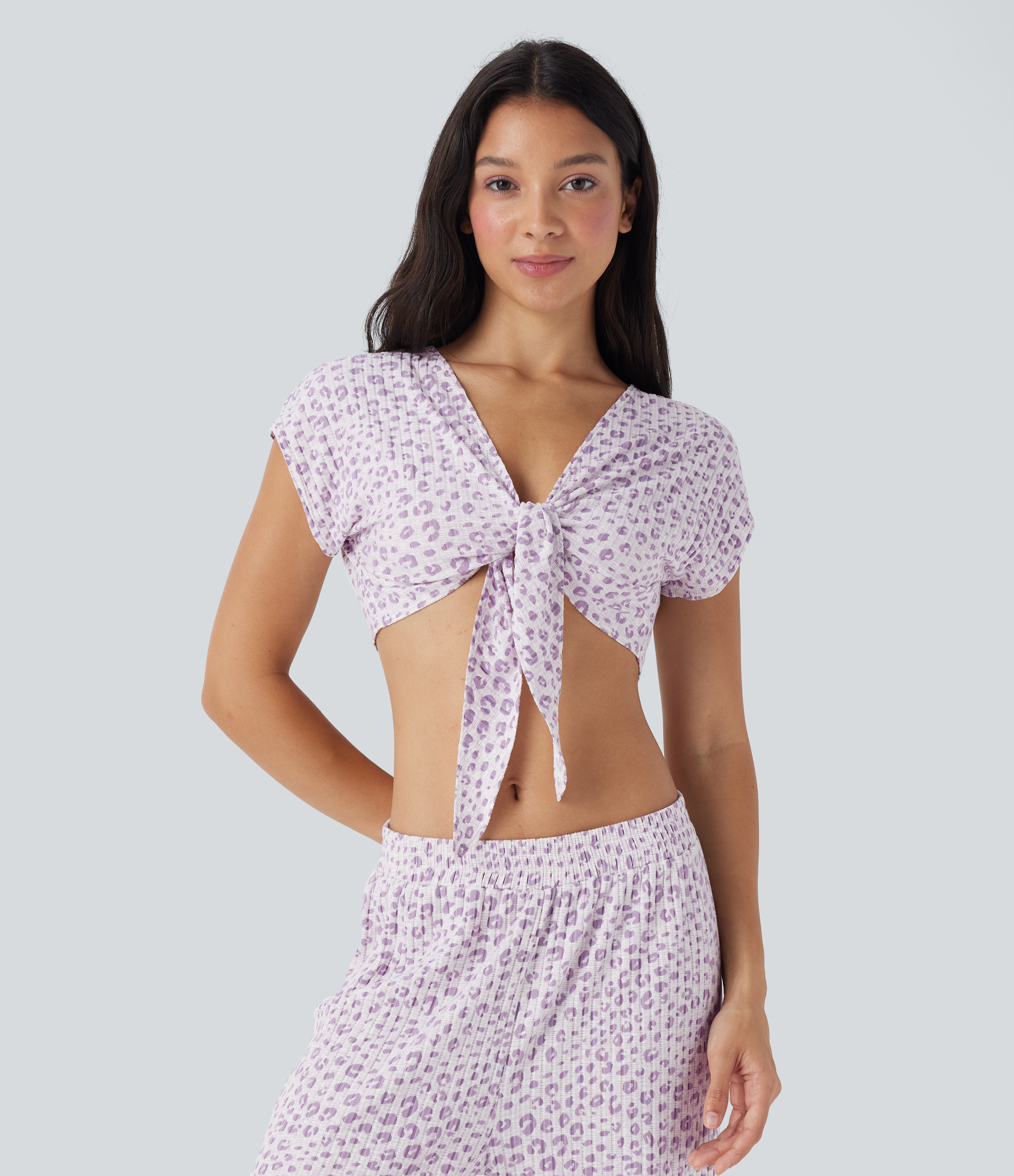 - Tie-front design adds decorative styling for a sweet look.