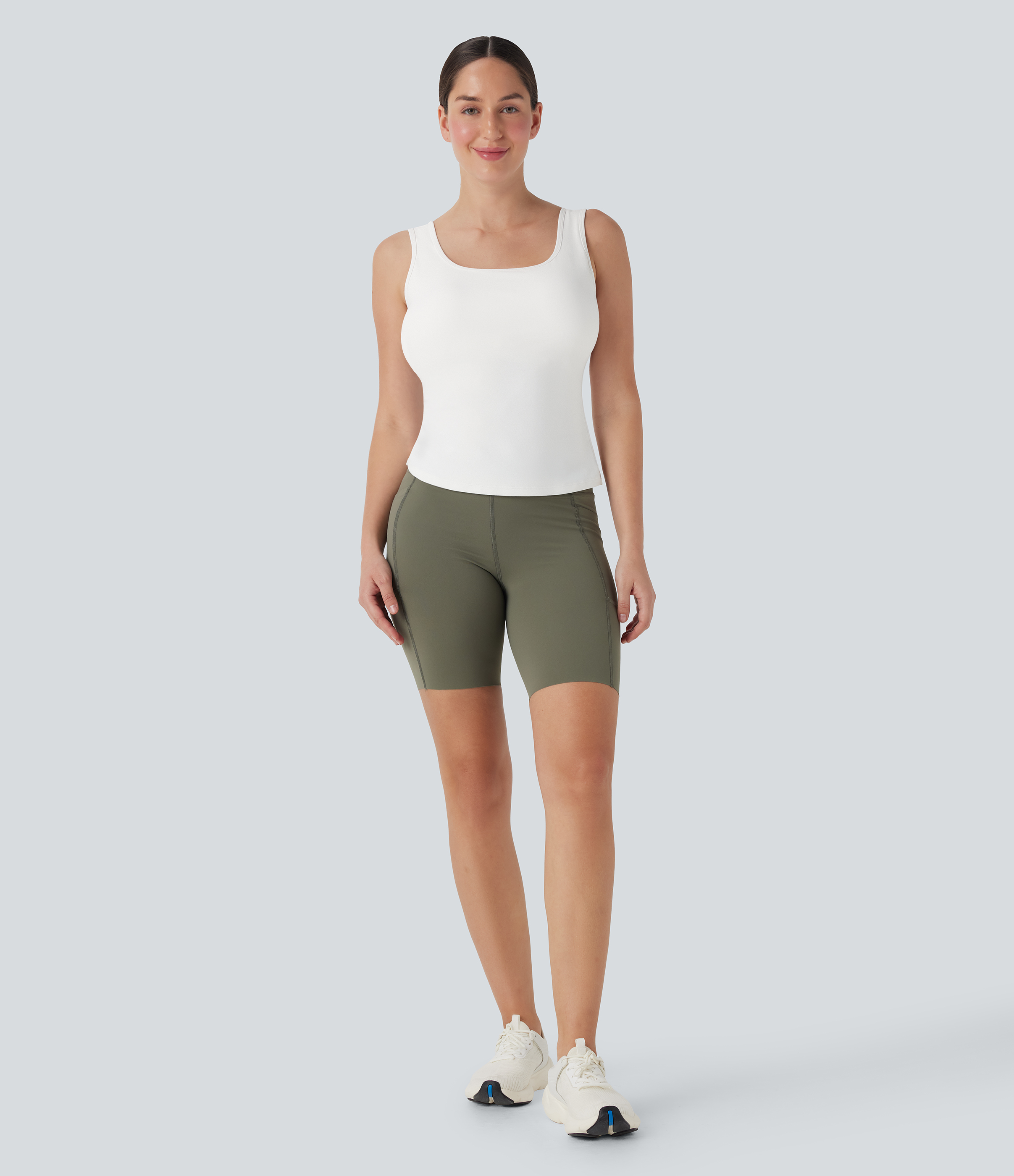 - Four-way stretch fabric offers ease of movement and durable wearability.