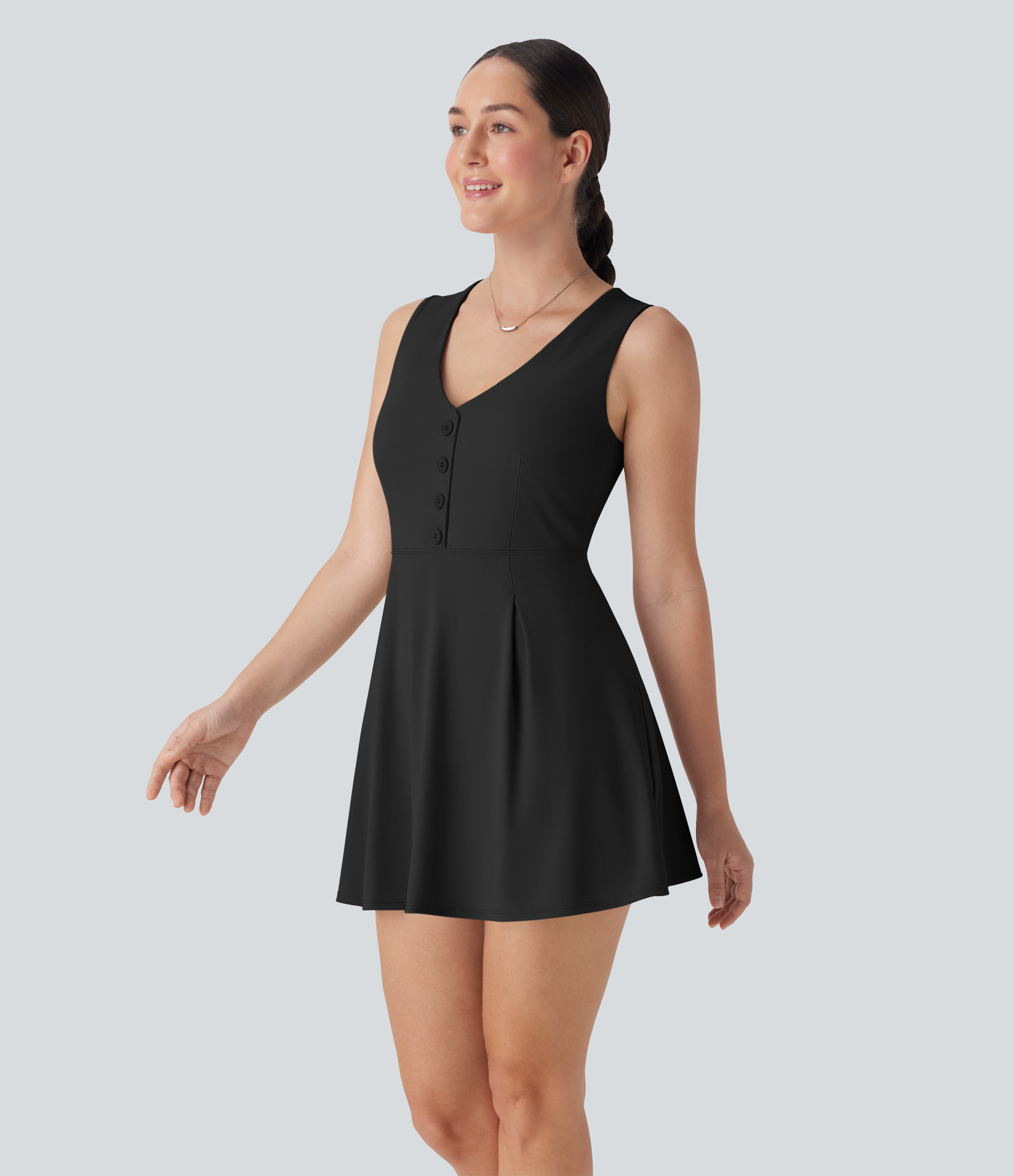 - Two-piece design with separate shorts makes for easy-on-off in this dress.
