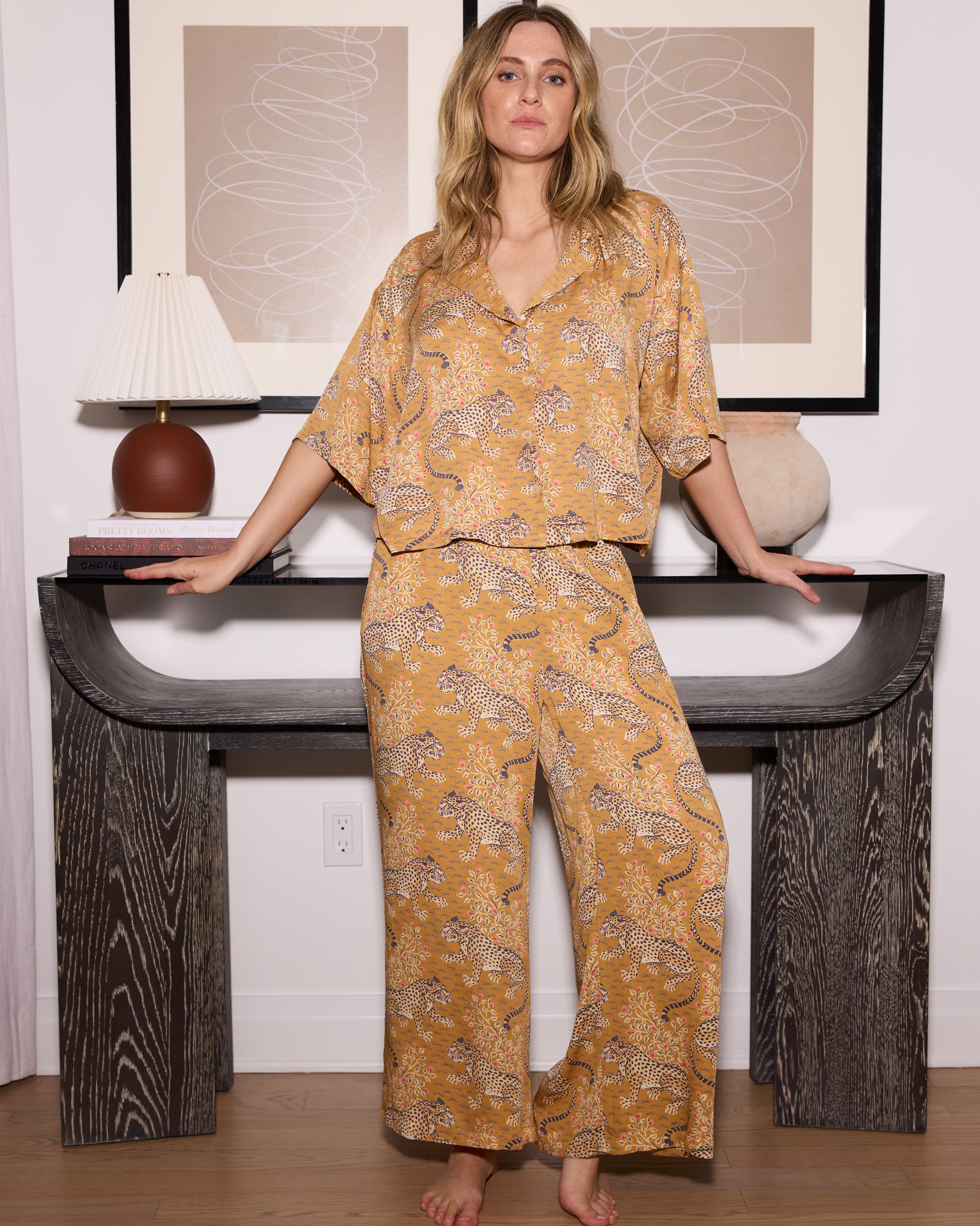 - The Pattern: Vintage textiles, antique paintings of large jungle cats and decorative flora were brought together to create these fan-favorite leopard print pajamas. Poised as she is fearsome, Bagheera (in her luxe Tobacco shade) knows when to quietly sit beside an asoka bush and when to strike.