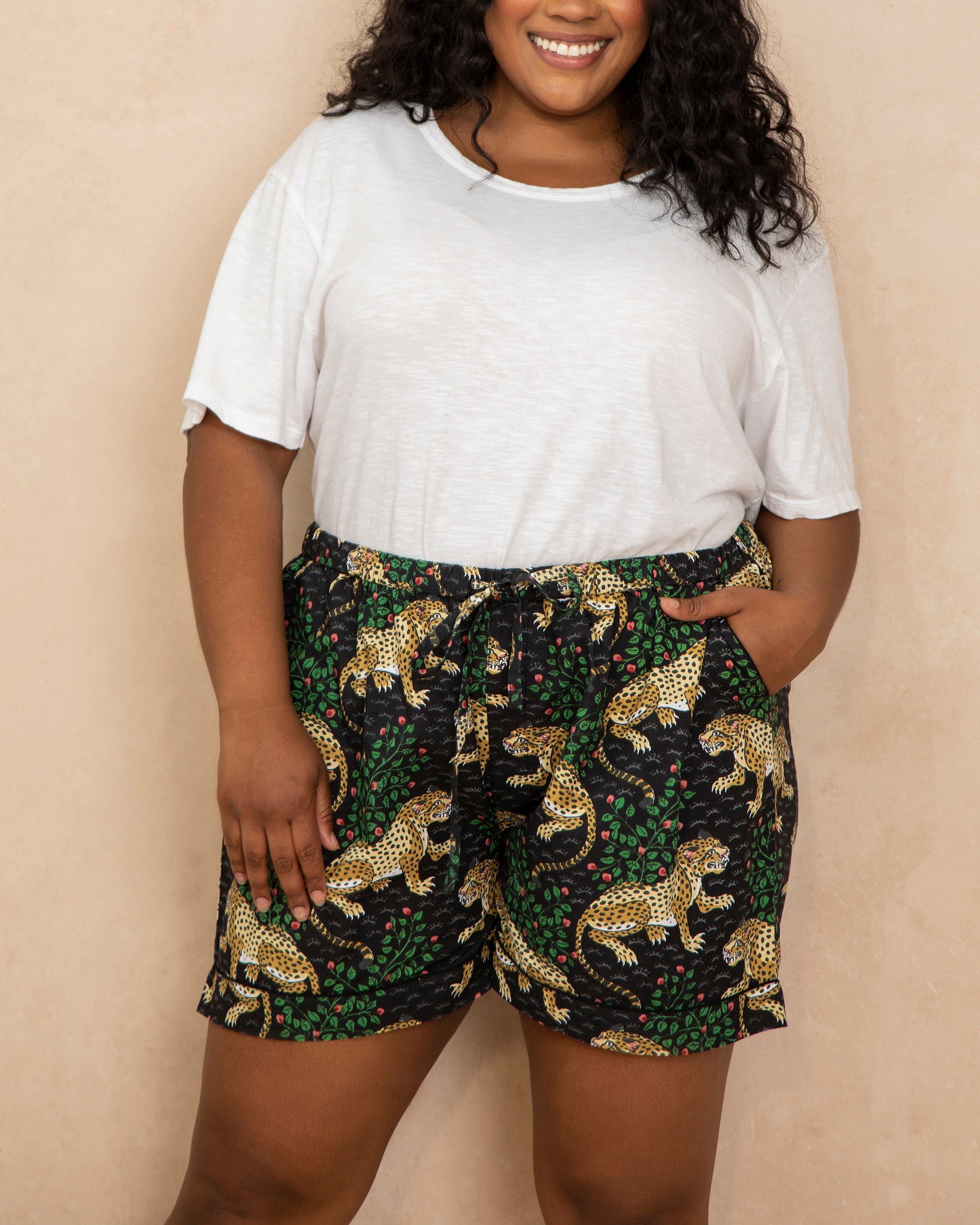 The Pattern: We sprinkled a little magic on our iconic Bagheera print, giving her a fresh jet black paint job that’s long been requested. Beloved yet fierce, it’s like she’s stalking through the jungle for a midnight snack. This is a pattern for big cat enthusiasts who enjoy the moody vibe of post-sunset lounging. Pairs Well With: Slow mornings that blend into afternoons that lead into chilly nightfalls, because when wearing Bagheera Ink it’s perfectly acceptable to relax in stylish sleepwear all day long.
