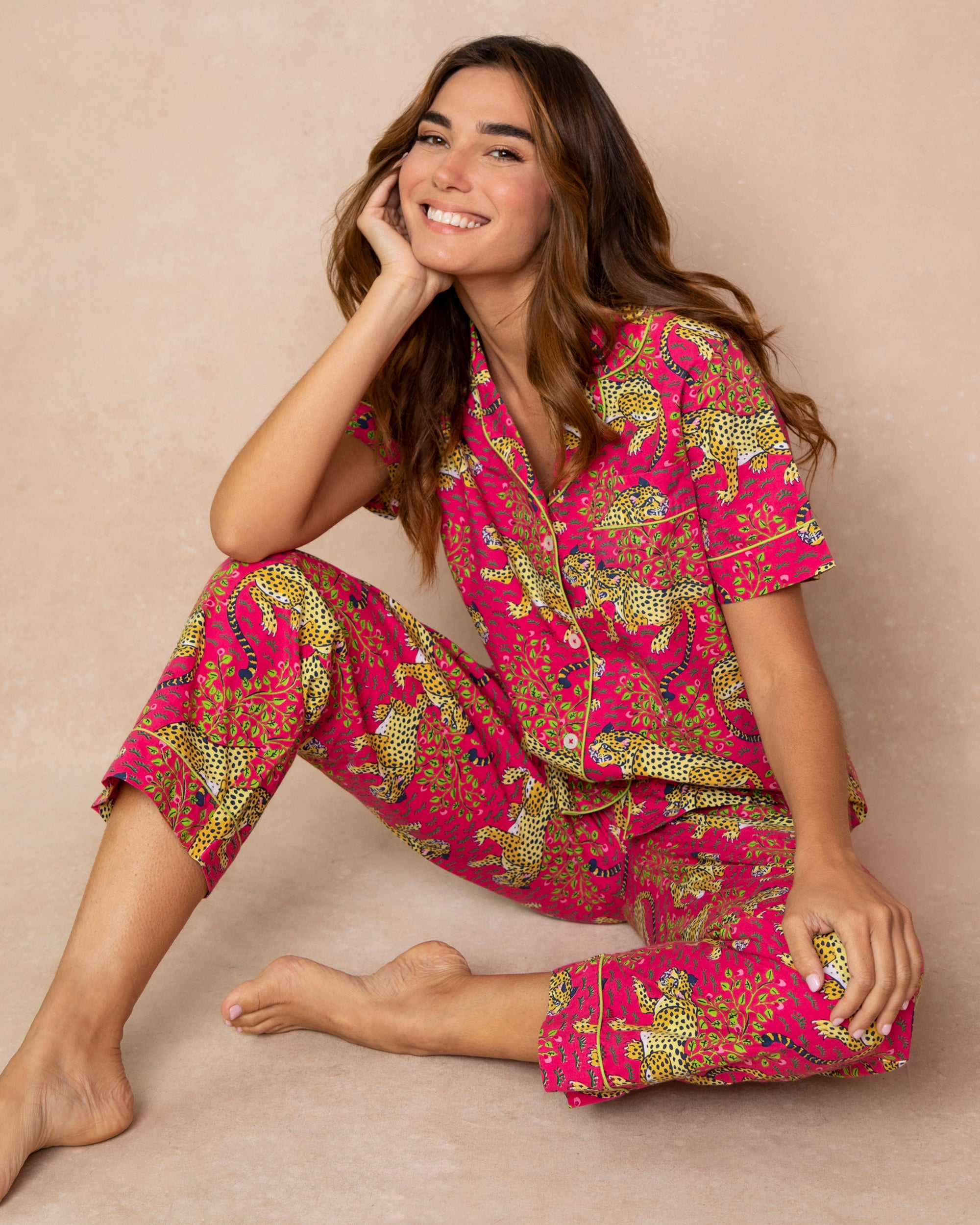 Good to know:The Pattern: Equally fearsome as she is poised, Bagheera the leopard sits quietly beside an asoka bush, indulging in primal relaxation but always ready to pounce at a moment's notice. Vintage textiles, antique paintings of large jungle cats and decorative flora were brought together to create our fan-favorite Bagheera print. Reminiscent of tiny, stylized animals painted onto vintage postcards by artisans in the markets of Old Delhi, the design combines the fine brush strikes of these artists with the passionate and powerful traits that the big cat embodies. Pairs Well With: Plans to stay inside all day, taking fiercely restful cat naps, snack breaks and perfecting homemade skin-care facials.