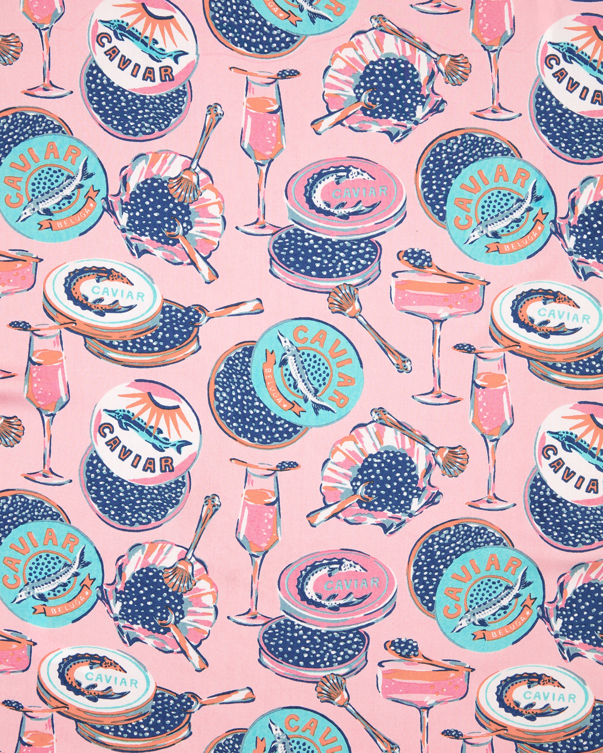 - The Pattern: Celebrate life’s luxuries and elevate your lounge with our Champagne & Caviar sleepwear capsule. Featuring both Eco Satin and organic cotton pajama styles, this lavish collection is perfect for those with an appetite for the finer things in life. With retro caviar tins and bubbly champagne flutes, it serves up total indulgence.