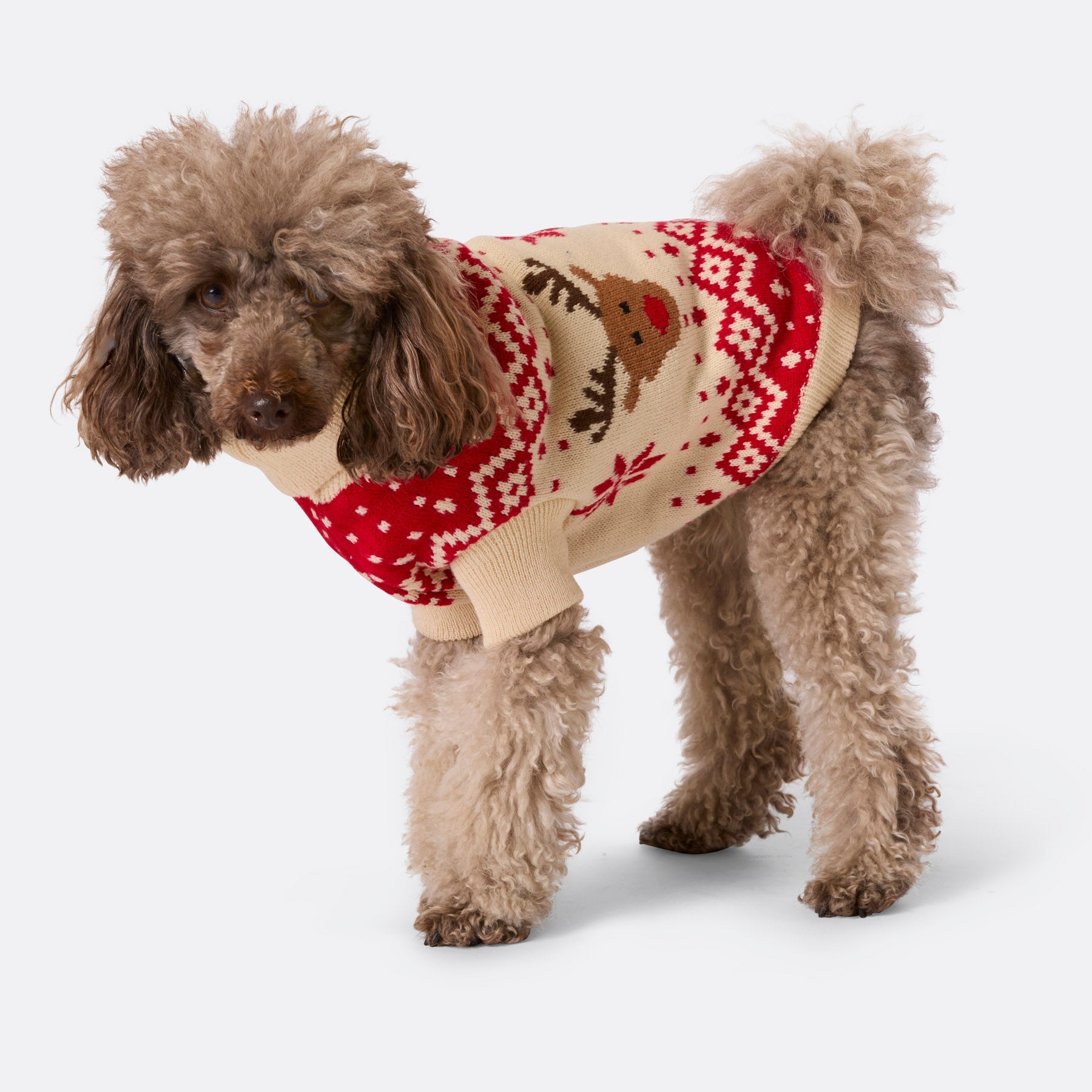 Dogs' Red Retro Reindeer Christmas Jumper