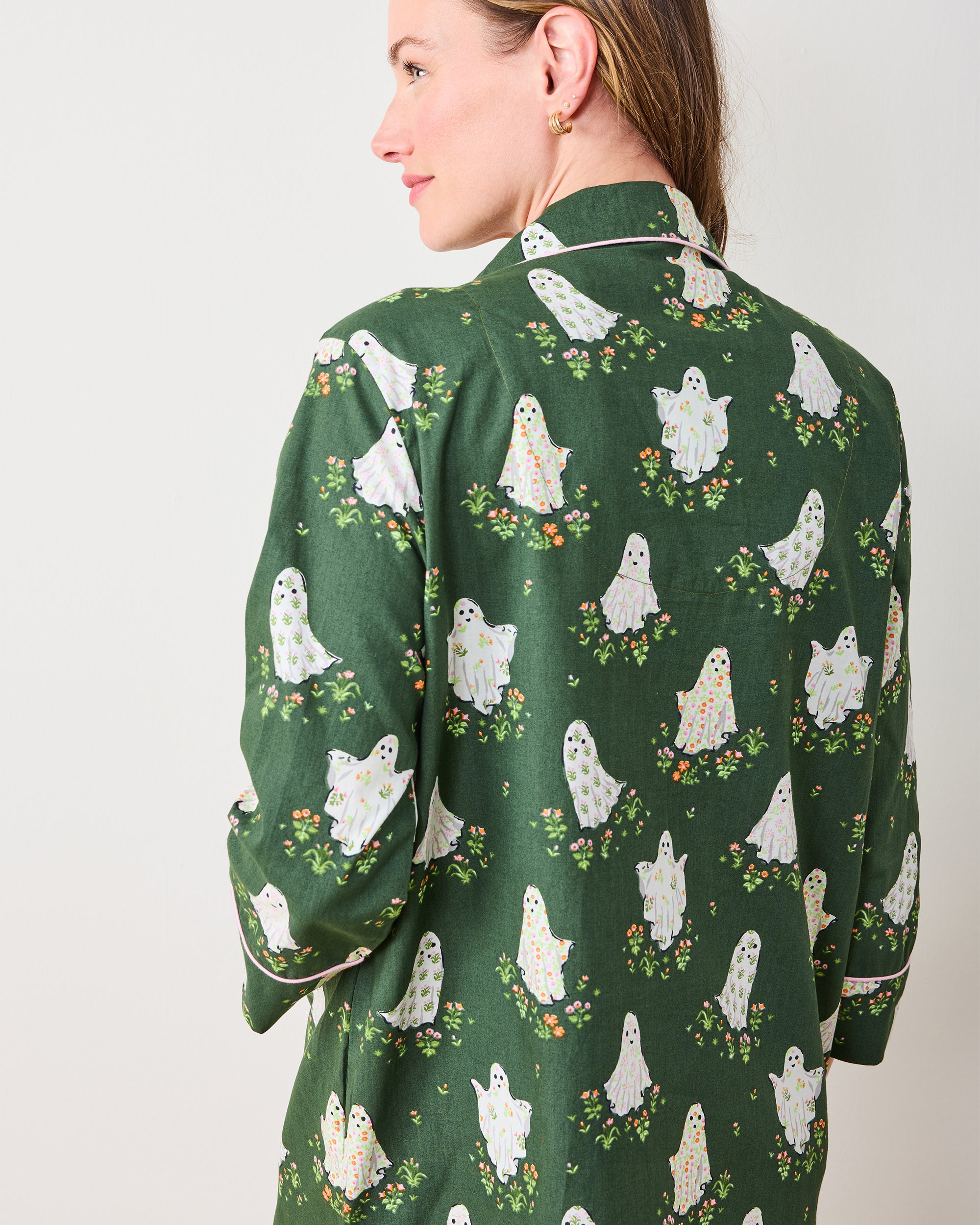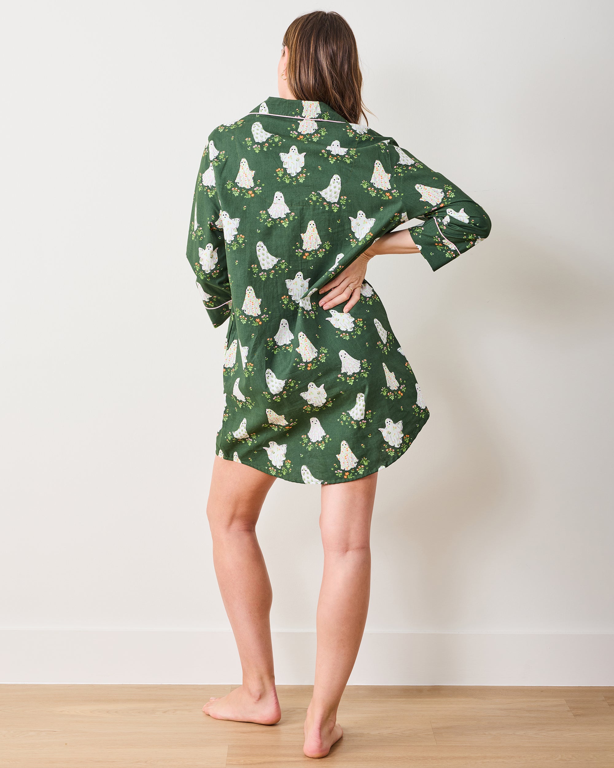 <p>Wake refreshed in our Gardening Ghosts sleep shirt. This ghost print sleep shirt wraps you in breathable organic cotton that softens with every wash. It features a chic button-down design with 3/4 sleeves and deep pockets for your nighttime essentials. Our Halloween sleepwear brings a nature-inspired twist to ghost pajamas, with subtle seasonal charm. Explore more in our <span style="text-decoration: underline;"><a href="https://printfresh.com/collections/sleep-shirts" target="_blank" rel="noopener">sleep shirts</a></span> and <span style="text-decoration: underline;"><a href="https://printfresh.com/collections/pajamas" target="_blank" rel="noopener">pajamas</a></span>.</p>