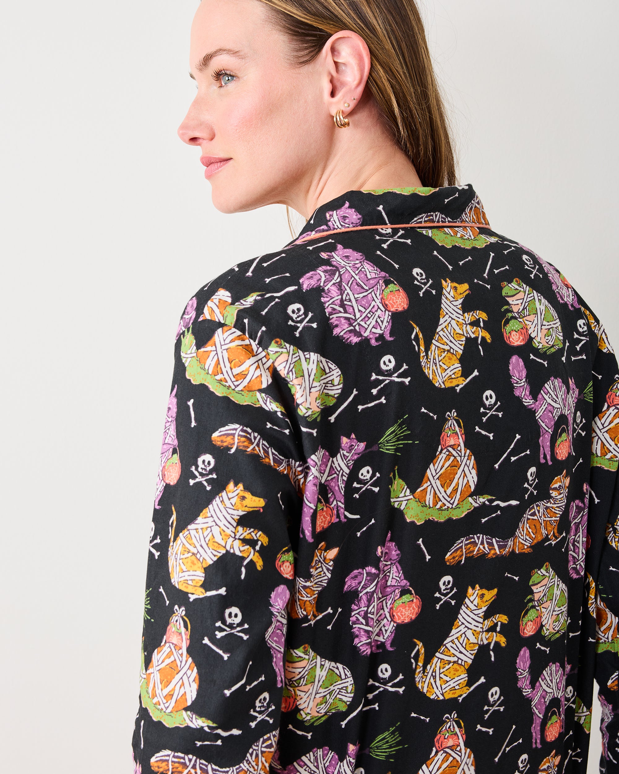 <p>Trick-or-treat dreams await in our Monster Mash pajamas. This playful cotton PJ set features mummy-wrapped critters on breathable organic cotton in a Haunted House hue. The relaxed-fit top and comfortable pants with pockets make this Halloween loungewear perfect for autumn game nights or handing out candy to costumed visitors. <br />Discover more in our <span style="text-decoration: underline;"><a href="https://printfresh.com/collections/pajama-sets">pajama sets</a></span> and <span style="text-decoration: underline;"><a href="https://printfresh.com/collections/pajamas">pajamas</a> </span>collections.</p>