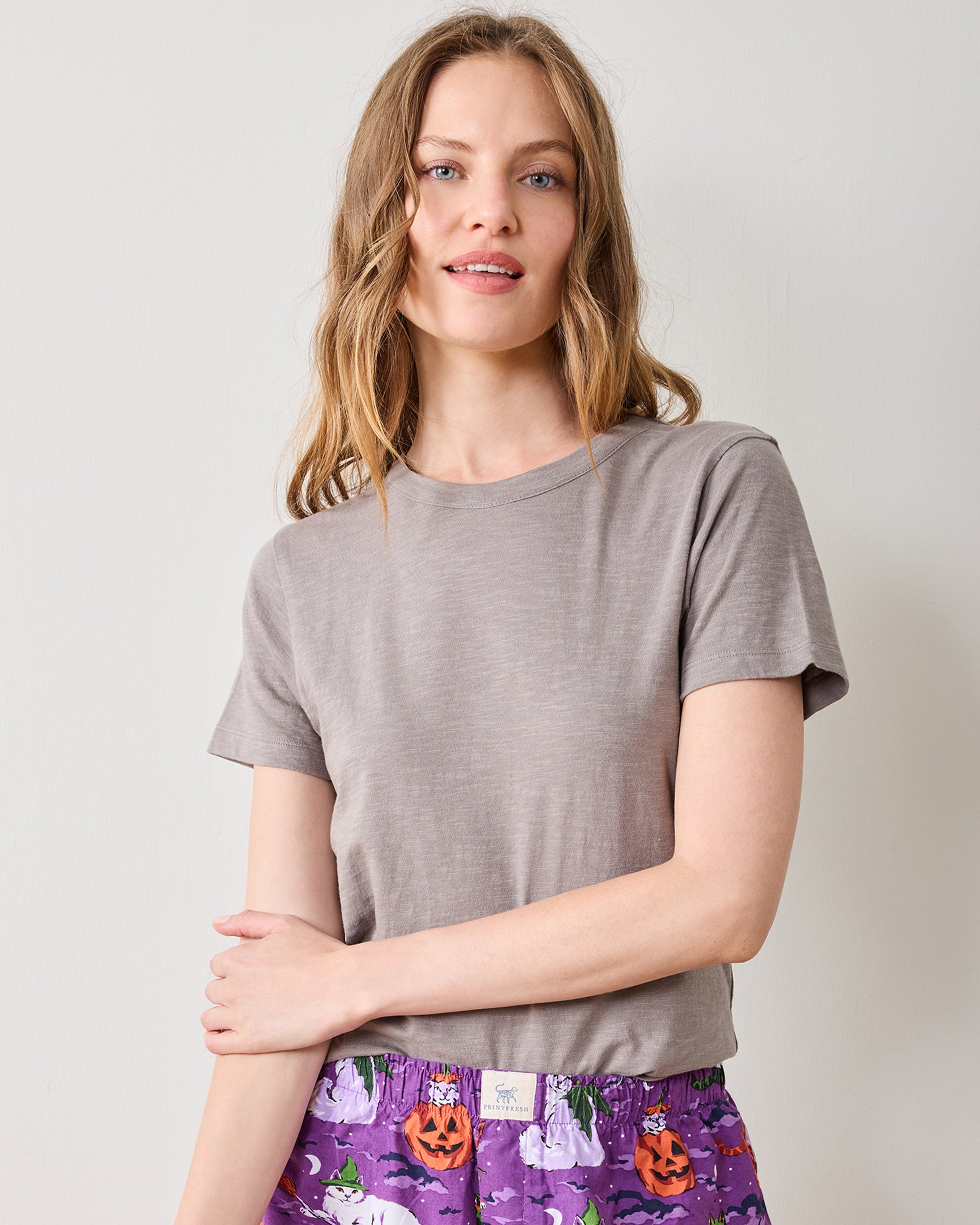 The Collection: Delicately crafted, chic and incredibly cozy, our knit fabric Saturday Tees were made for day, night and every time in between. Designed in a variety of natural and understated colors, this collection is perfect for the moments when you want to feel put together and relaxed all at the same time. Pairs Well With: Your go-to pj pants and shorts. The Saturday Tee is the ideal companion for mixing and matching with all our new and fan-favorite prints, a comfy alternative for those who love a bit of simplicity. You’ll stay in your sleepwear all day long with a well-loved top that transitions seamlessly from morning coffee to dinner at the latest IT restaurant.