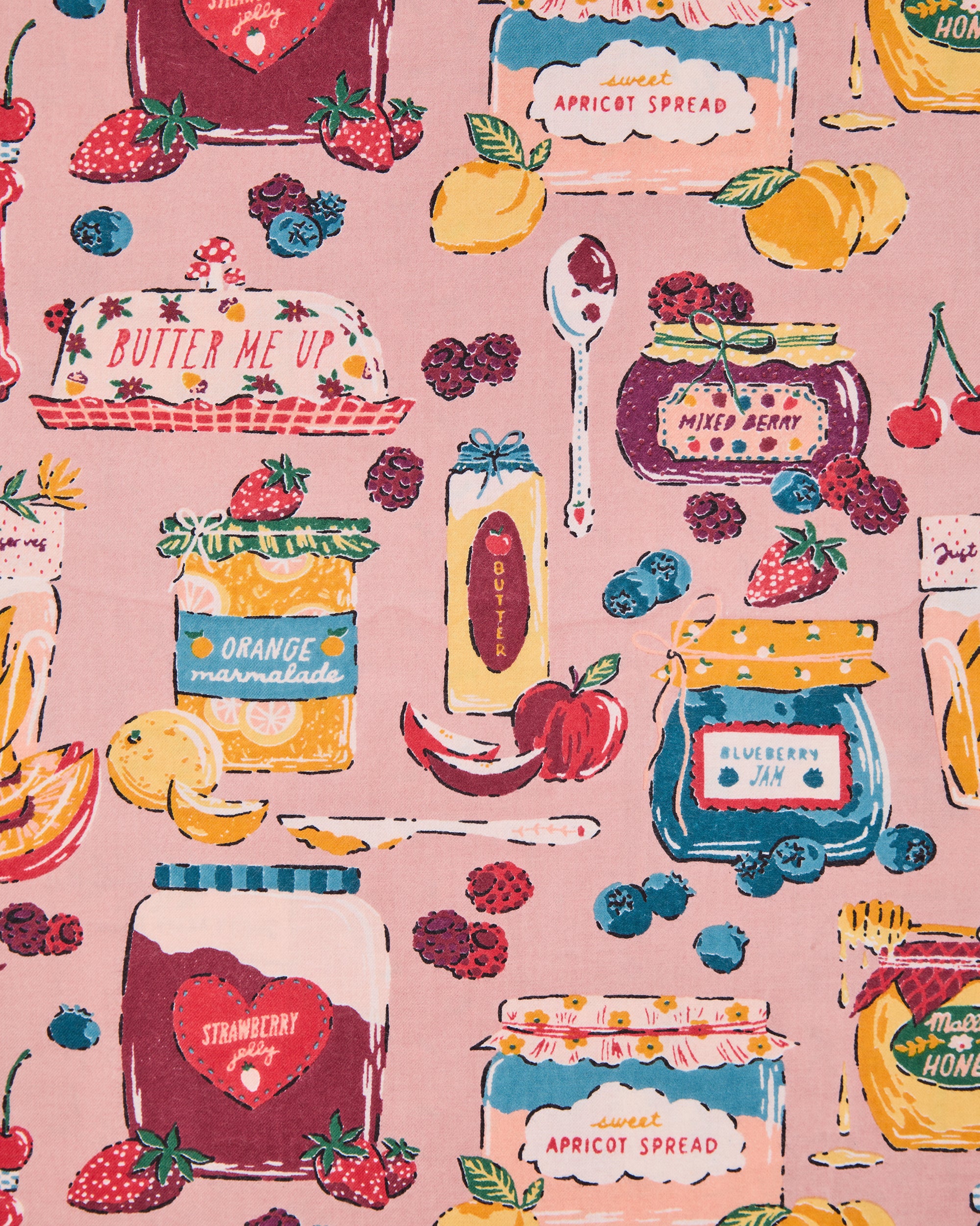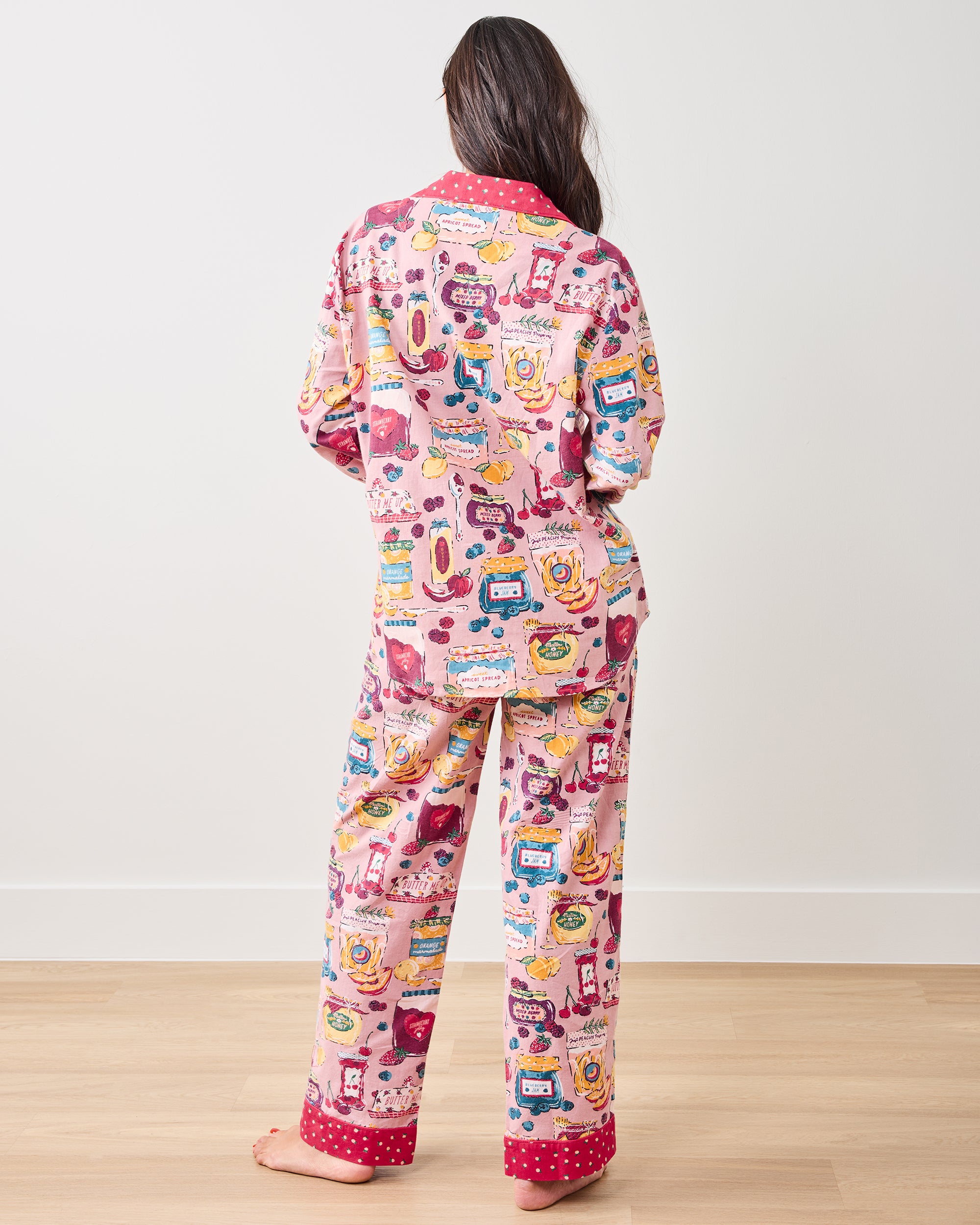 Channel the joy of preserving summer fruit in our Sweet Jams long pjs. This nostalgic flannel pajama set features hand-painted jam jars and berries on breathable, lightweight flannel. Our button-down pajama set includes a relaxed-fit top and comfy pants with pockets. Makes a sweet cotton sleepwear gift, perfect for canning season. Discover more joyful prints in our , , and .