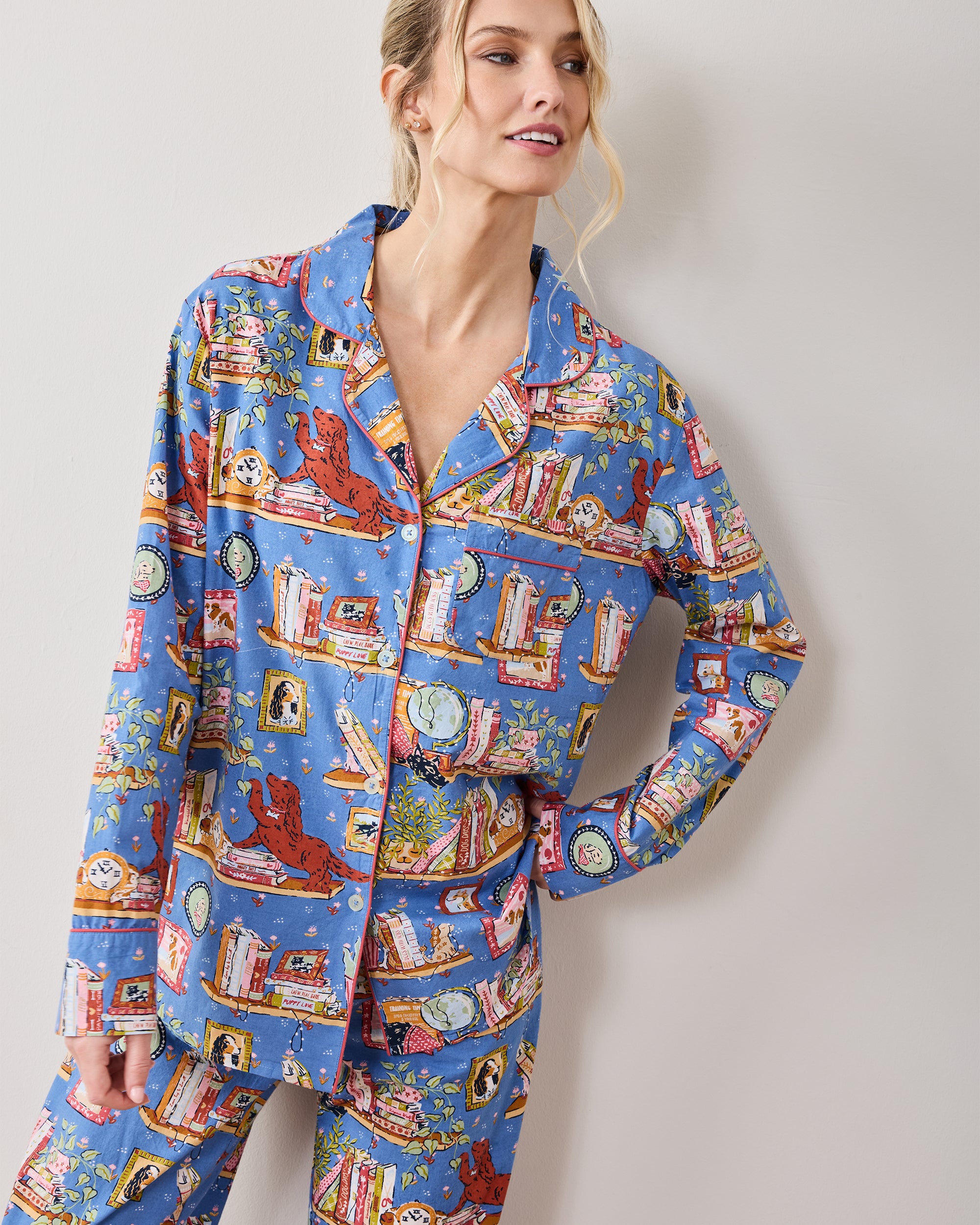 <p>Meet your new favorite tall cotton sleepwear set. Unleashed Stories brings literary whimsy to bedtime with a dog print pajama set featuring hand-drawn pups in a cozy library. Crafted from breathable organic cotton in charming Bookkeeper Blue, this set features a relaxed silhouette and tall-friendly pants with pockets. Made for luxurious reading. Explore more <span style="text-decoration: underline;"><a href="https://printfresh.com/collections/pajamas">pajama sets</a></span>, <span style="text-decoration: underline;"><a href="https://printfresh.com/collections/tall-long-sleep-sets">tall sleep sets</a></span>, and <span style="text-decoration: underline;"><a href="https://printfresh.com/collections/pajama-bottoms">pajama bottoms</a></span>.</p>