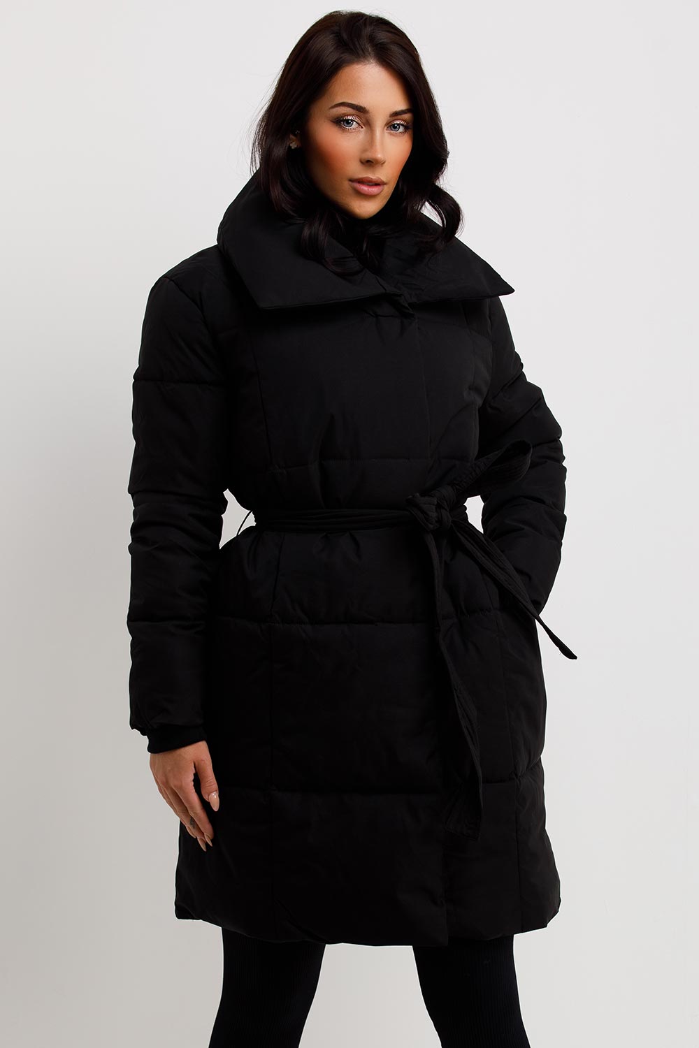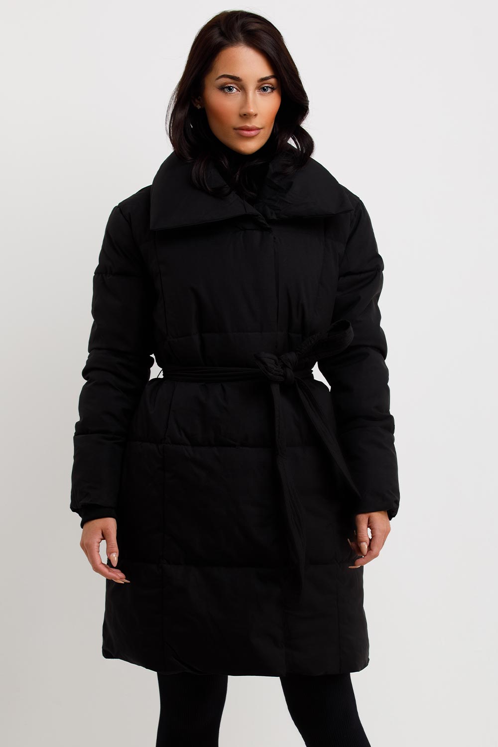 Long duvet coat with belt. This longline puffer coat is perfect for your outerwear wardrobe. Featuring puffer padded duvet coat with button fastening adjustable belt extremely warm and weather resistant. Style this duvet coat with our knitwear and leather look leggings to complete the look we are loving. This long duvet coat is also available in other colours.
