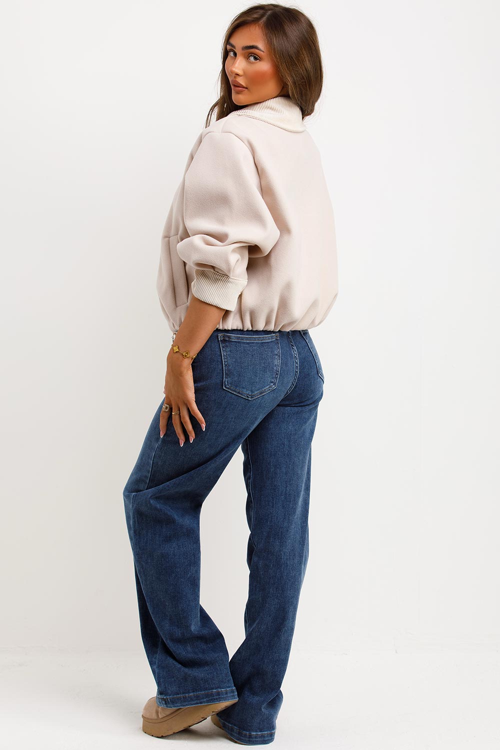 Short bomber jacket with corduroy collar. This bomber jacket features short length long sleeves zip fastening corduroy collar and cuff detail. This bomber jacket is a NEED for your new season outerwear wardrobe. Style this bomber jacket with any outfit to complete the look we are loving. This short bomber jacket with corduroy collar is also available in other colours.