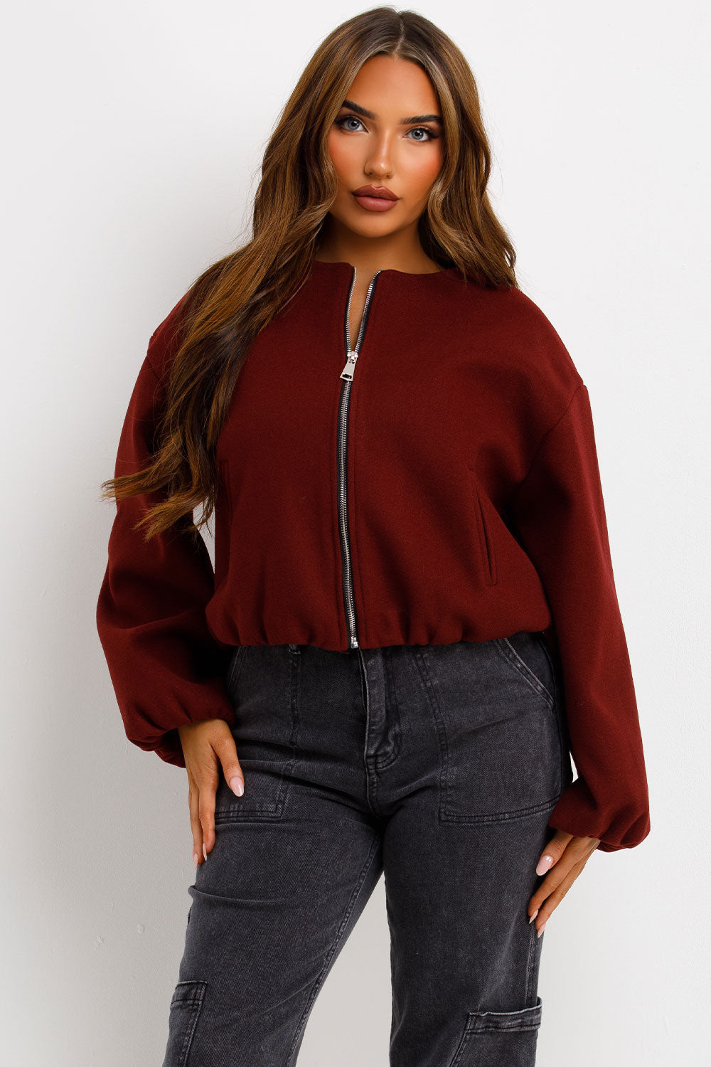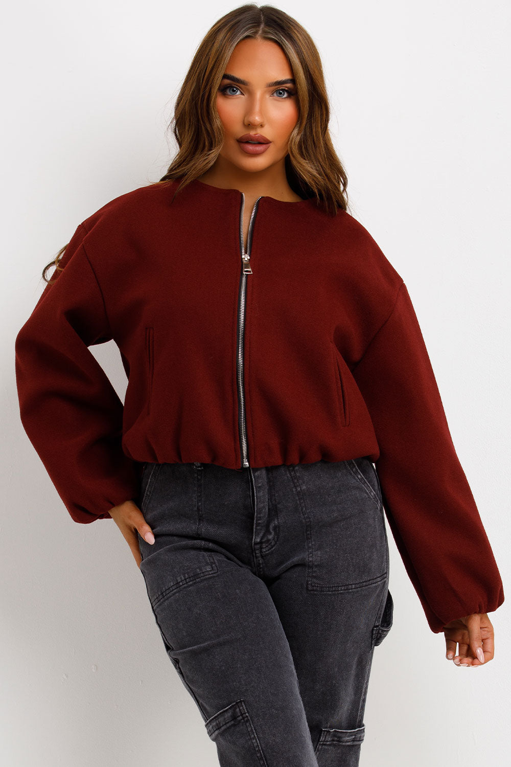 Soft bomber jacket. This bomber jacket is a must have for your new season outerwear wardrobe. Featuring soft bomber jacket with round neck elastic cuffs long sleeves pockets on front elasticated hem and zip up front. Style this bomber jacket with any outfit to complete the look we are loving. This soft bomber jacket is also available in other colours.