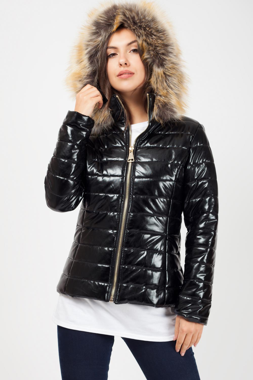 Stay warm in this winter in this wet look padded jacket. Featuring on trend faux fur hood, shiny wet look material and slim fit. Padded material traps body heat and keeps you warm in the coldest days. Get it styledup with cute crop jumper and skinny jeans.