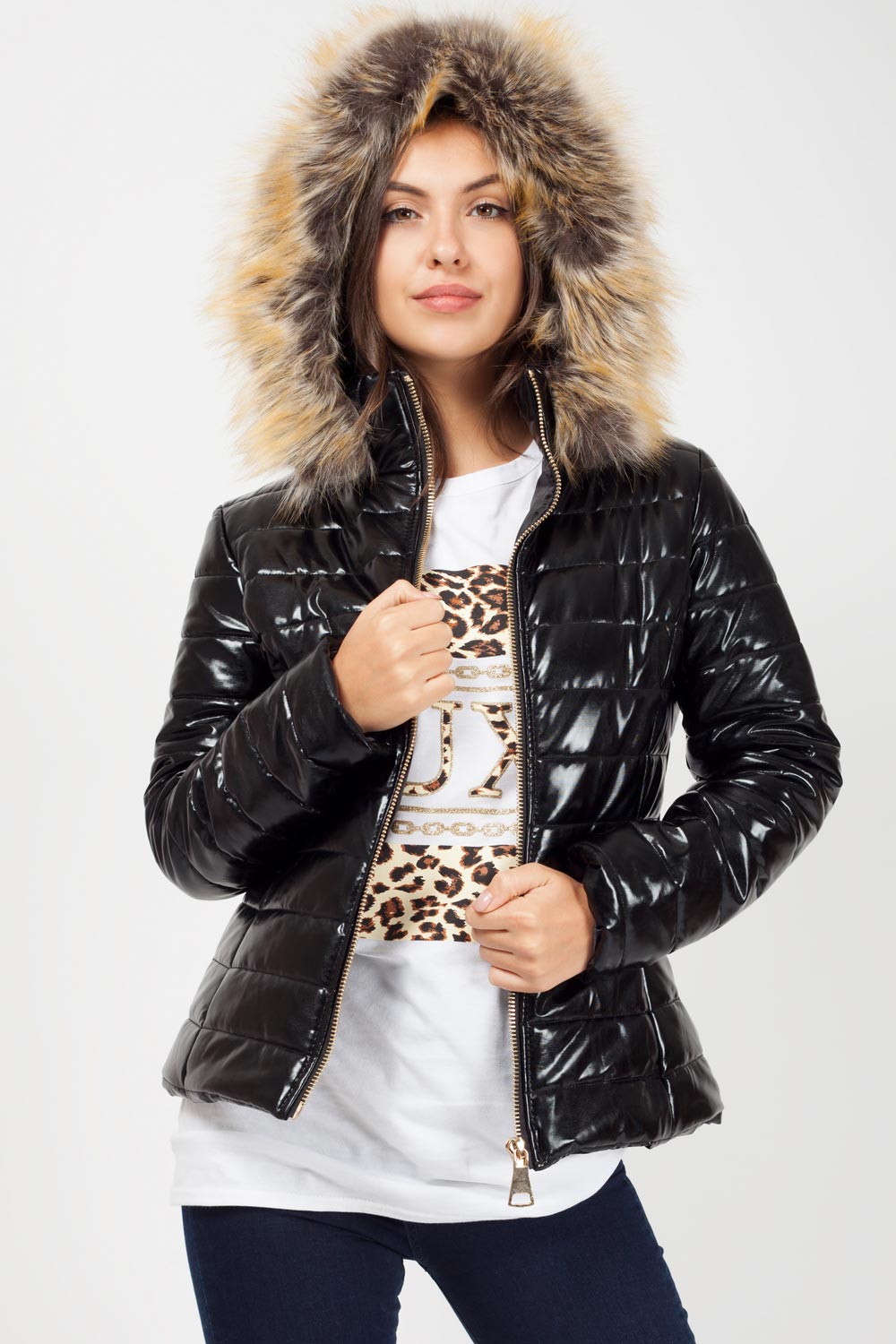 Stay warm in this winter in this wet look padded jacket. Featuring on trend faux fur hood, shiny wet look material and slim fit. Padded material traps body heat and keeps you warm in the coldest days. Get it styledup with cute crop jumper and skinny jeans.
