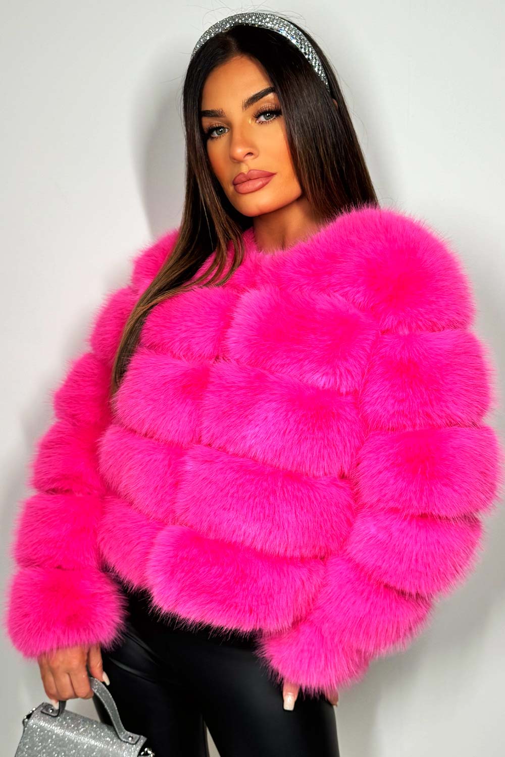 Faux Fur Bubble Coat Bright Pink