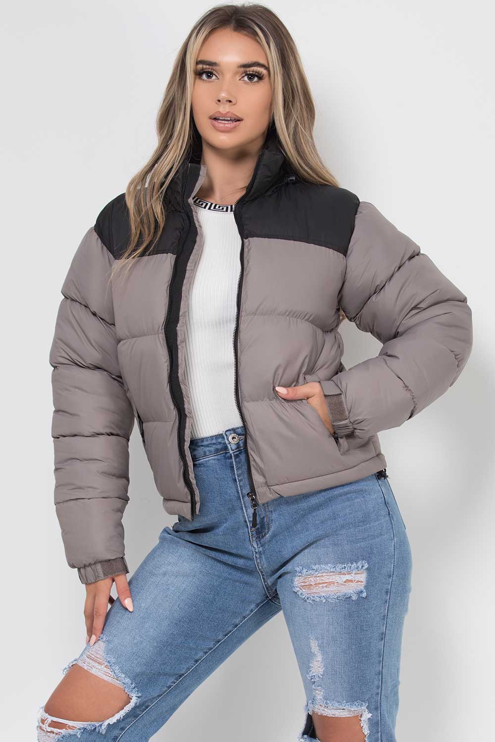 Puffer Jacket Grey Colour Block
