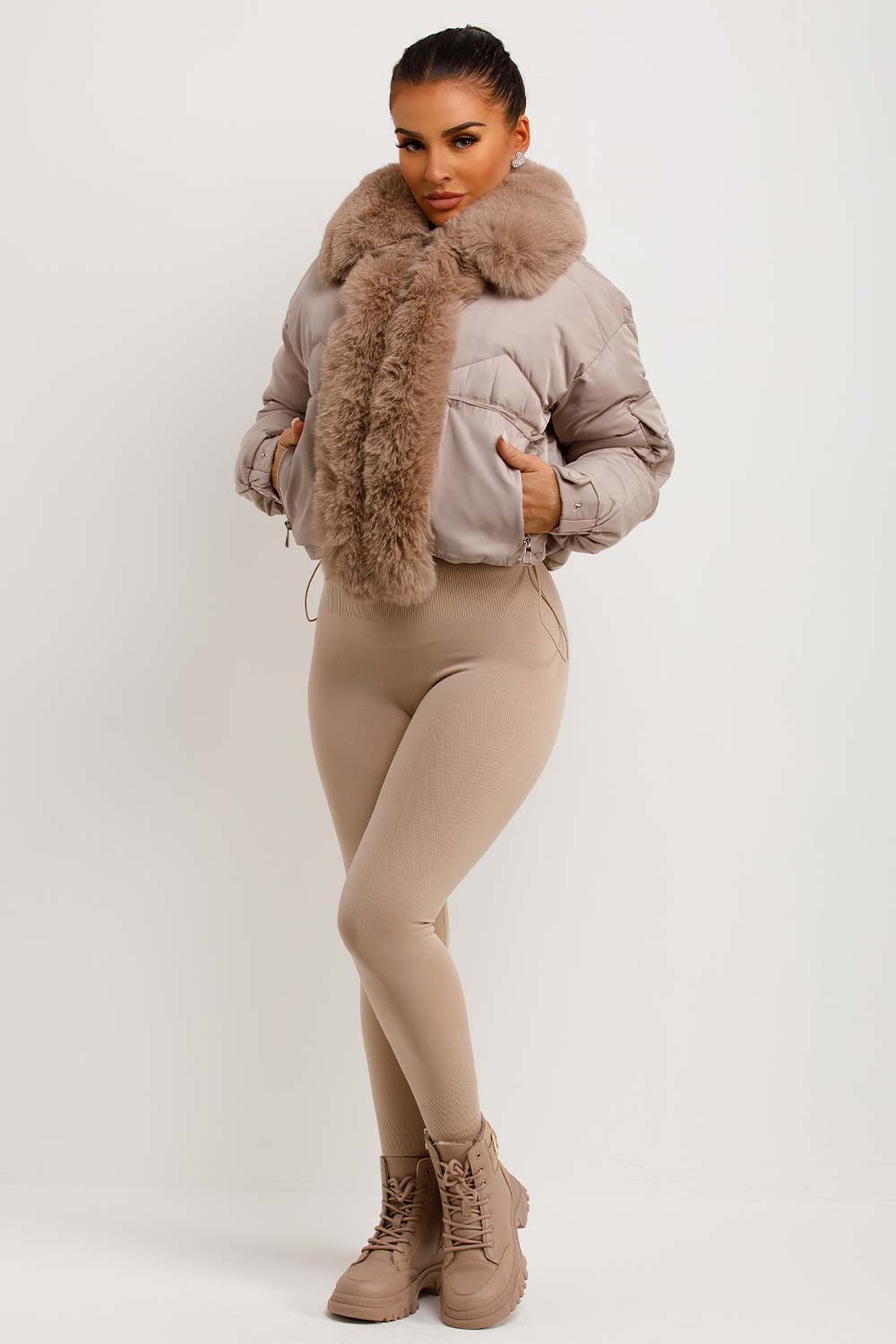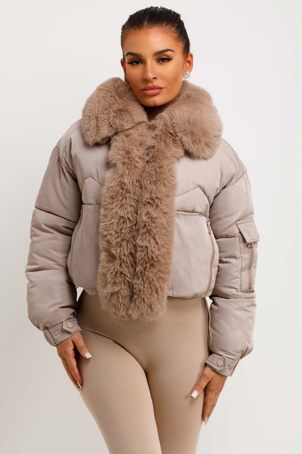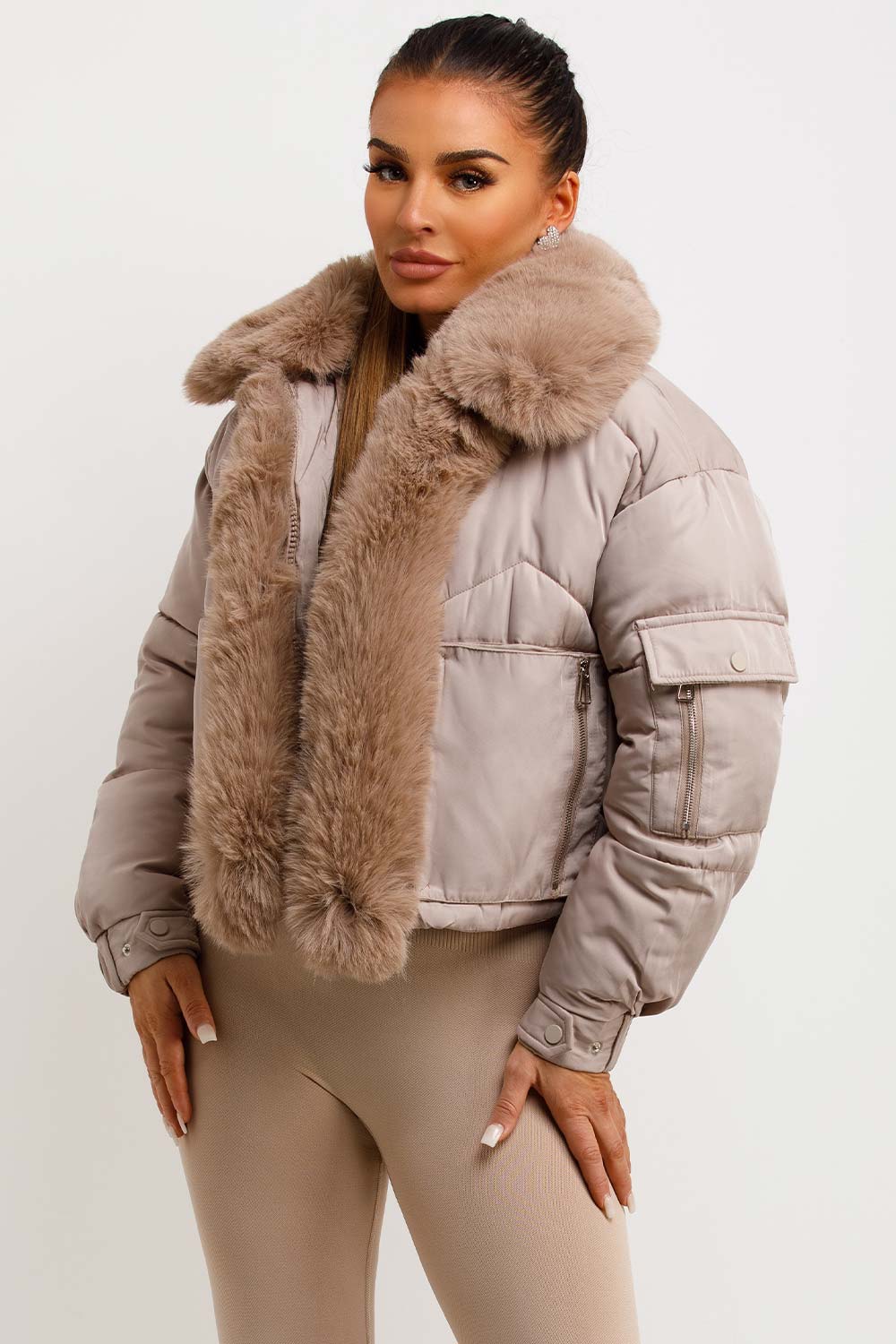 Puffer jacket with fur trim. This puffer jacket is going to replace all your existing outerwear pieces. Featuring premium puffer jacket with faux fur collar and trim zip fastening pockets, elasticated drawstring hem extremely warm weather resistant and windproof. Style this padded puffer jacket with any outfit to complete the look we are loving. This fur trim puffer jacket is also available in other colours.