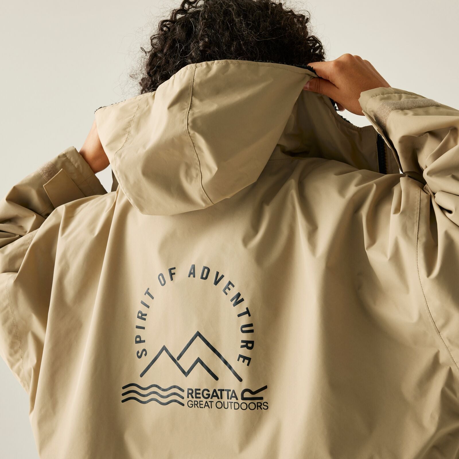 The Adults Waterproof Changing Robe from Regatta is just the thing you need for a summer of fun. Made from waterproof and windproof, quick-drying fabric, to keep you comfortable whatever the activity. With a warm fleece lining to help you dry off after swimming and a hood to protect you from the rain. Perfect for those long days at the beach, camping and festival fun.