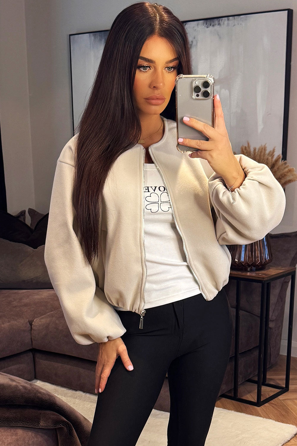 Soft Bomber Jacket Beige