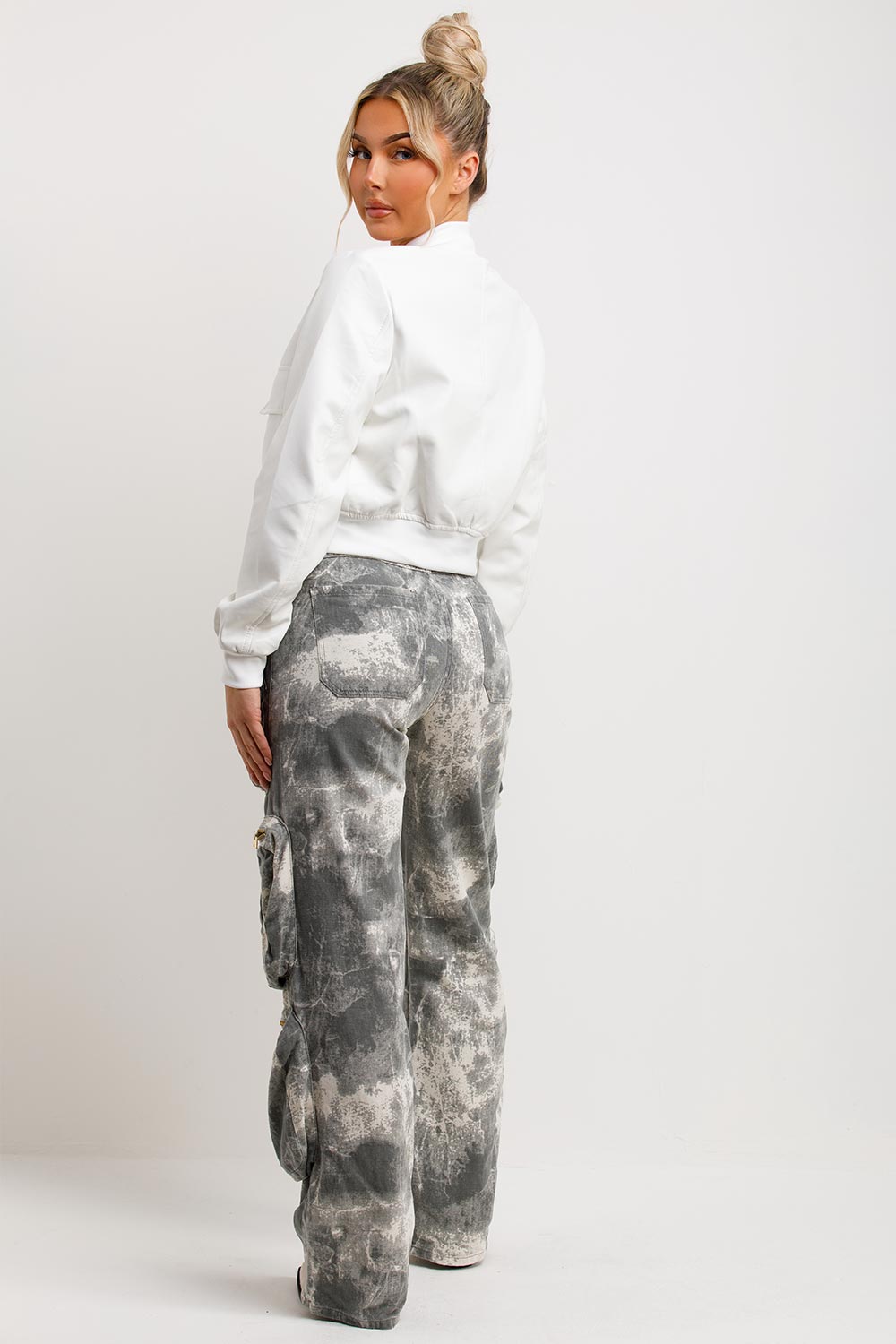 Faux leather bomber jacket. Bomber jacket is an essential part of your new season wardrobe babe. Featuring premium faux leather bomber jacket with button fastening short length. Style this bomber jacket with our cargo jeans to complete the look we are loving. This faux leather bomber jacket is also available in other colours.