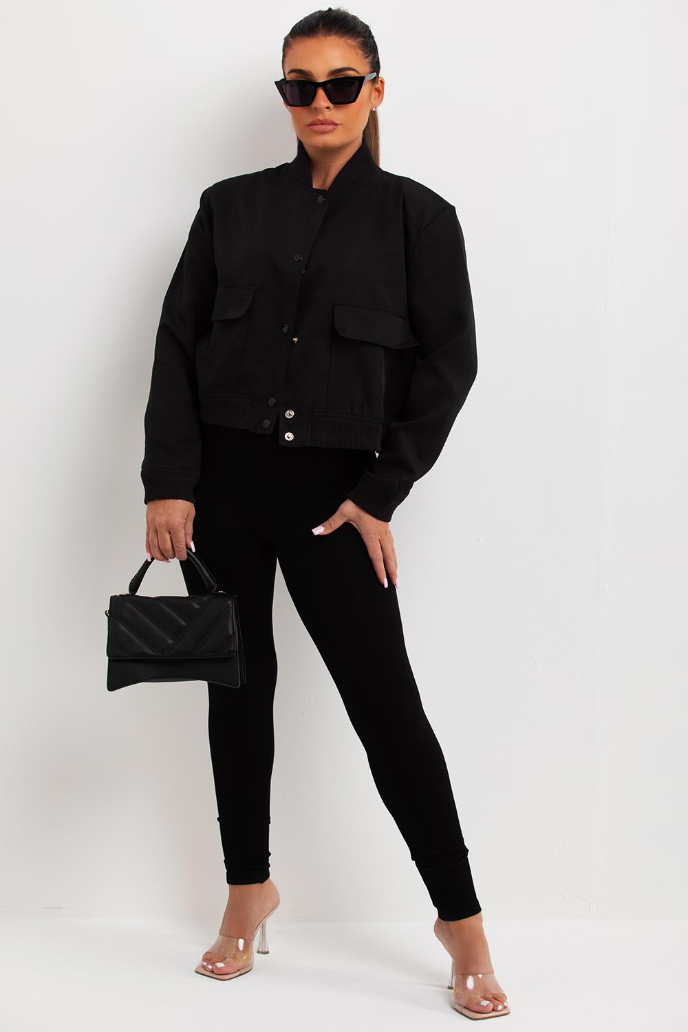 Varsity Bomber Faux Leather Jacket With Letter Detail Black White