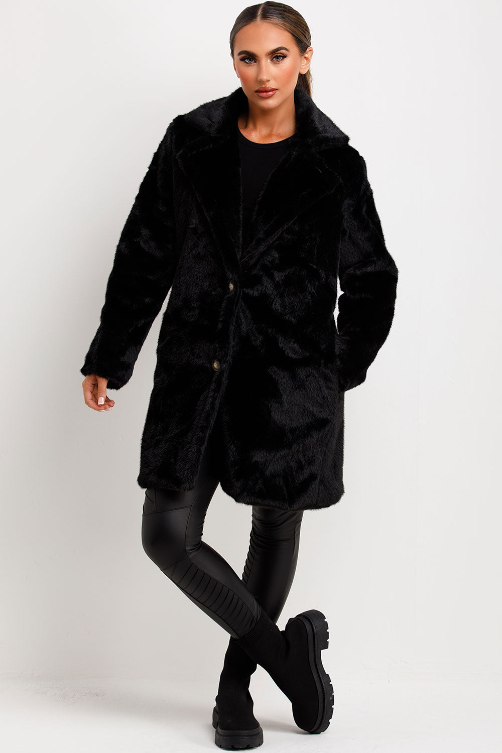 Faux Fur Faux Leather Aviator Jacket Black Contrast