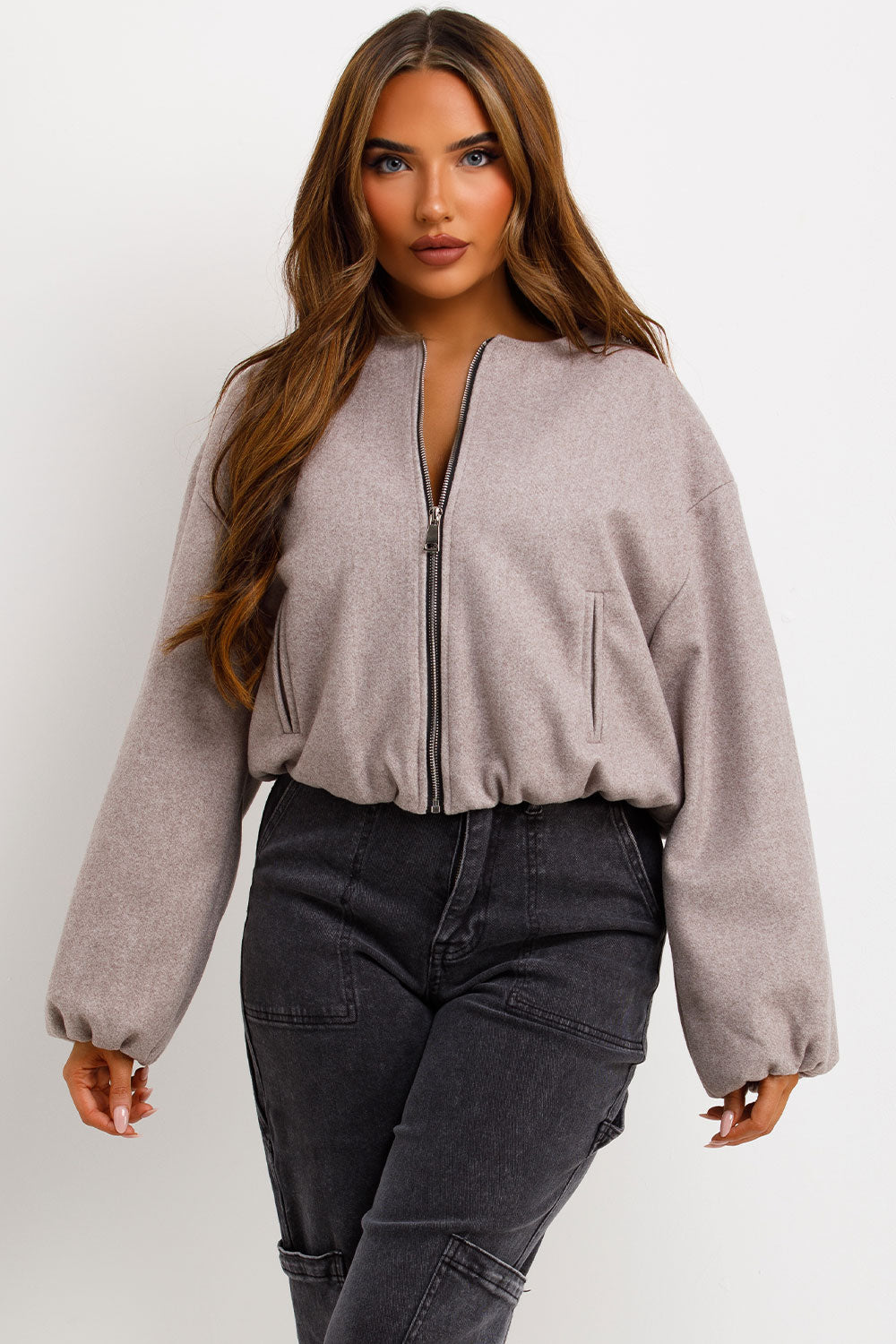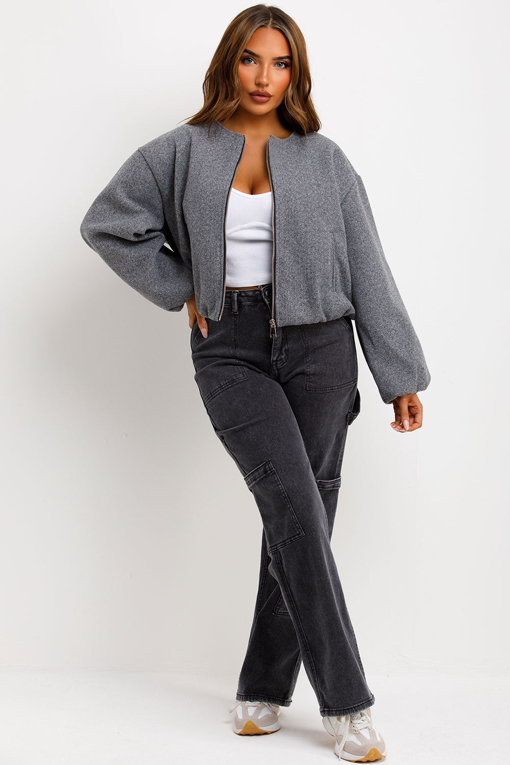Varsity Bomber Faux Leather Jacket With Letter Detail Grey