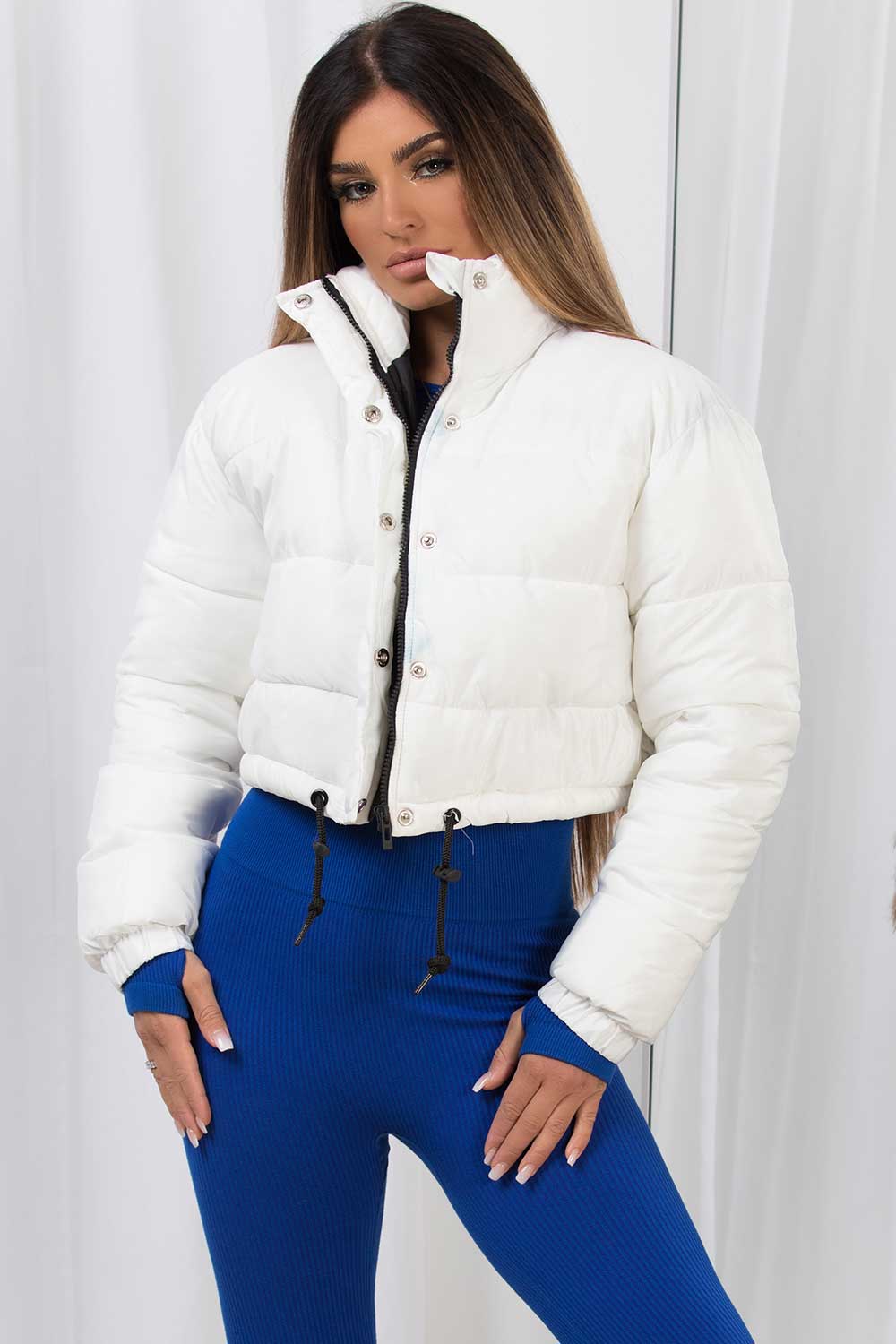 Puffer Jacket With Fur Hood Cuff And Trim White