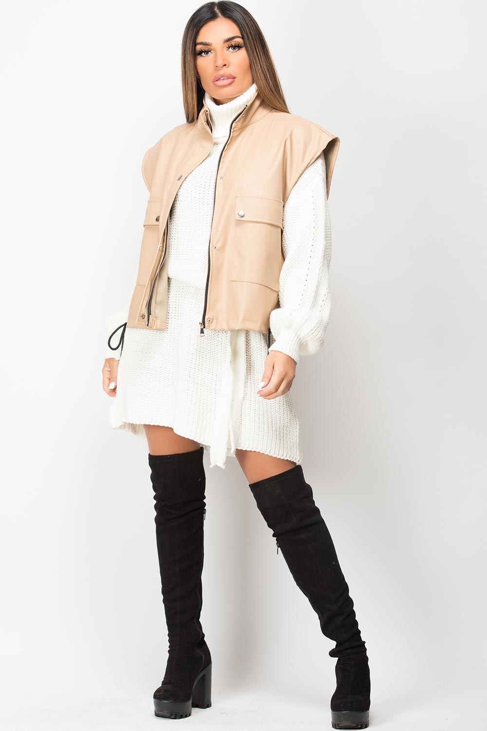 Faux Fur Faux Leather Hooded Panelled Sleeve Jacket Cream