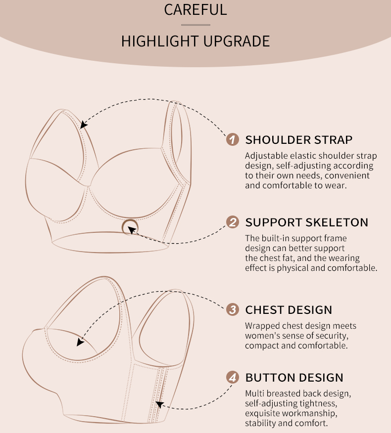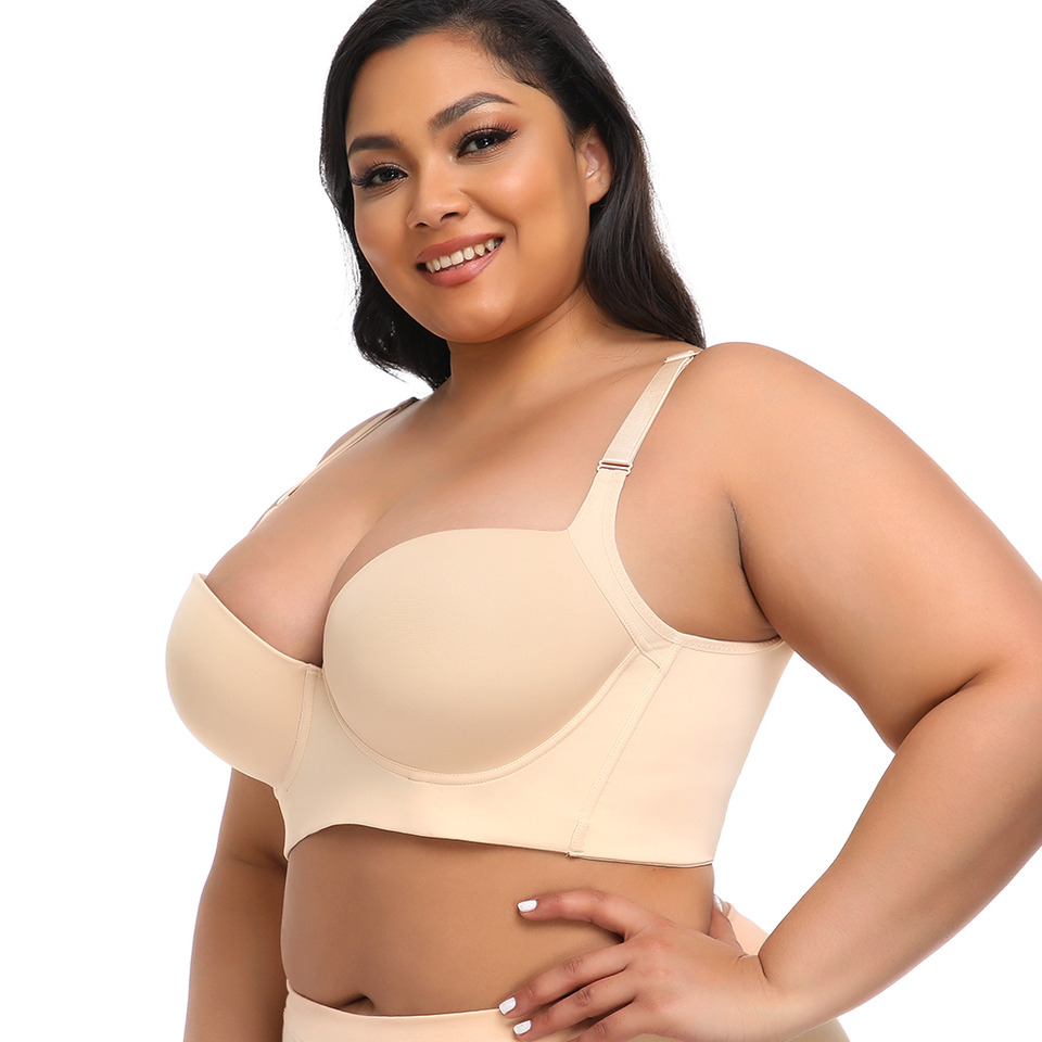 • Gathering Plus Size Sports Bra for Women Seamless Cup Tank Top Bras Sexy Full Back Coverage Underwear 3 Rows of Buttons Lingerie