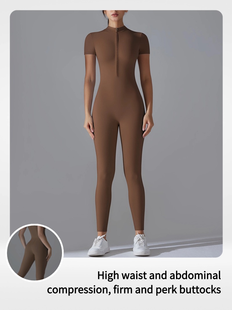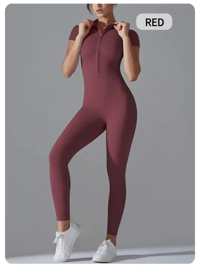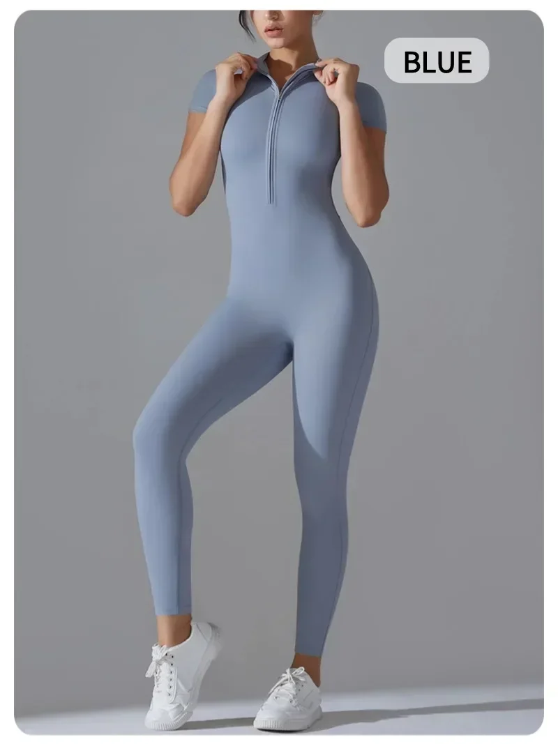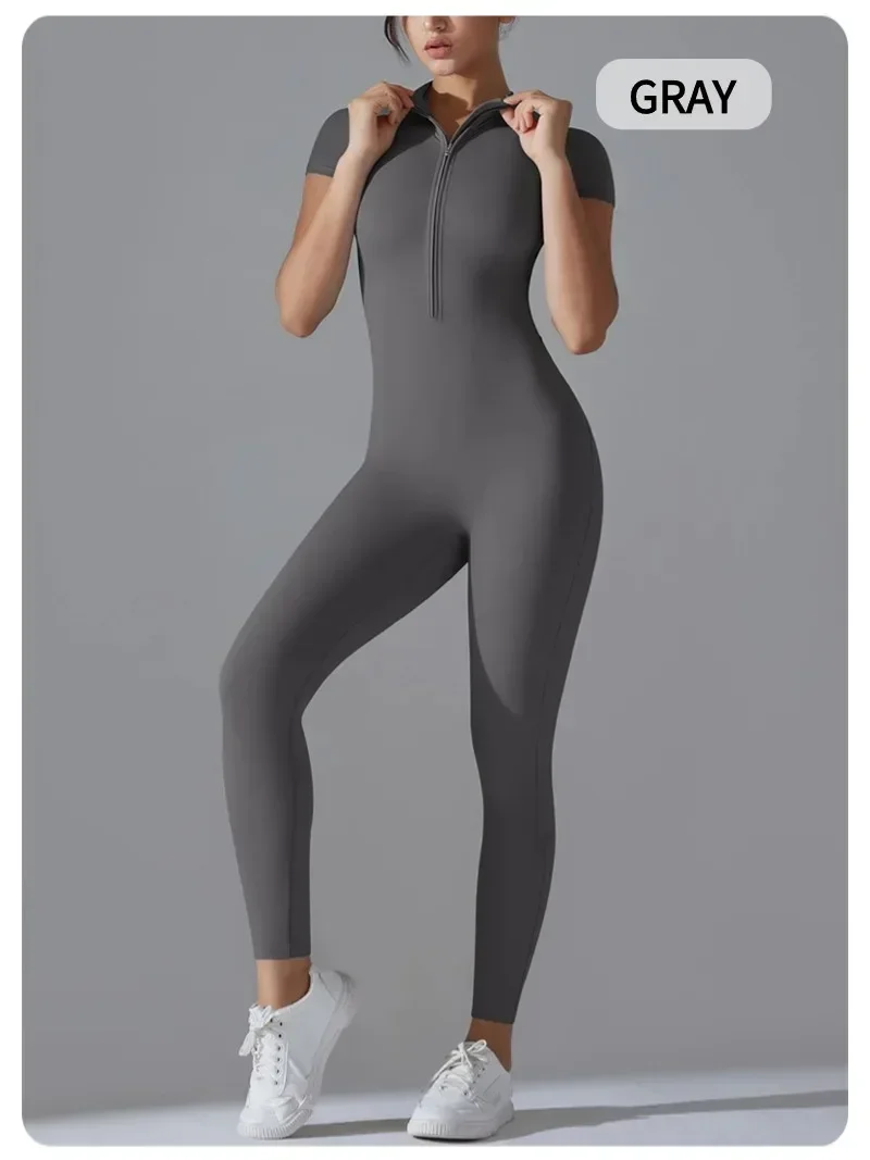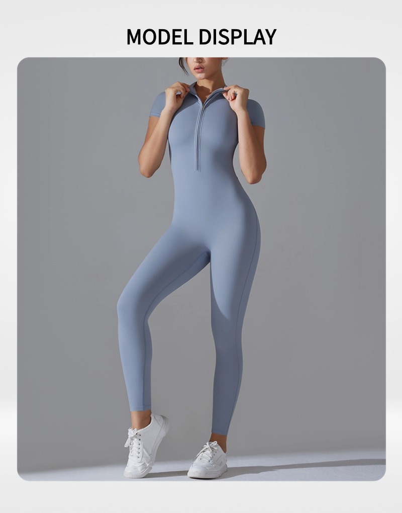 • Women's Sexy Hip Lifting Fitness Jumpsuit, Tight Zipper Fitness Running Suit, Sports Pants Leggings Sport Women Fitness