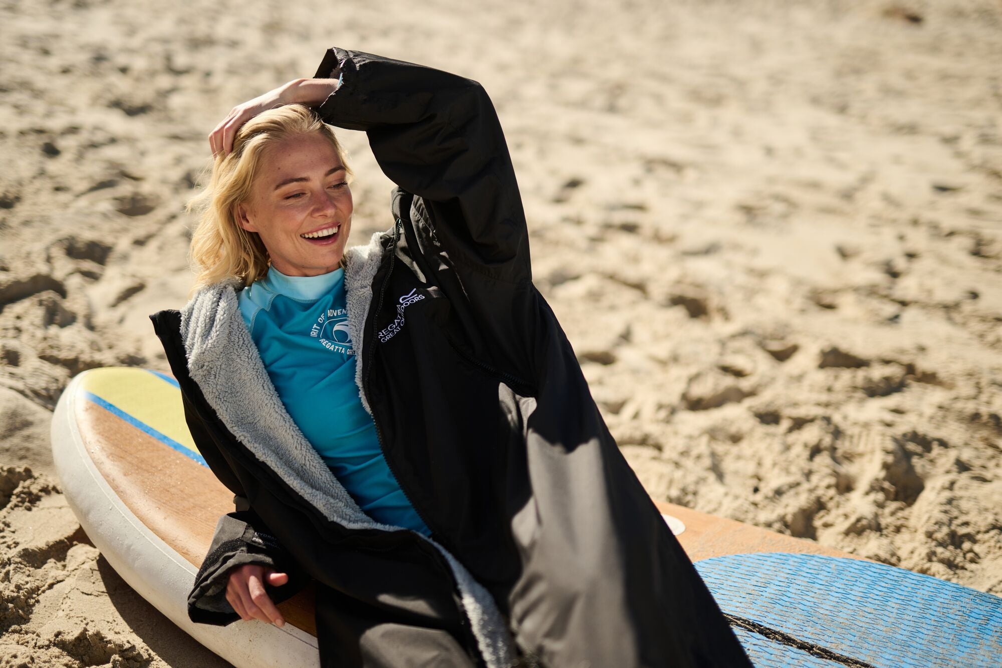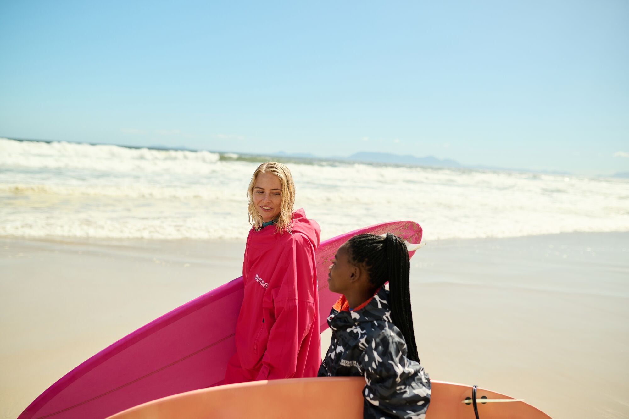 The Adults Waterproof Changing Robe from Regatta is just the thing you need for a summer of fun. Made from waterproof and windproof, quick-drying fabric, to keep you comfortable whatever the activity. With a warm fleece lining to help you dry off after swimming and a hood to protect you from the rain. Perfect for those long days at the beach, camping and festival fun.