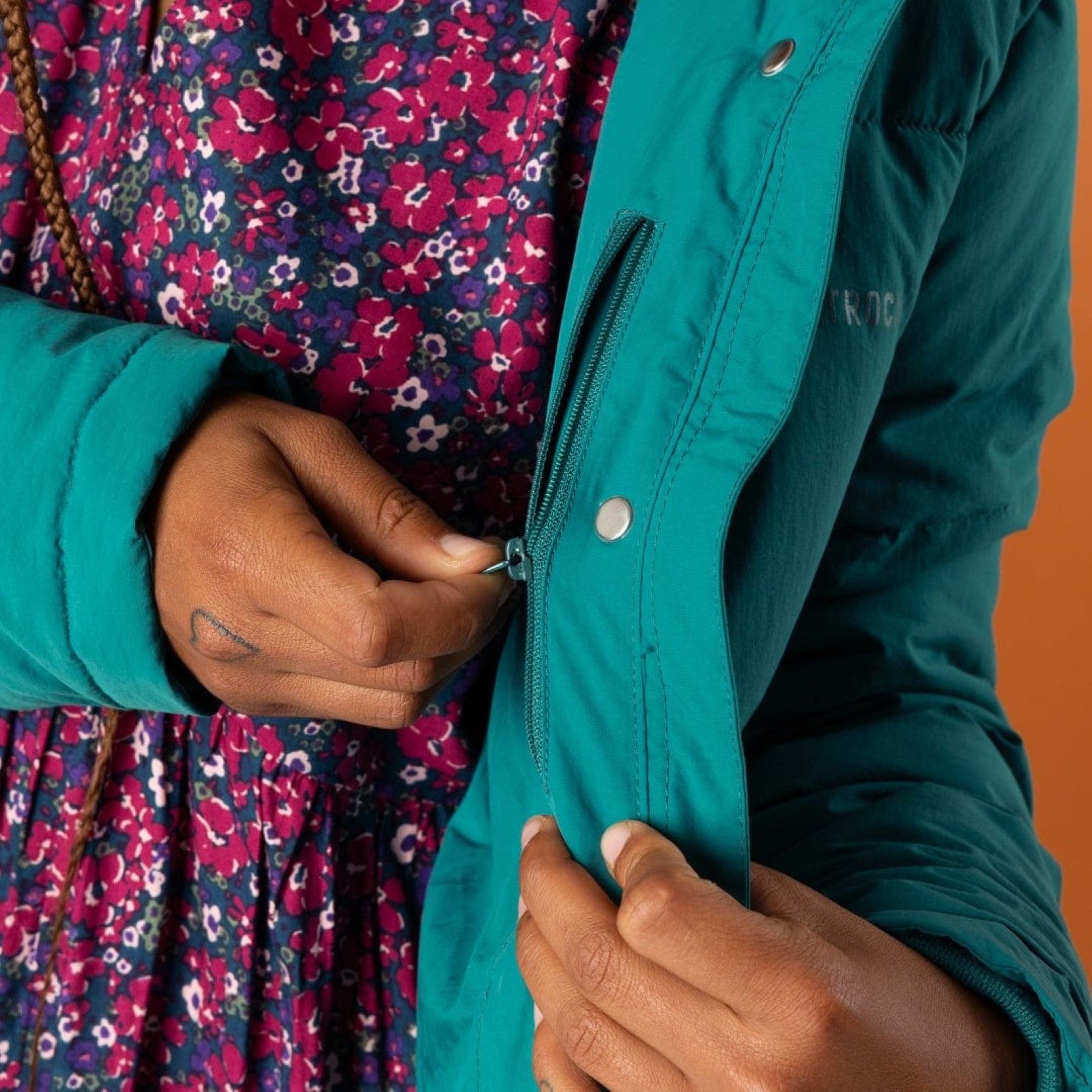 • Zip close with press stud buttons and chin guard