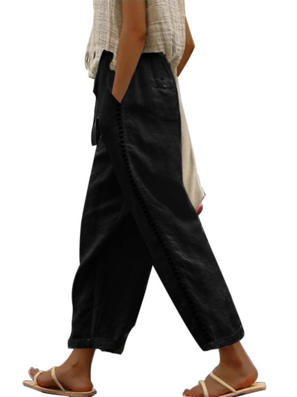 Women's Casual Lace Hollow Stitching Cropped Trousers