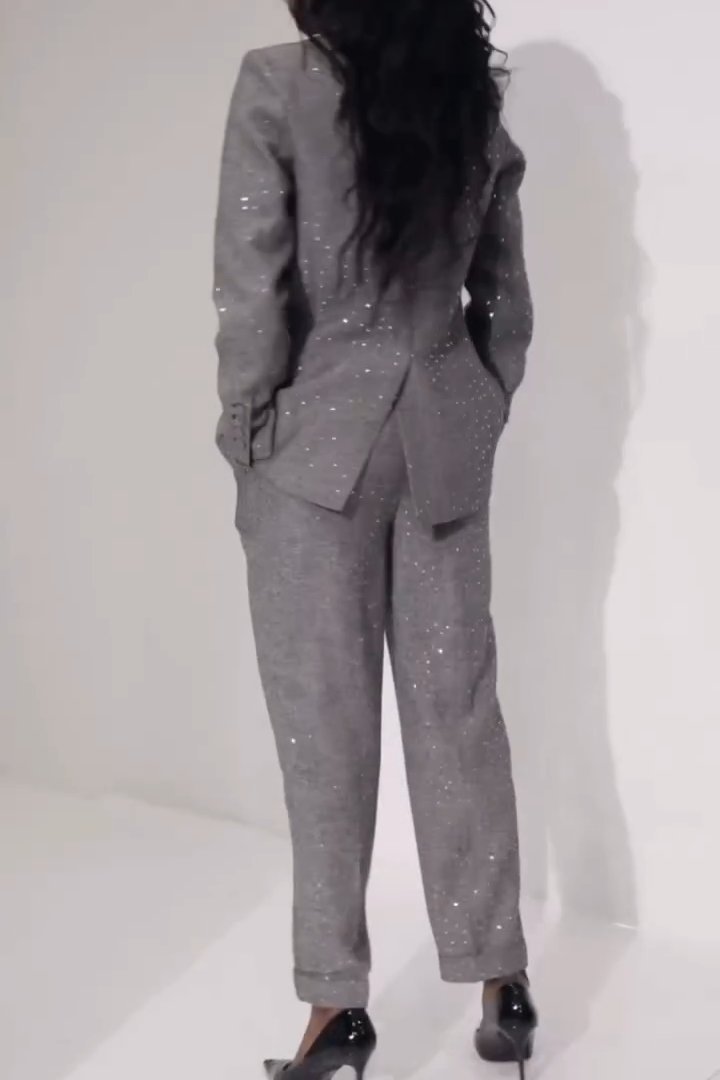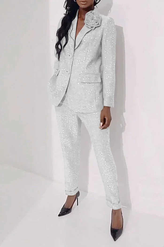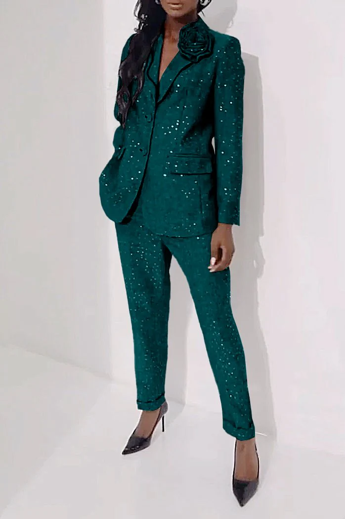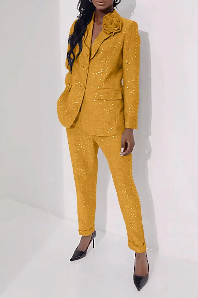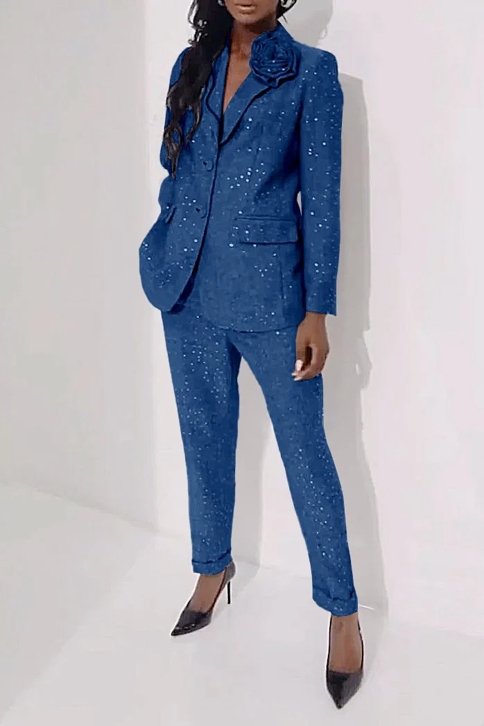 Women's Casual Sequined Shiny Slim Pants Two-piece Suit