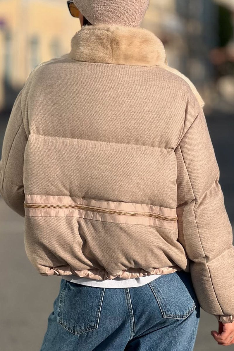 Women's Casual Stand Collar Fur Collar Patchwork Jacket