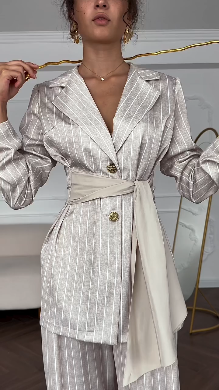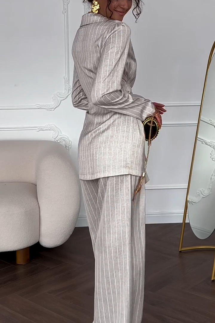 Women's Fashion Lapel Waist Striped Suit Long Sleeve Two-piece Suit